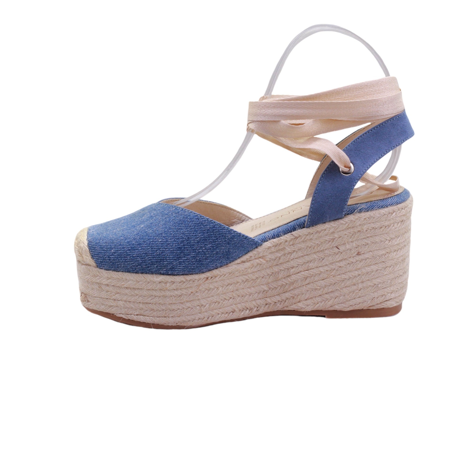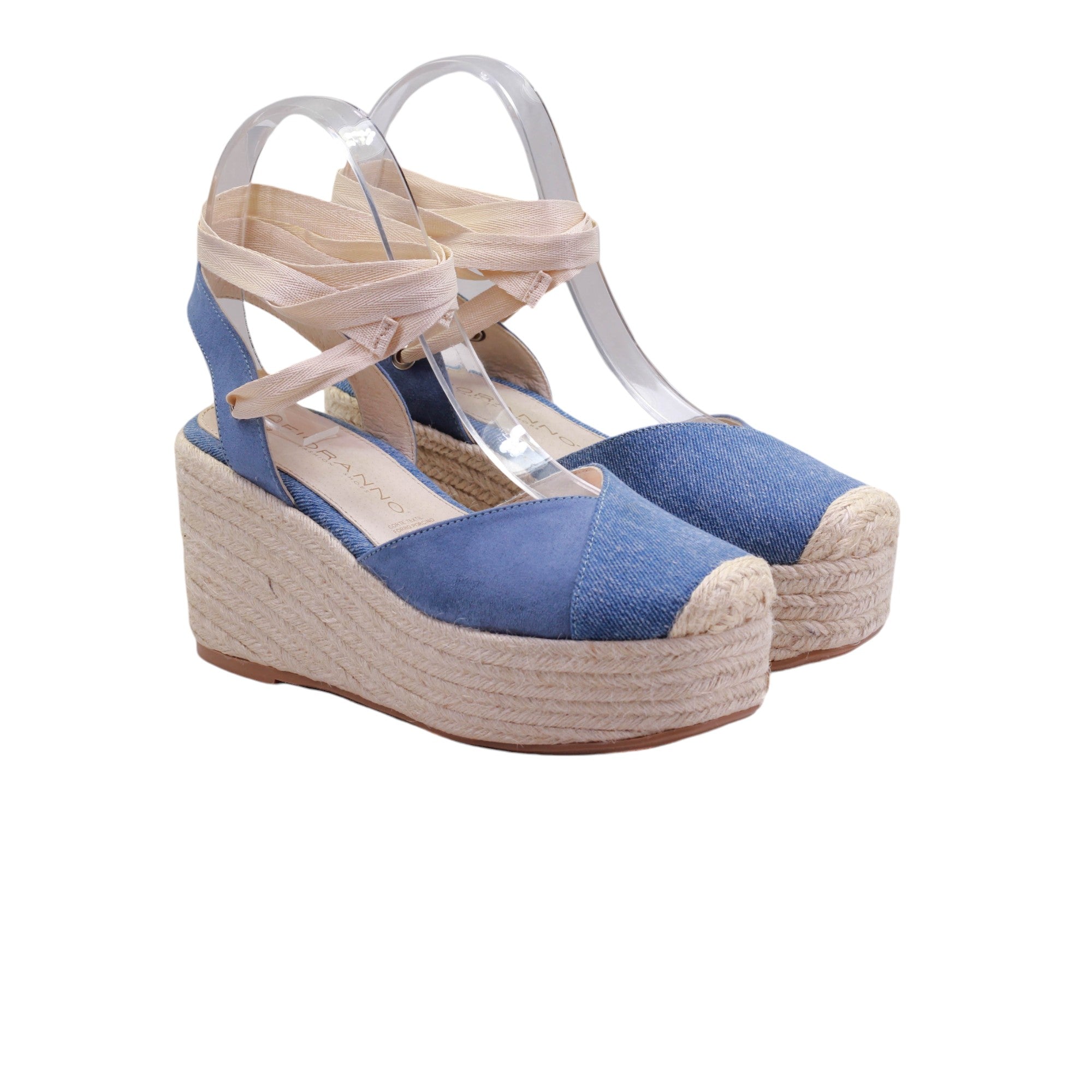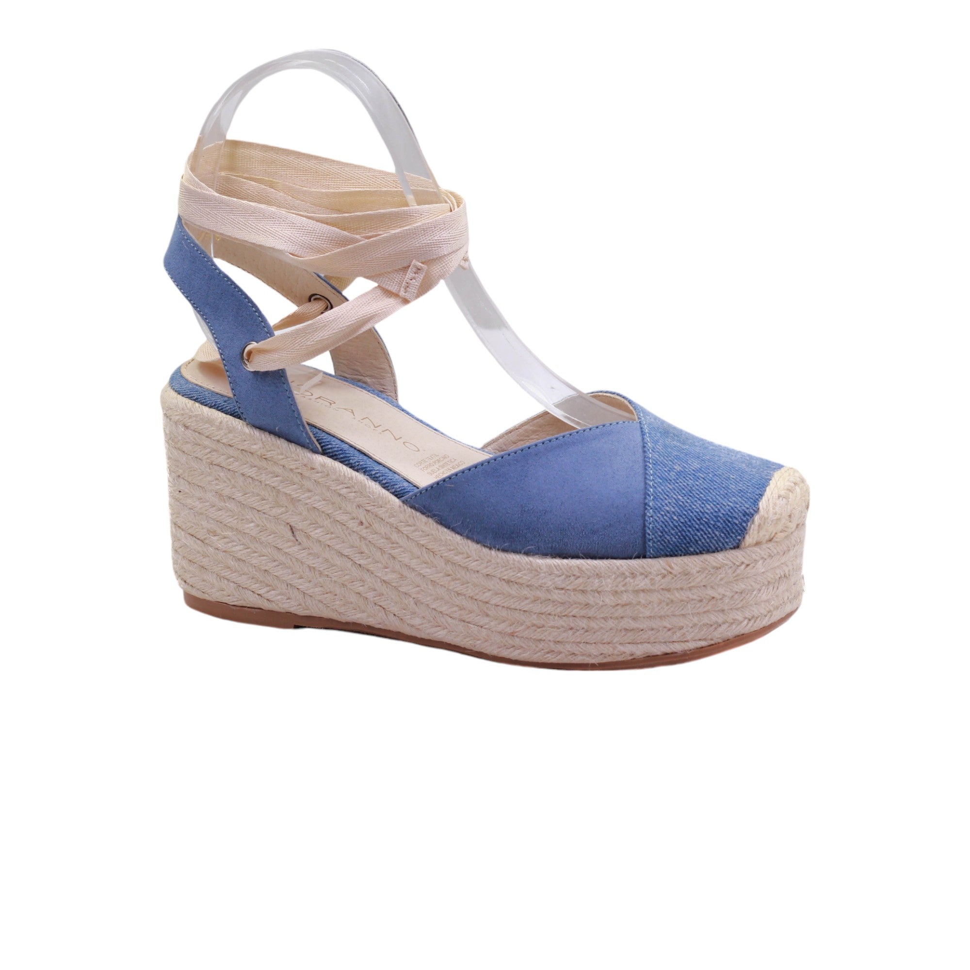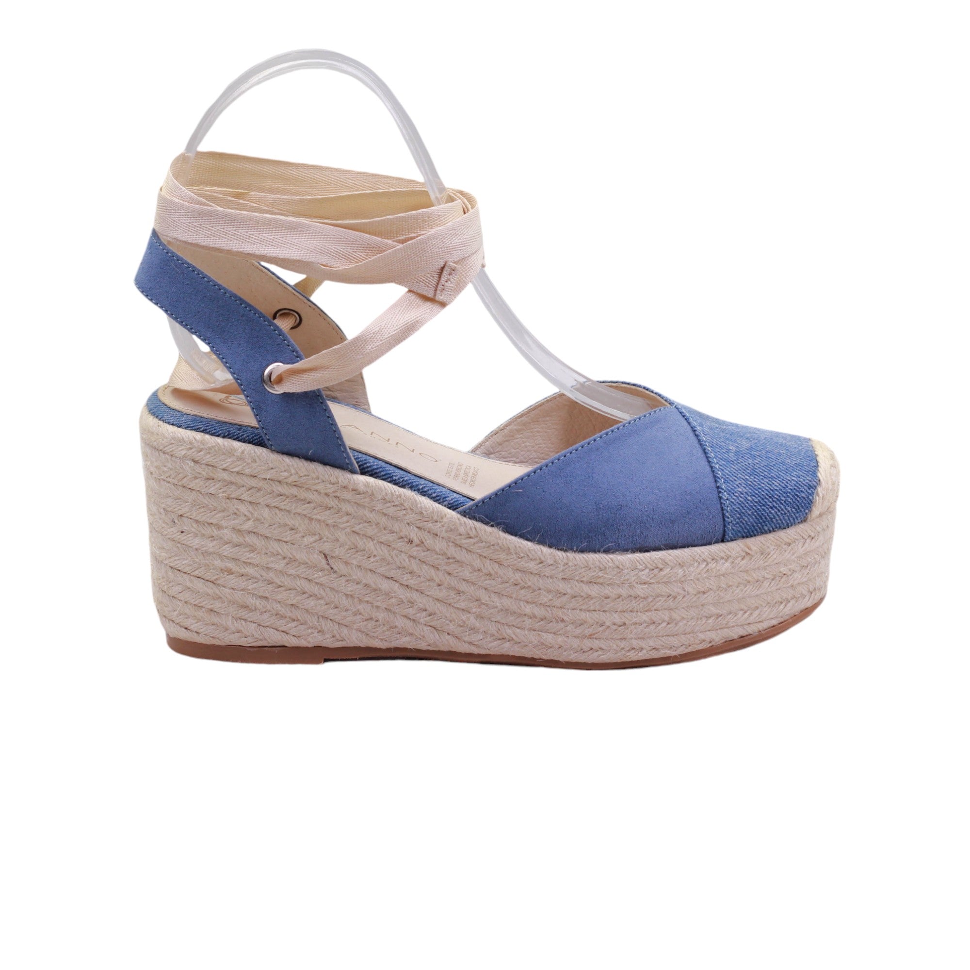 Alpargata para dama marca Fioranno en color azul cielo, es un diseño con listones largos para mayor ajuste y comodidad y un forro de textil, es ligera y cuenta con una plataforma de 8.00 centímetros con tejido, su plantilla de confort te permitirá estar cómoda a cada paso.