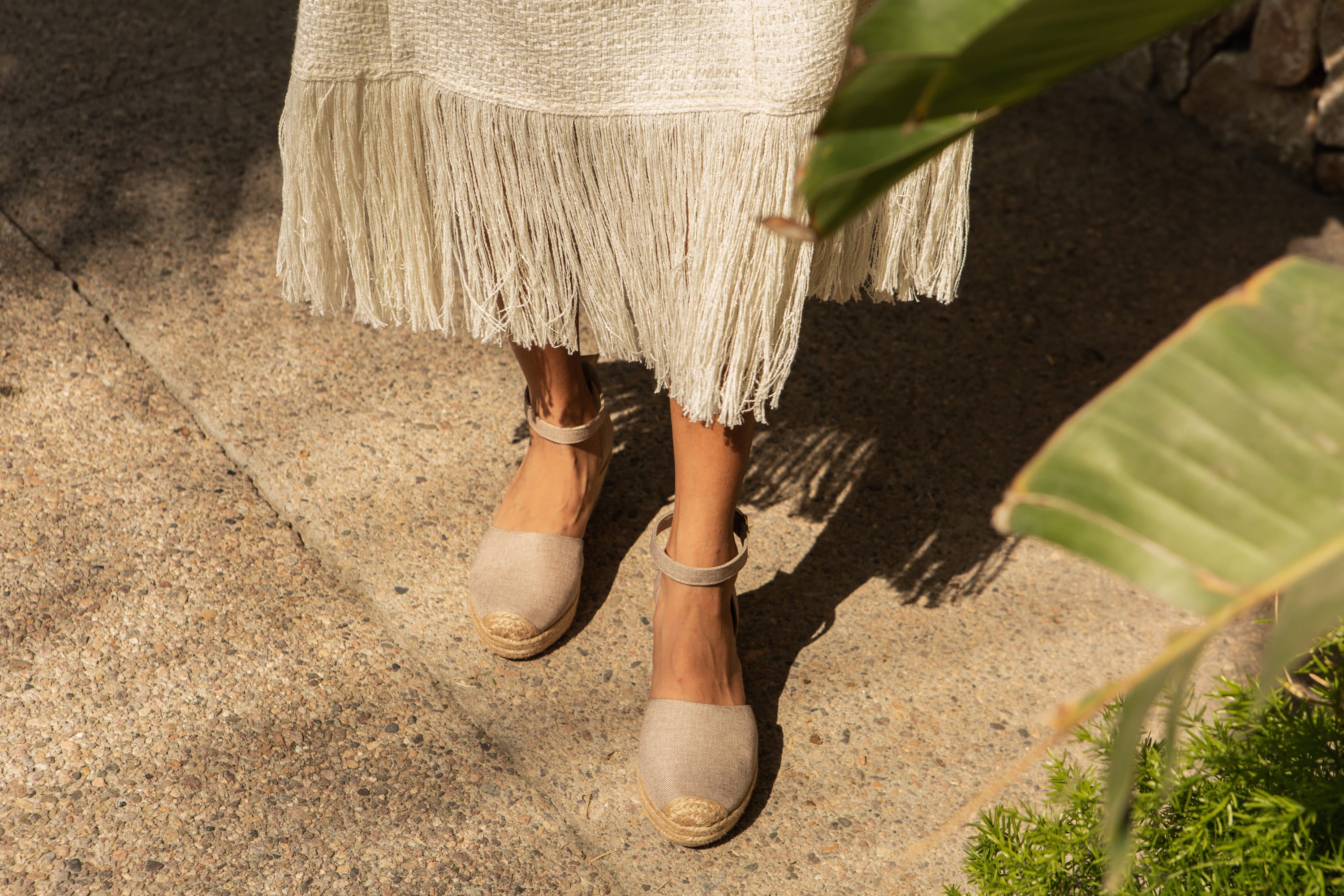Alpargata para dama marca Fioranno en colores crudo, es un diseño con un forro de textil, es ligera y cuenta con una plataforma de 6.00 tejida, su plantilla de confort te permitirá estar cómoda a cada paso.
