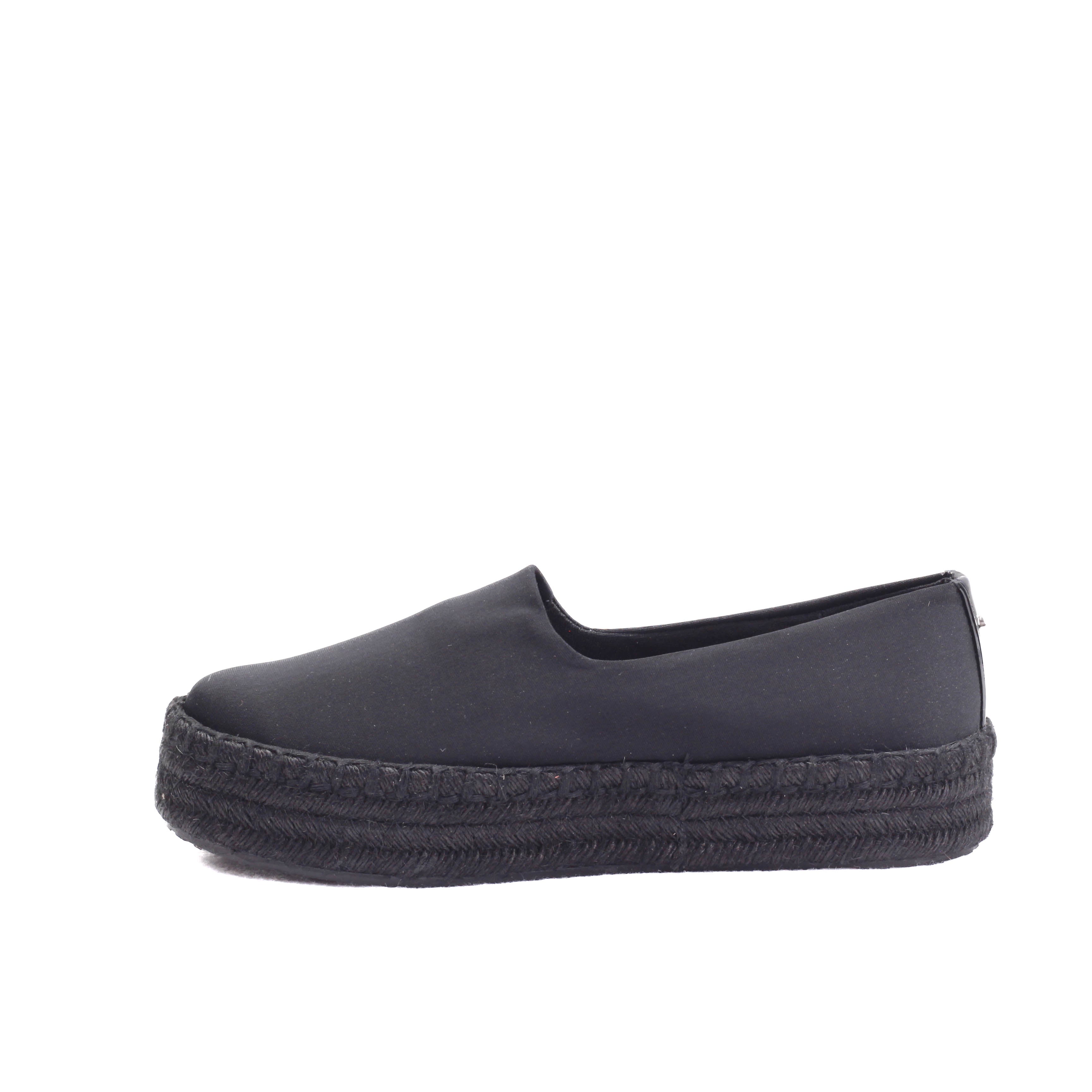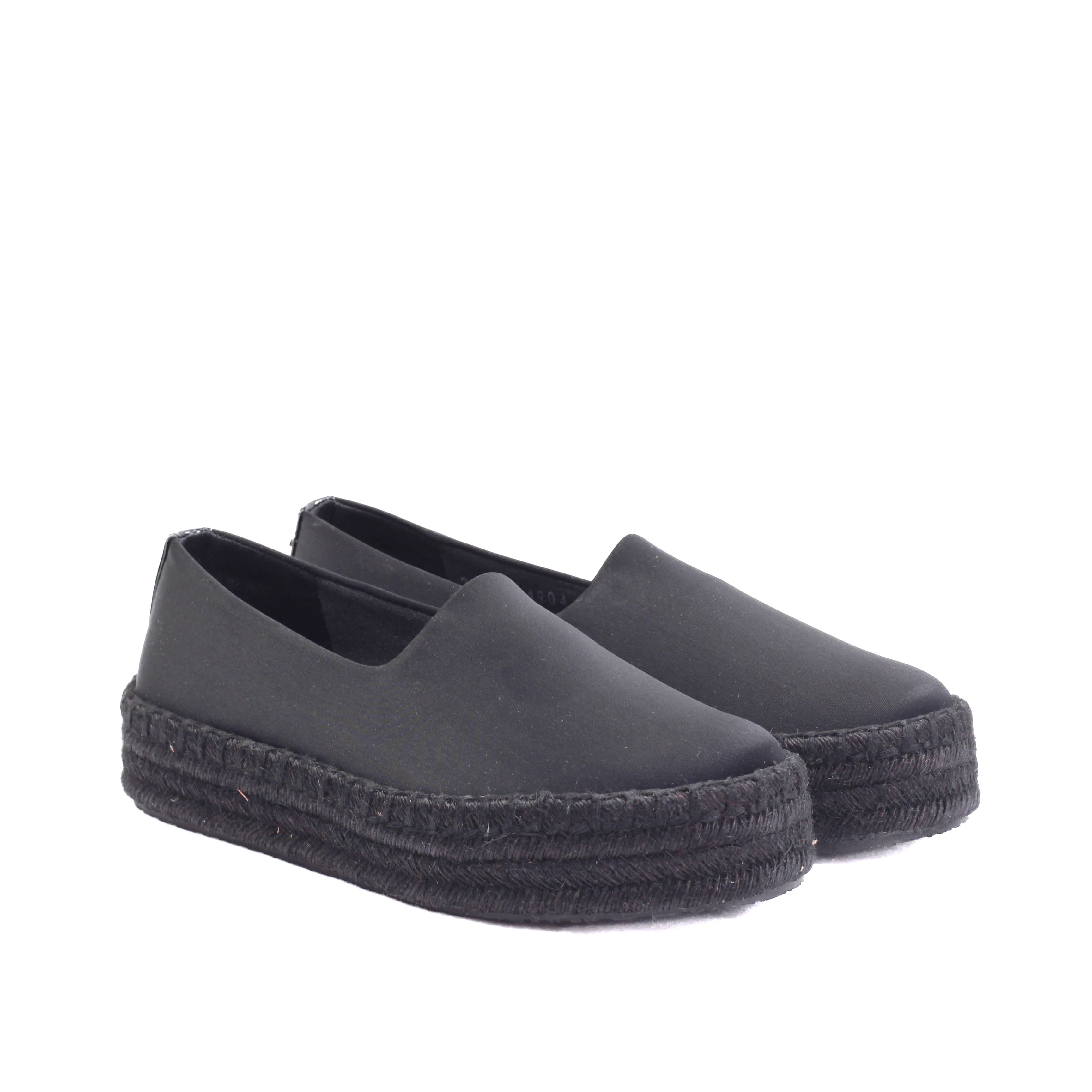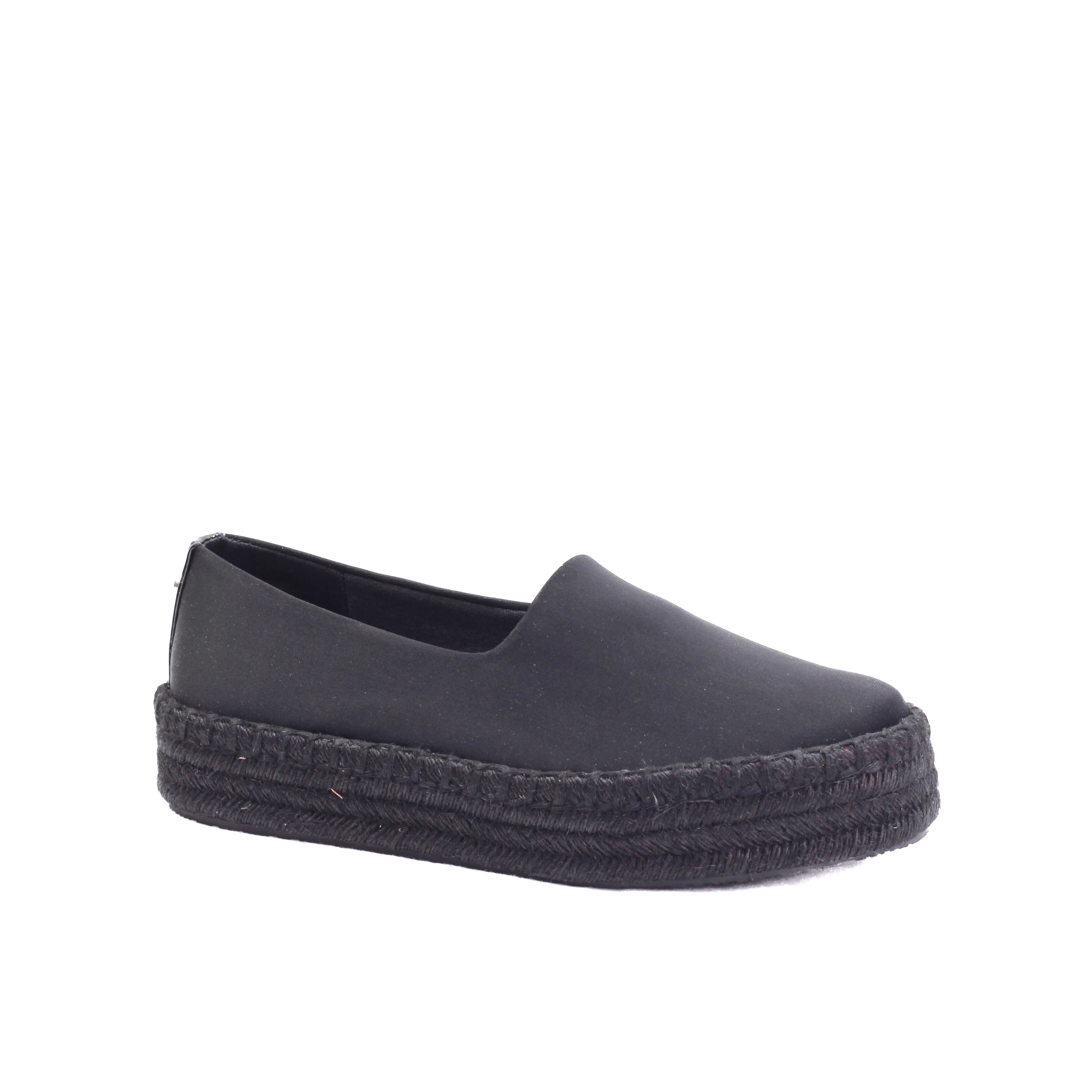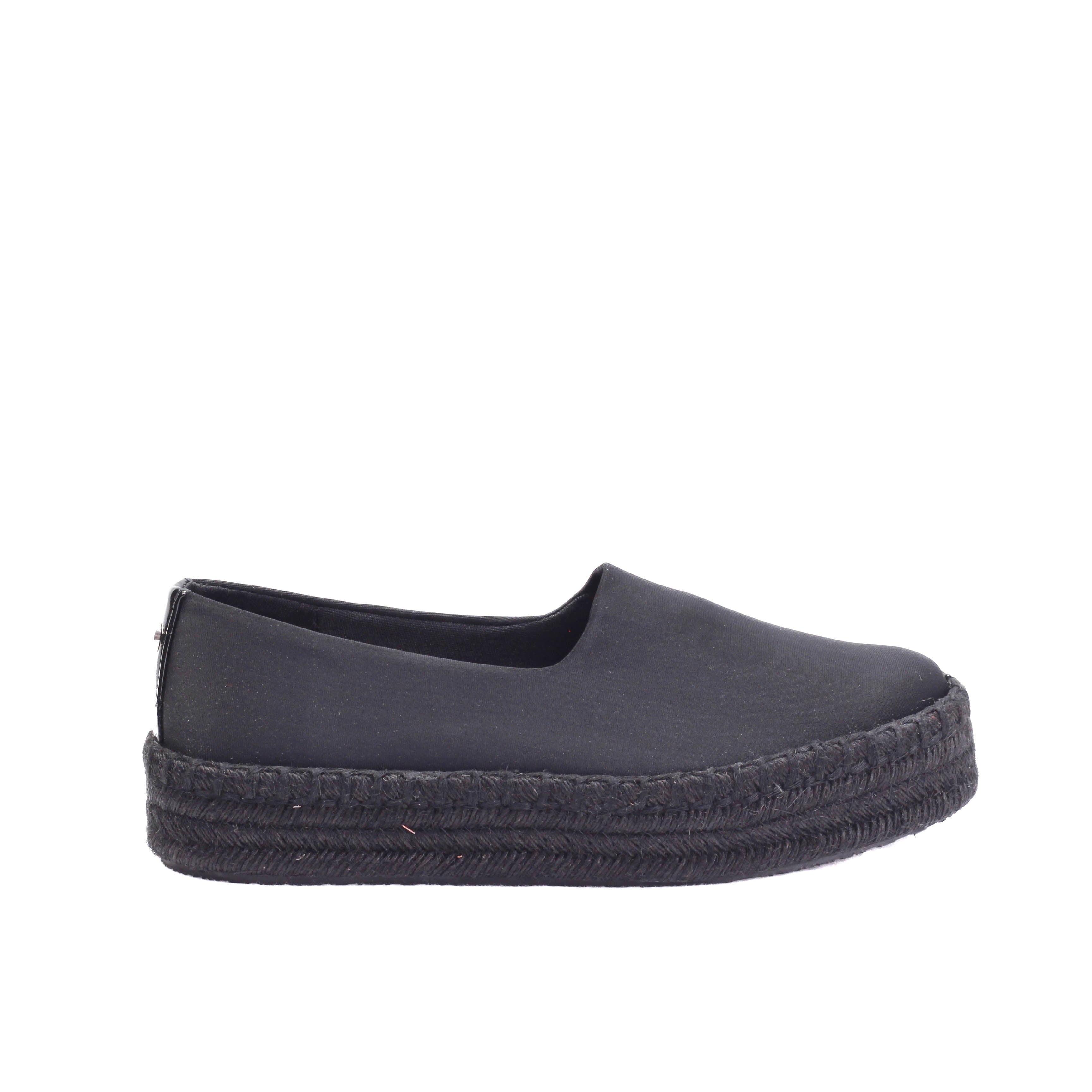 Alpargata con plataforma tejida en tono negro y terminado en textil
