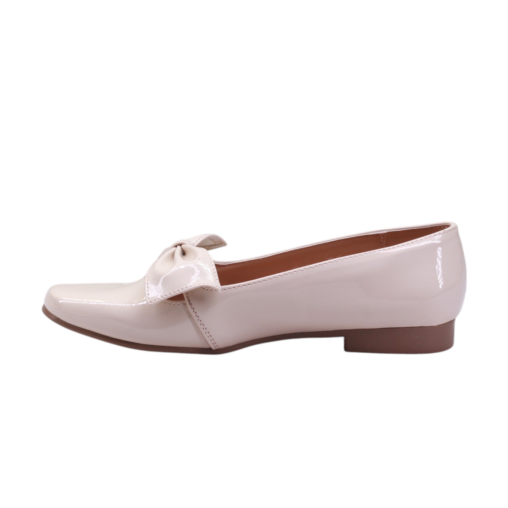 Balerina para dama marca Zócalo en colores Miga y negro charol. Diseño moderno y cómodo que cuenta con adorno de moño grande. Este modelo te permite la comodidad que necesitas en un calzado.