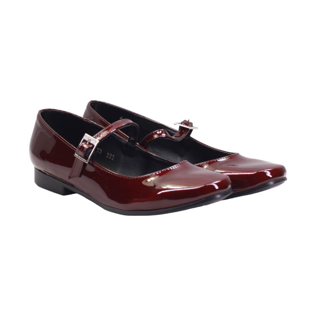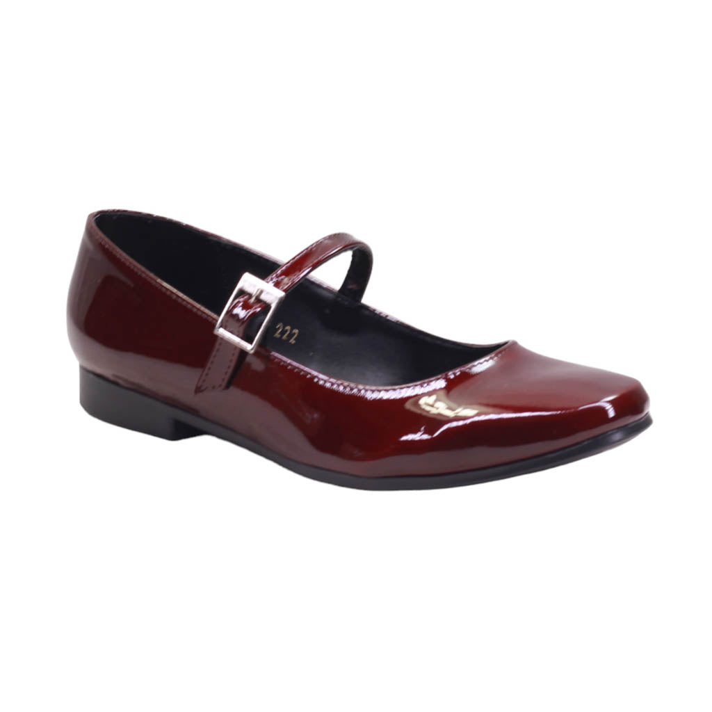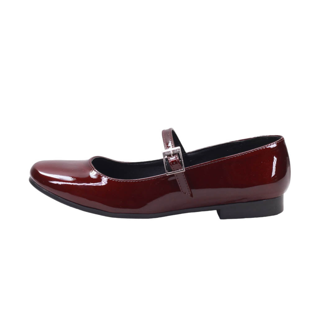 Balerina para dama marca Zócalo en colores Merlot y negro, Diseño moderno y cómodo, cuenta con acabado en charol y una suela ligera, este modelo te permite la comodidad que necesitas en un calzado.