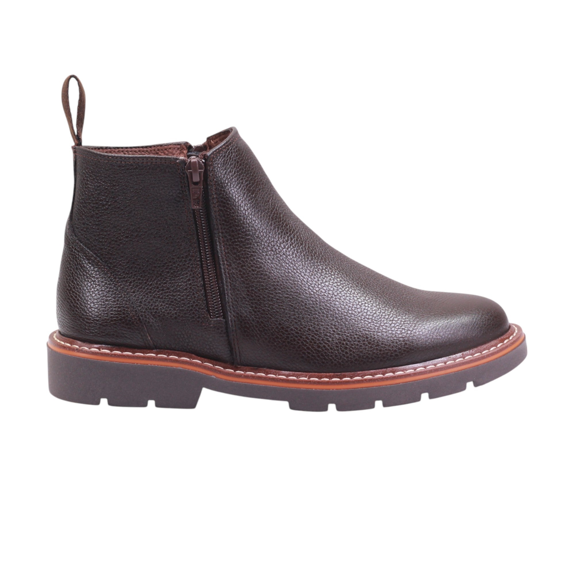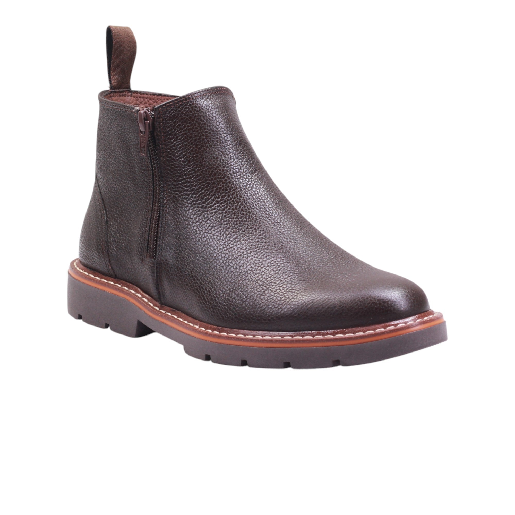 Bota para caballero marca 20 Horas en colores café y negro. Esta bota de piel para caballero combina elegancia y funcionalidad. Fabricada con corte y forro de piel, ofrece resistencia, confort y una excelente presentación. Su diseño incluye cierres laterales para facilitar el calce y una suela robusta con tacón de 3.00 cm que brinda buena tracción y estabilidad.