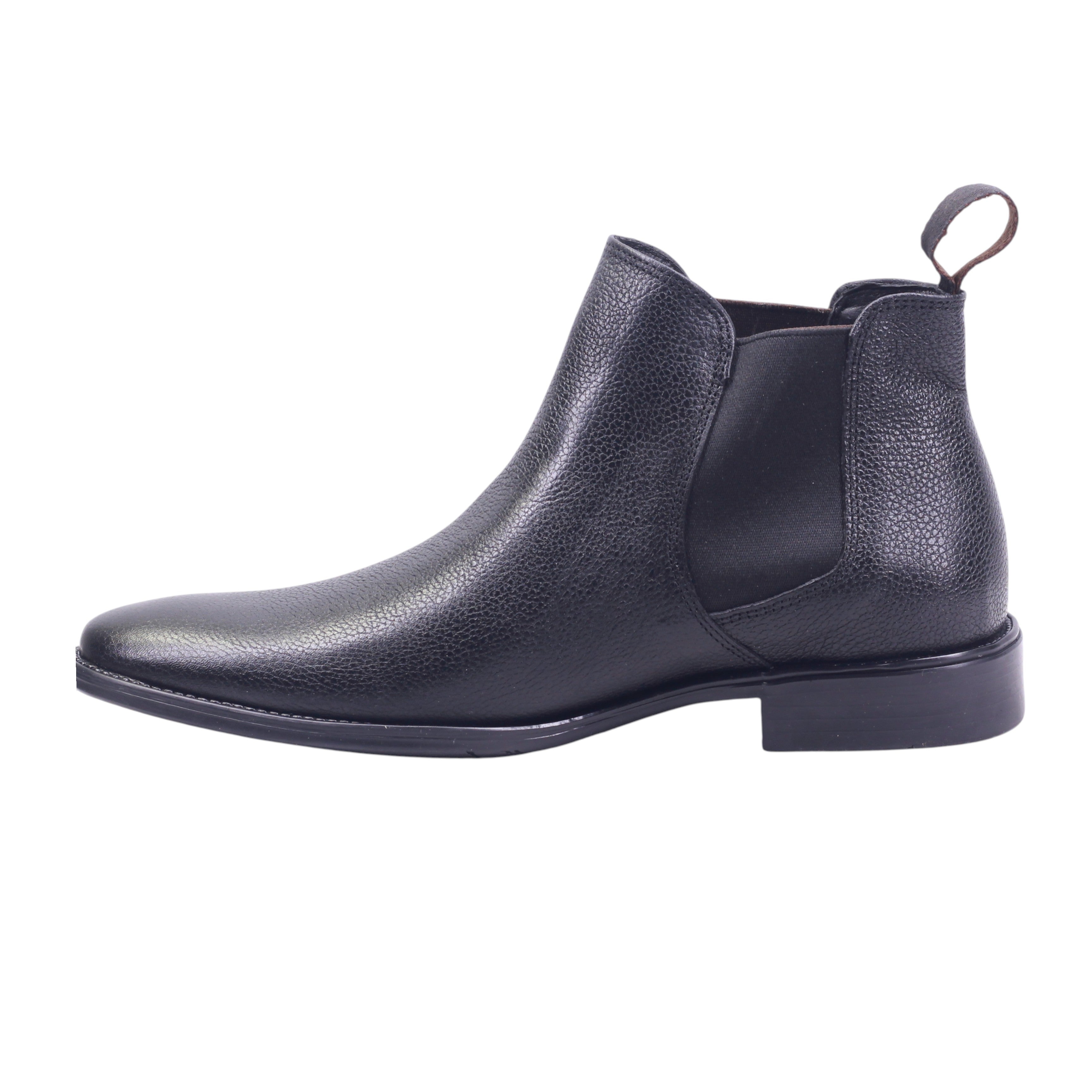 Bota para caballero marca 20 Horas en color negro. Confeccionada en piel y forrada en piel de res, esta bota tipo Chelsea ofrece durabilidad y confort. El diseño incluye elásticos en ambos costados que permiten un calce rápido y seguro, además de un tirador trasero para mayor practicidad. La puntera almendrada y el tacón de 3.00 cm aportan una silueta estilizada sin perder comodidad. Ideal para looks urbanos, casuales o de oficina con estilo sobrio y funcional.
