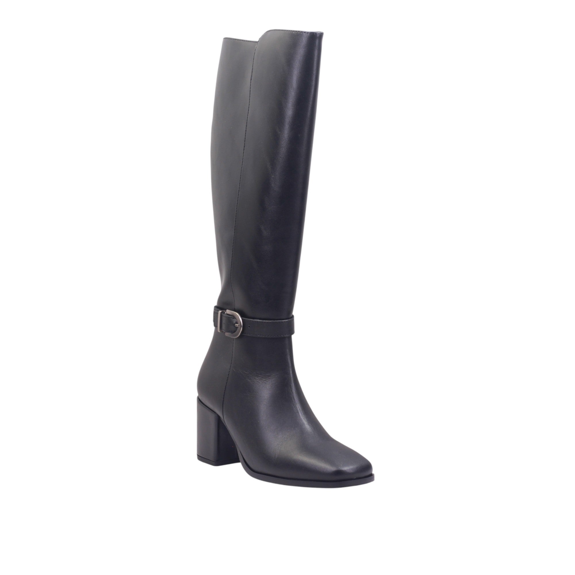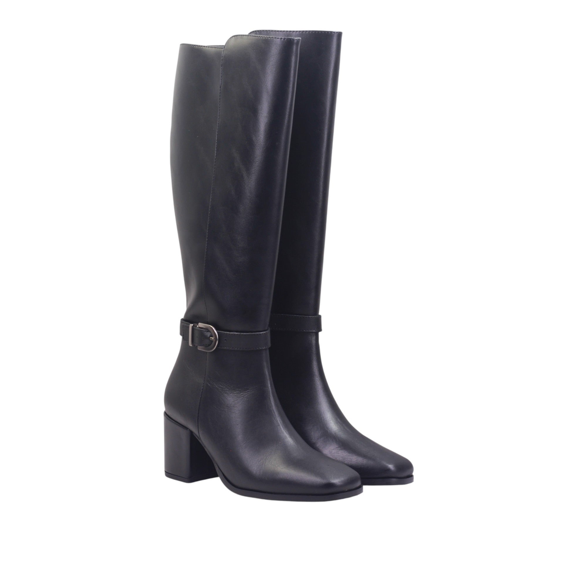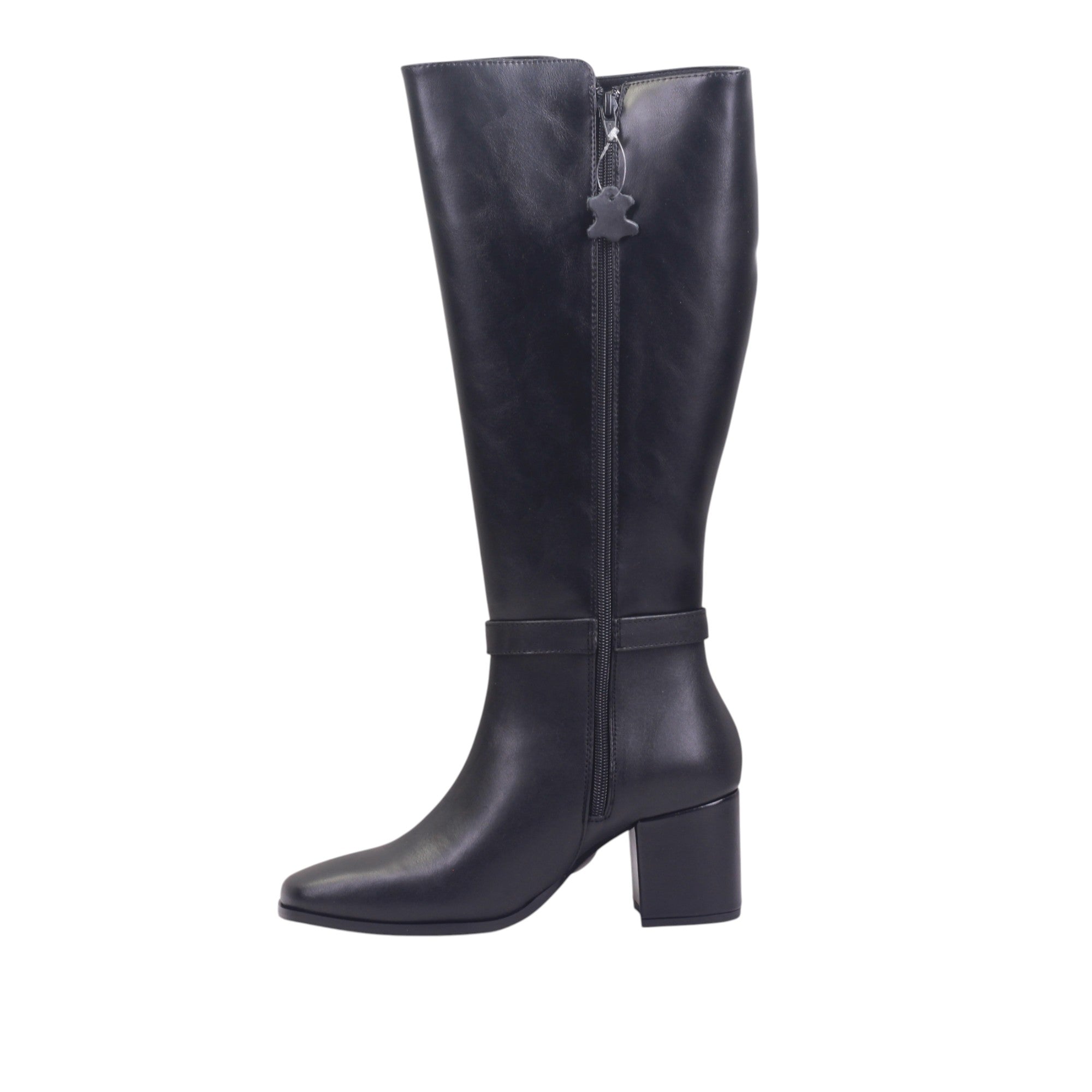 Bota para dama marca Hispana en colores negro. Diseño sobrio con detalles que marcan presencia. Esta bota está confeccionada en materiales sintéticos tanto en el corte como en el forro, ofreciendo durabilidad y una apariencia pulida. El tubo alto de 38.00 cm envuelve la pierna con firmeza, ideal para estilizar la silueta y complementar atuendos de temporada.