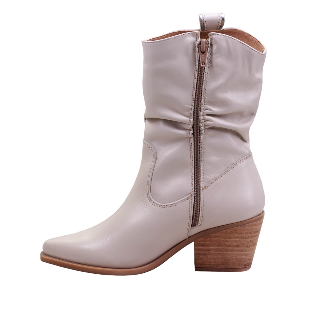 Bota para dama marca Francis en colores late y negro. Este modelo de piel lisa con tacón de vista madera de 6.00 cm y plantilla de confort son perfectos para cualquier ocasión. El terminado corrugado del tubo le da un toque único y elegante a este modelo. Cada paso que des será cómodo y en estilo.