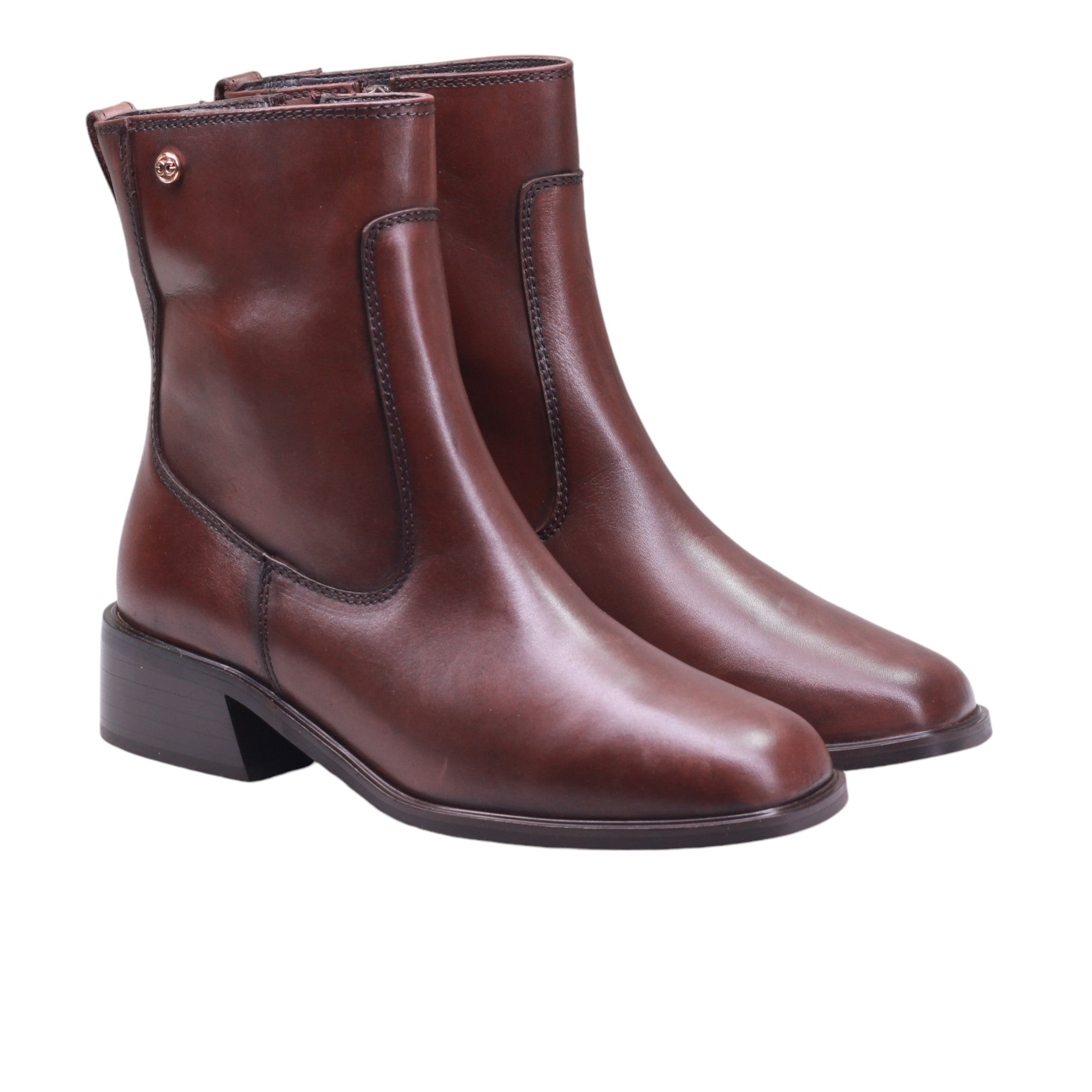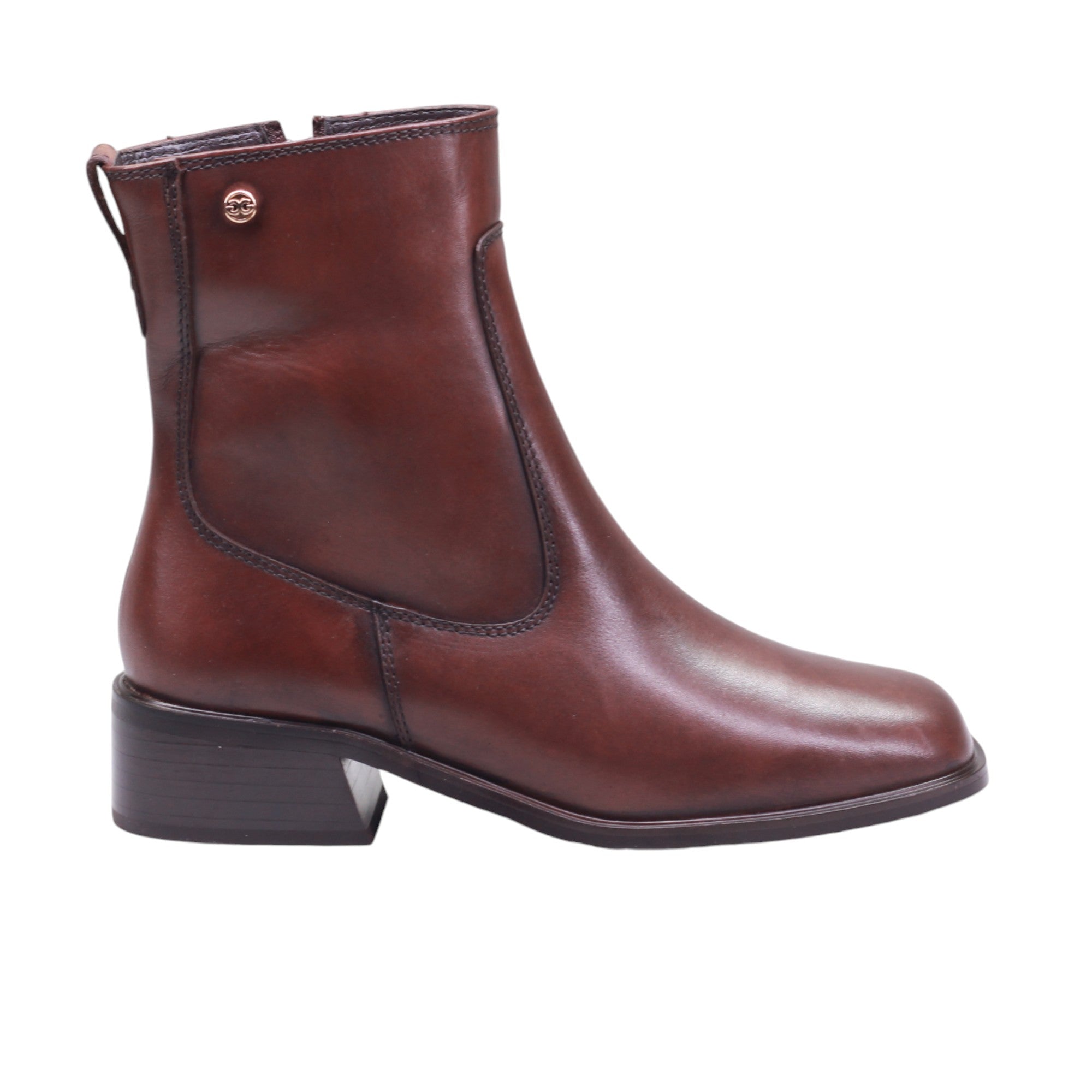 Bota para dama de tubo medio con terminado en piel lisa