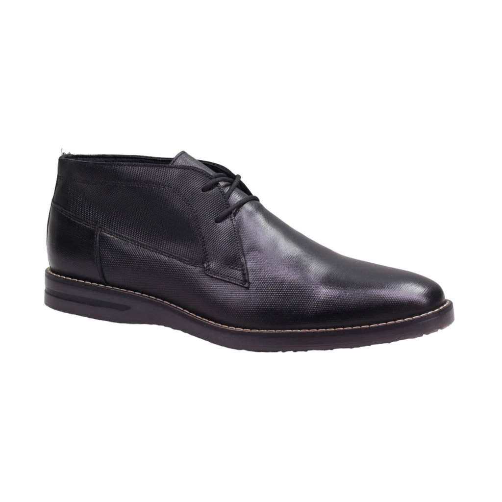 Botín para caballero marca Gino Cherruty en colores negro y brown. Este modelo de zapato cuenta con acabado en piel grabada que le brinda un toque sofisticado a tu look. Además, su plantilla de confort te permitirá caminar cómodamente durante todo el día. El ajuste con agujetas garantiza un calce perfecto y el tacón de 2.5 cm de altura te dará un poco de altura sin sacrificar comodidad. ¡Ideal para cualquier ocasión!