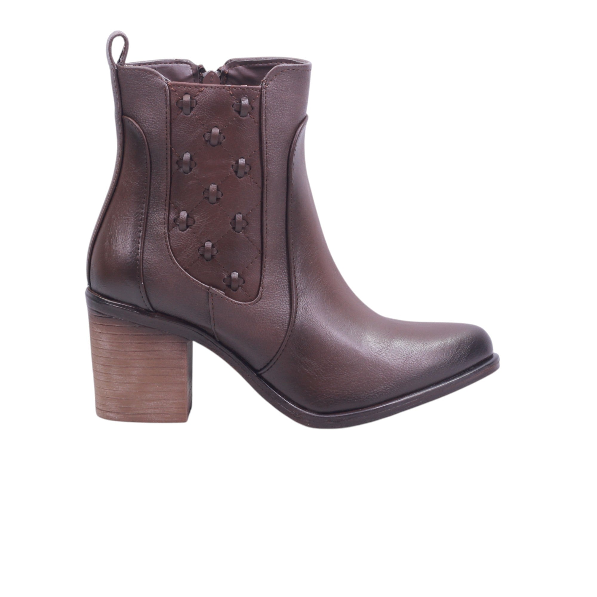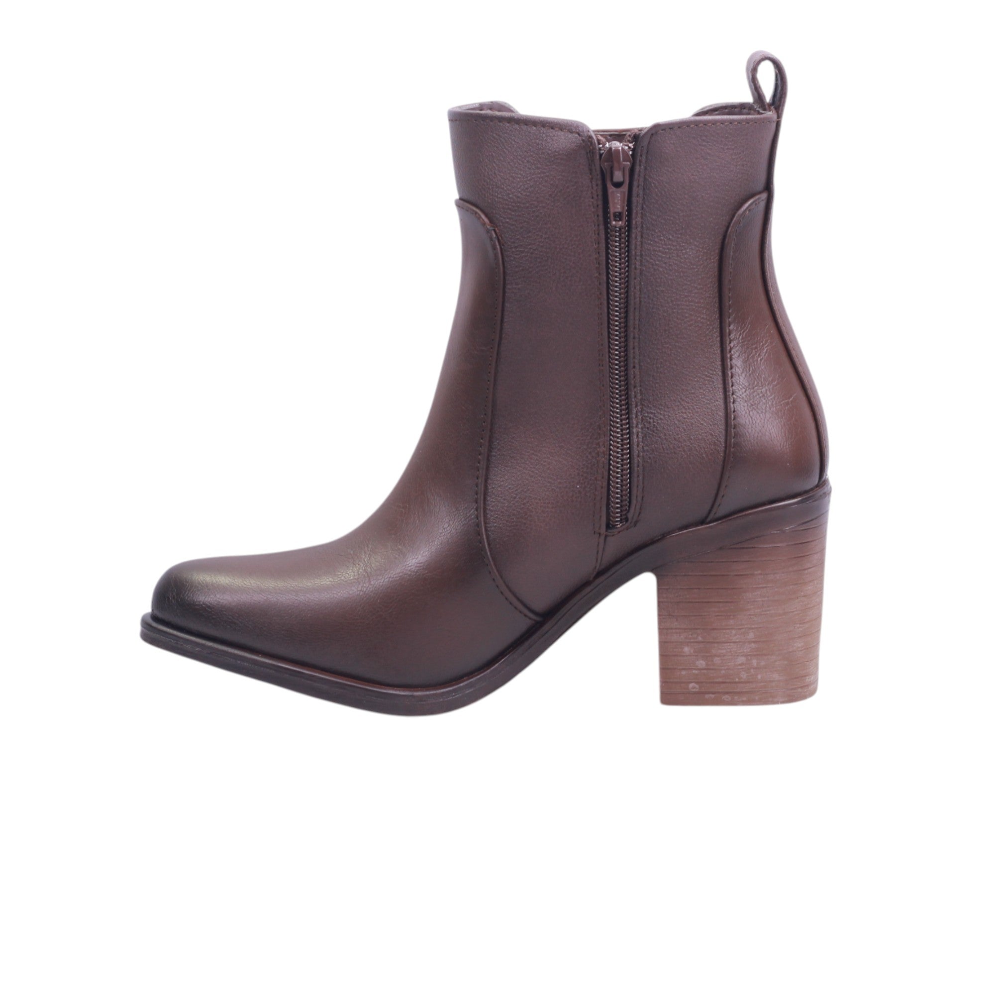 El cierre lateral permite un calce práctico y seguro, ideal para el ritmo diario. Con acabado suave y tonalidad cálida, este botín es perfecto para looks casuales con un toque refinado.