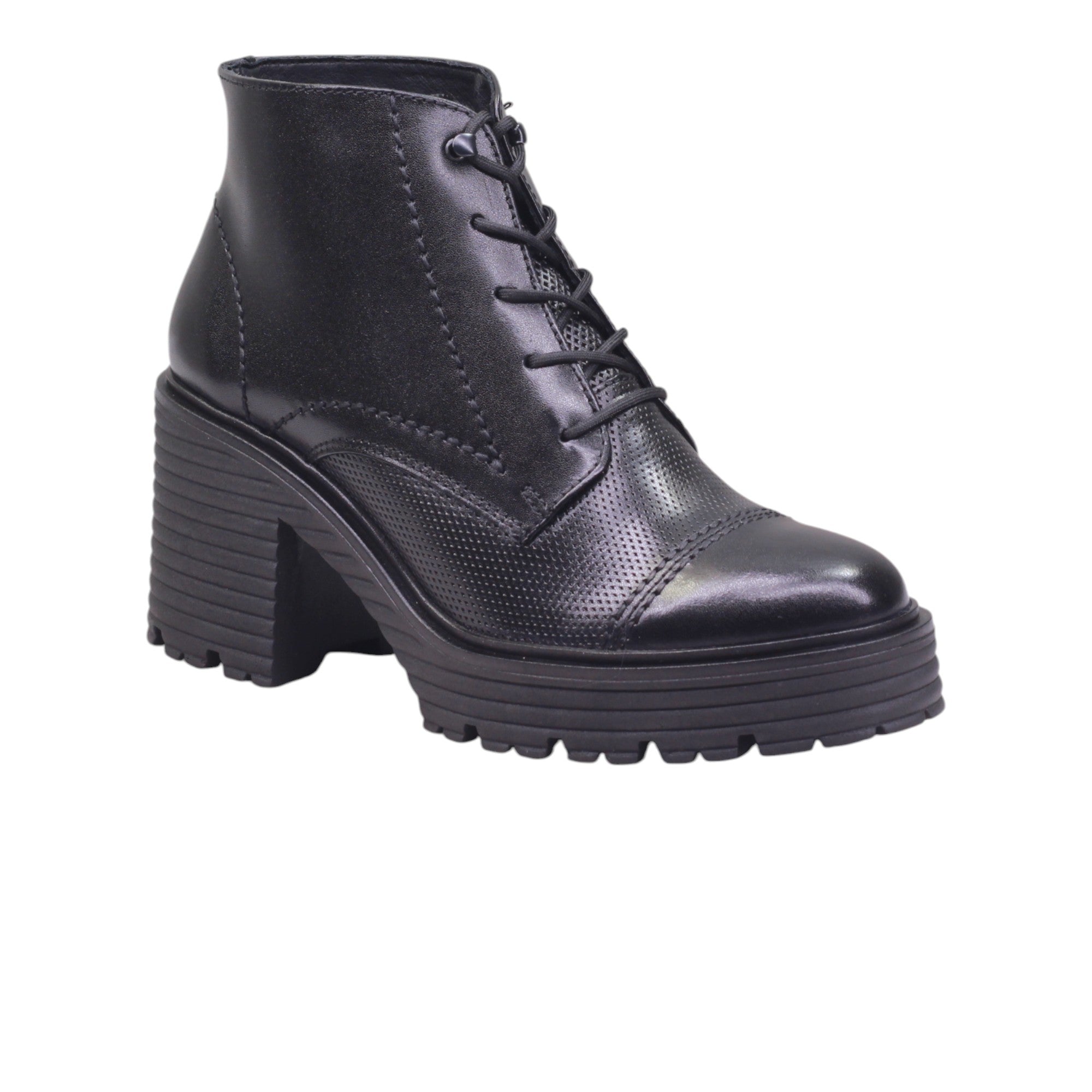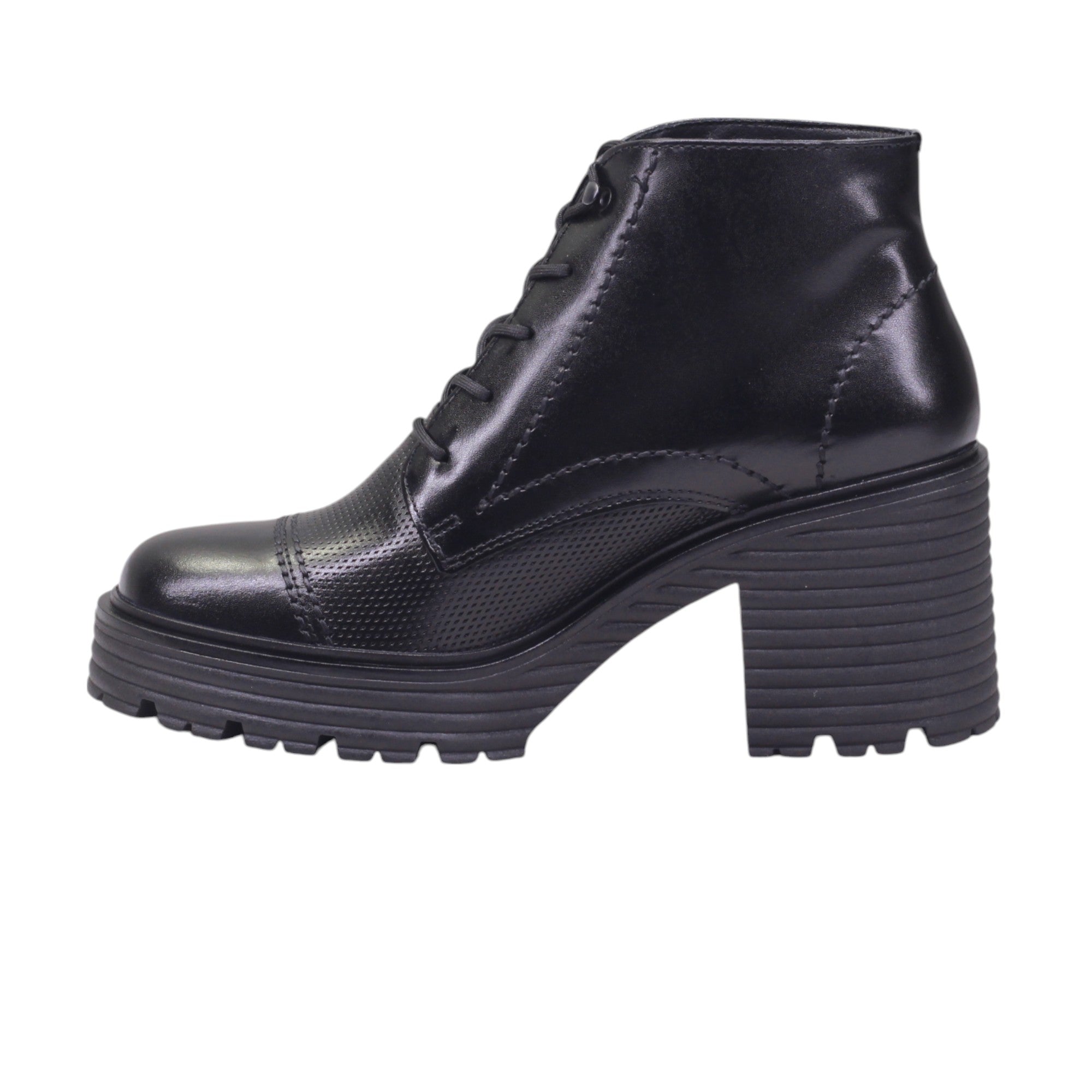 Este modelo cuenta con un tacón ancho de 7.5 cm que proporciona estabilidad y comodidad, ideal para largas jornadas. Su plantilla cómoda garantiza un calce perfecto. Además, su terminado en piel lisa con agujetas lo hace elegante y sofisticado.