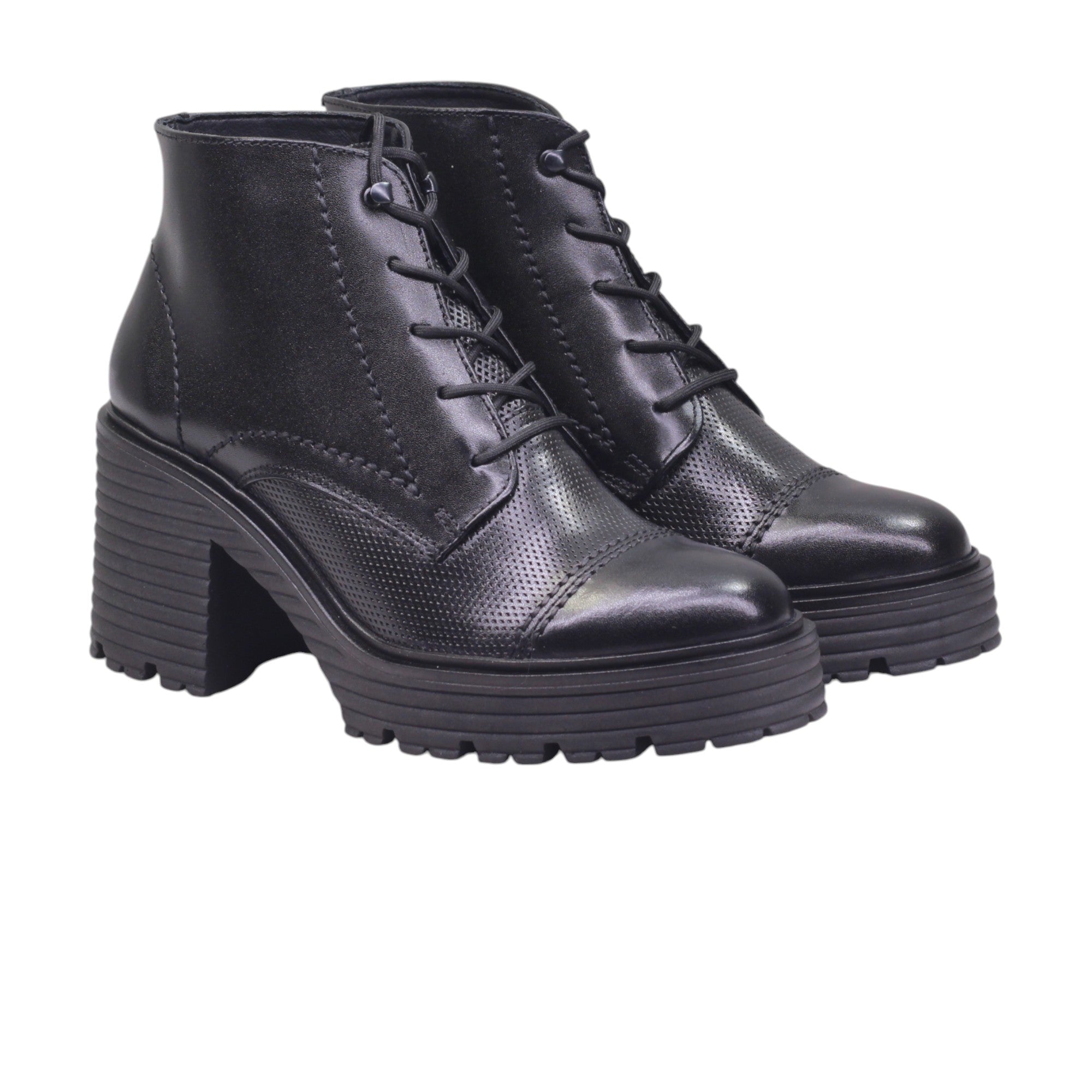 Botín de tacón ancho y ajuste en agujetas