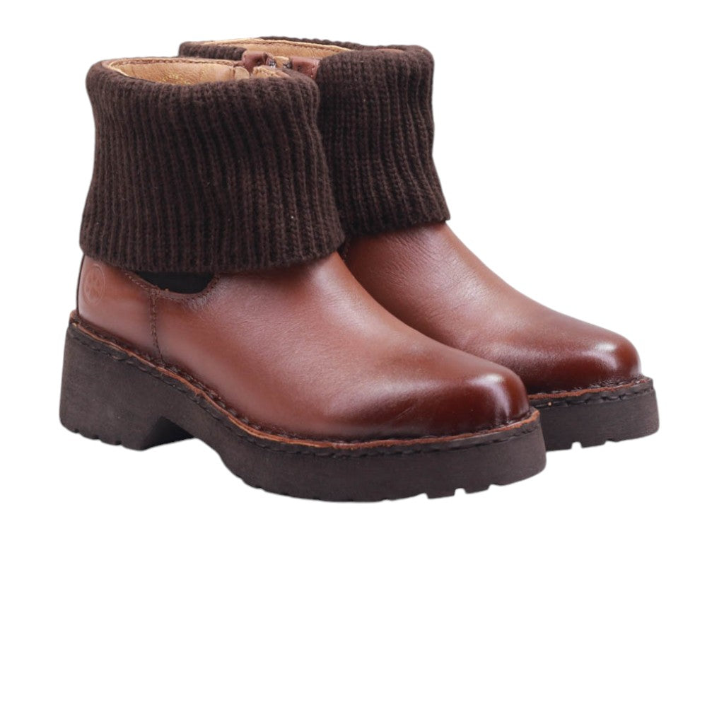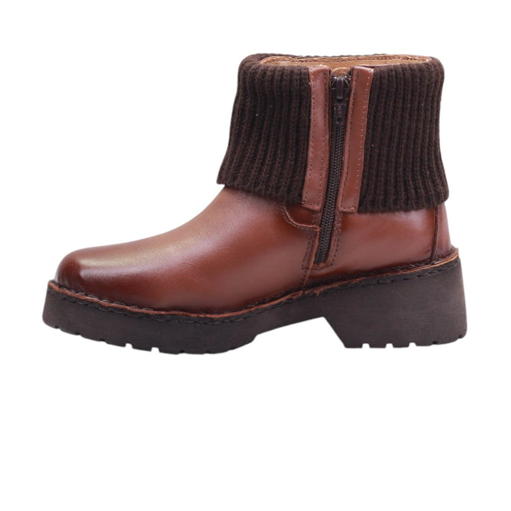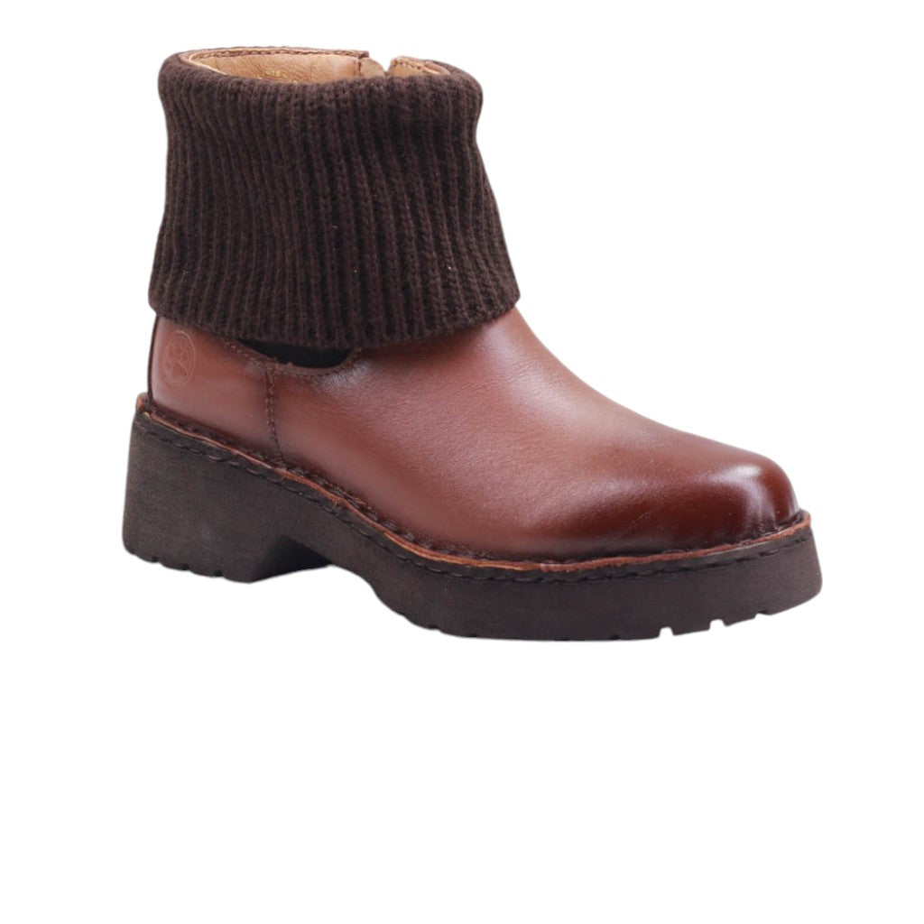 Botín para dama marca Lobo Solo en color miel. modelo de tubo corto con tejido que lo hace cómodo y moderno. La suela ancha de 4.00 cm proporciona una mayor estabilidad al caminar, mientras que el tejido a mano que une el corte a la suela garantiza una durabilidad excepcional. Además, la plantilla acojinada y el interior amplio ofrecen comodidad adicional. Con cierre lateral para un ajuste personalizado.