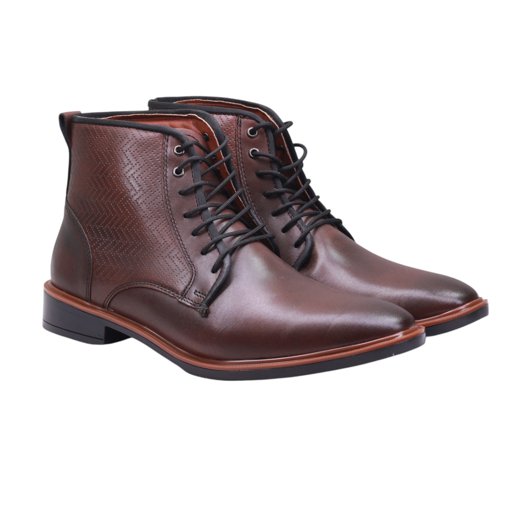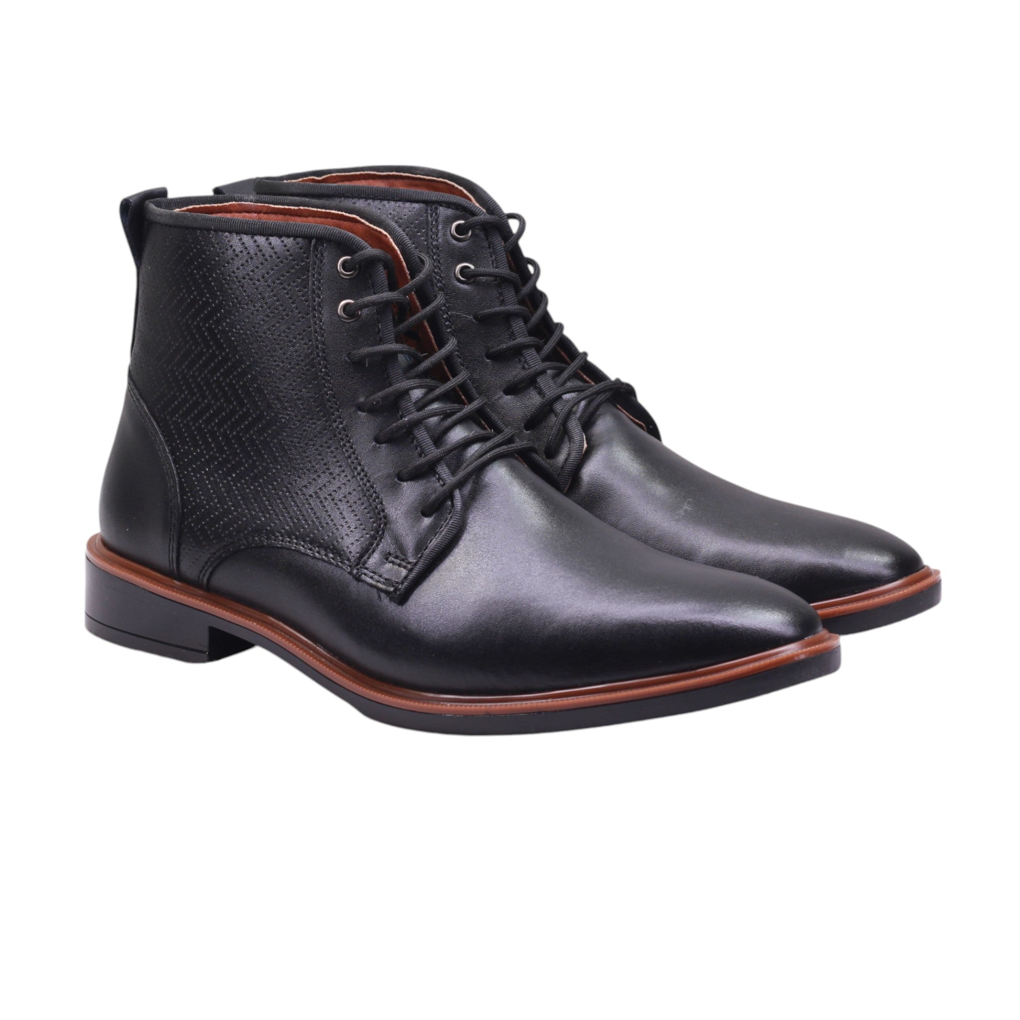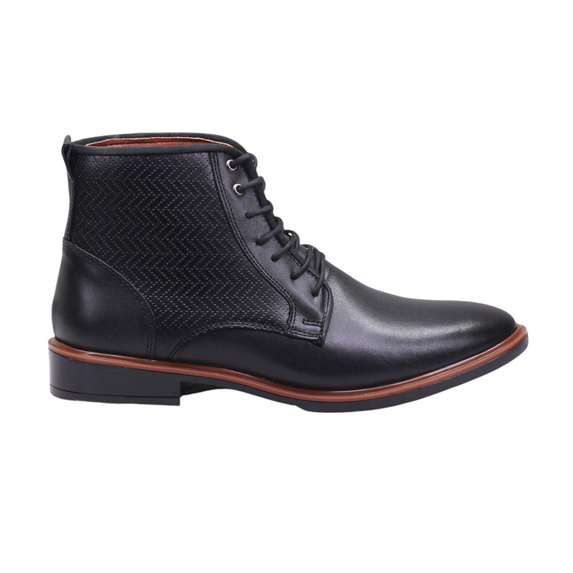 Botín para caballero marca Lugo conti en colores negro y zanahoria. Este modelo cuenta con un sistema de ajuste mediante agujetas, que garantiza una comodidad y sujeción óptimas. Los laterales cuentan con una elegante piel artificial grabada, lo que le da un toque de distinción al diseño. Además, su tacón de 2.5 cm ofrece una altura perfecta para caminar con estabilidad y sin cansancio.