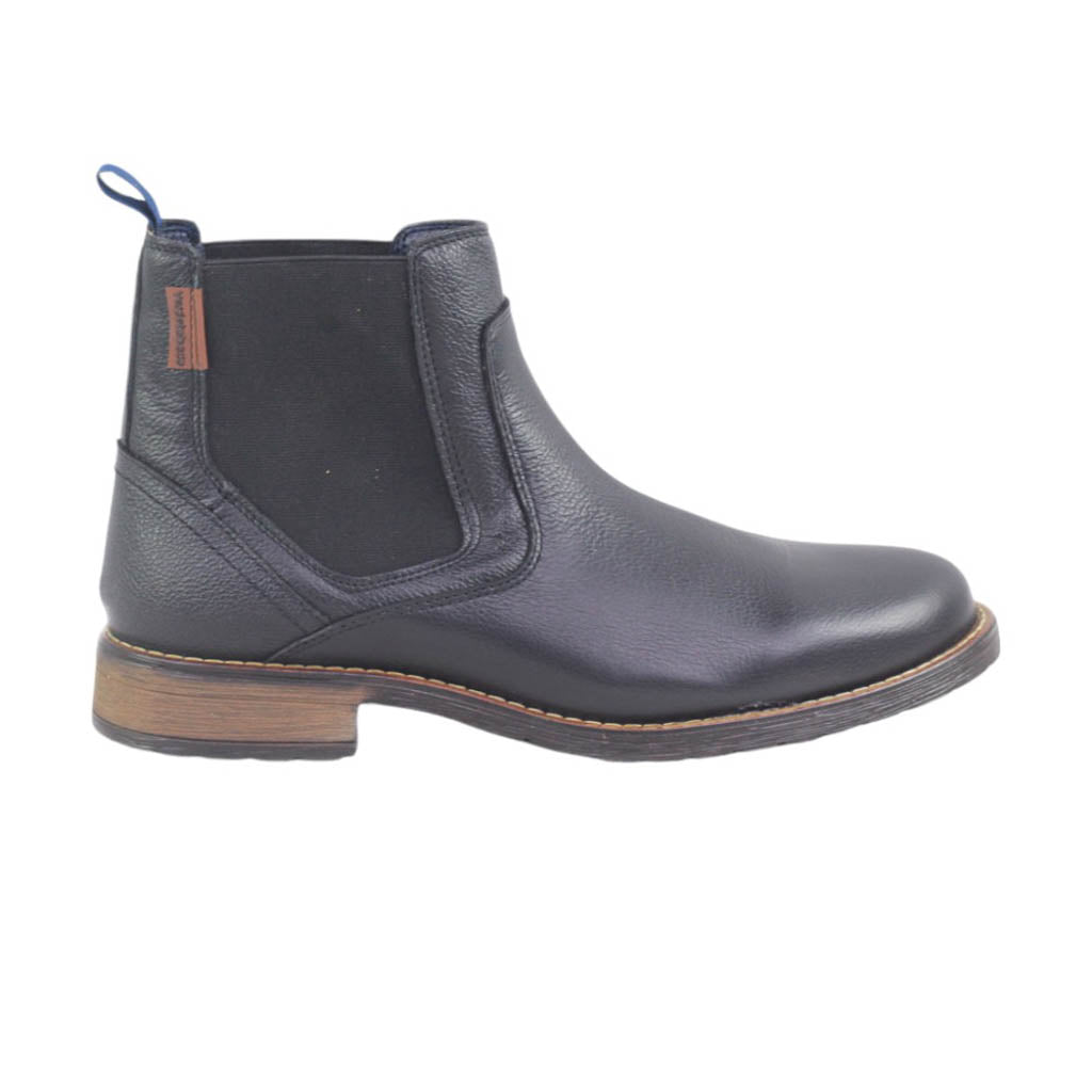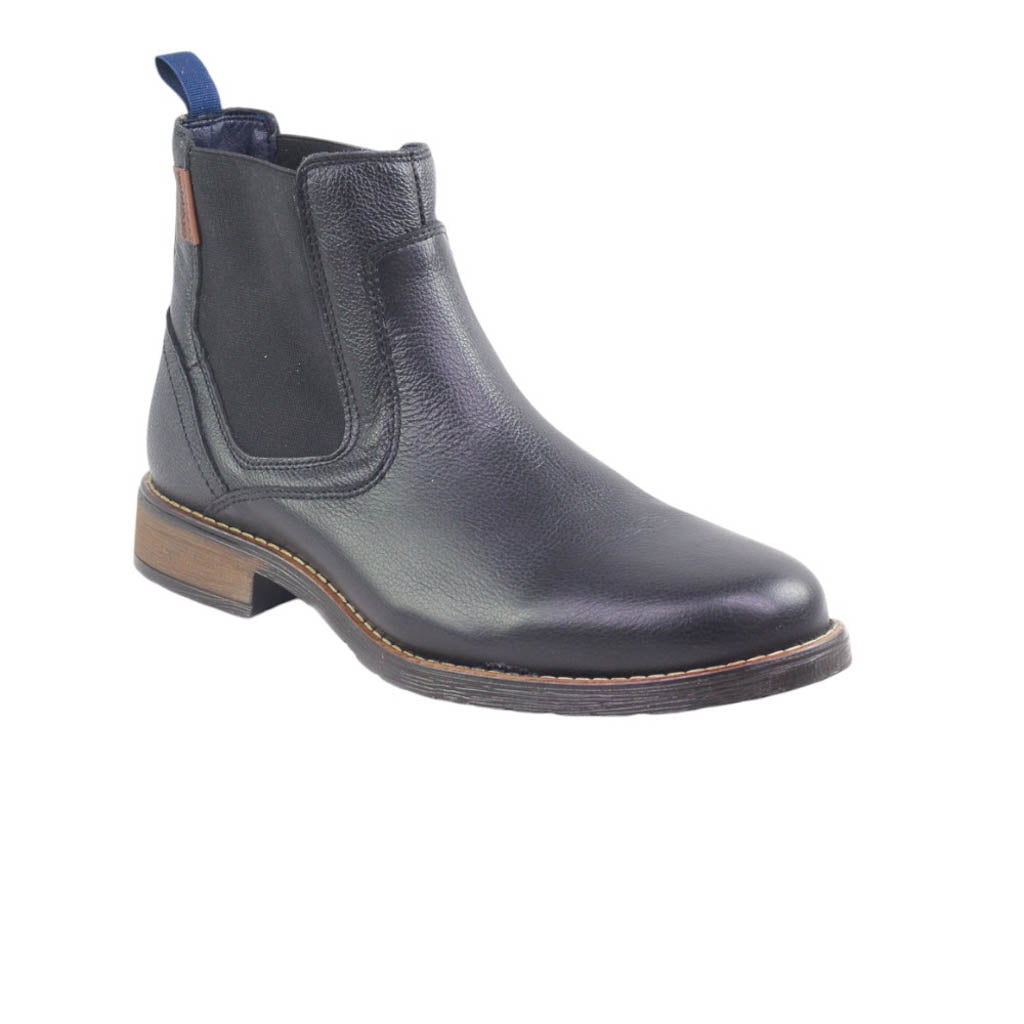 Botín para caballero de piel grasa con elástico lateral.