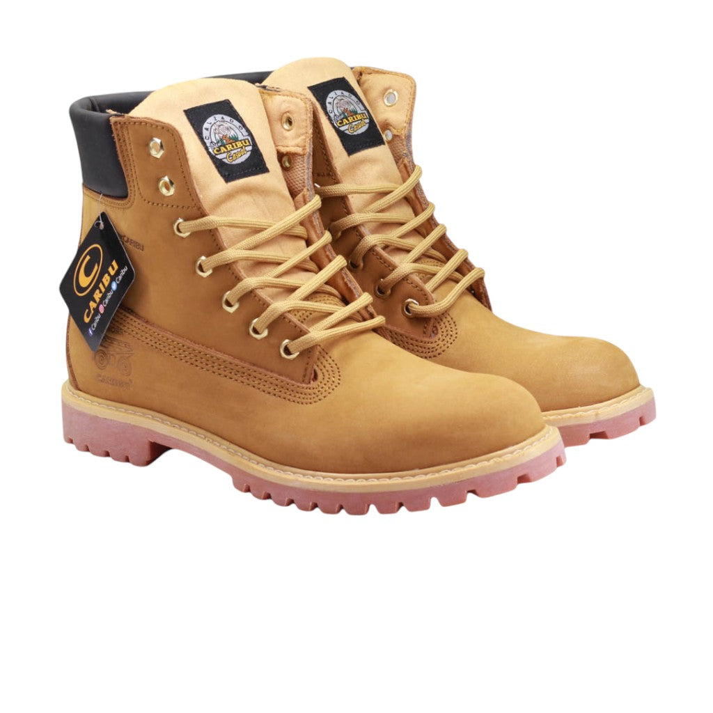 Botín para caballero marca Caribu en color paja. Este zapato de estilo industrial combina a la perfección comodidad y elegancia con su acabado en nobuck. Gracias a su plantilla y su interior confortable, podrás mantener tus pies descansados durante todo el día. Ideal para un look profesional en el trabajo.