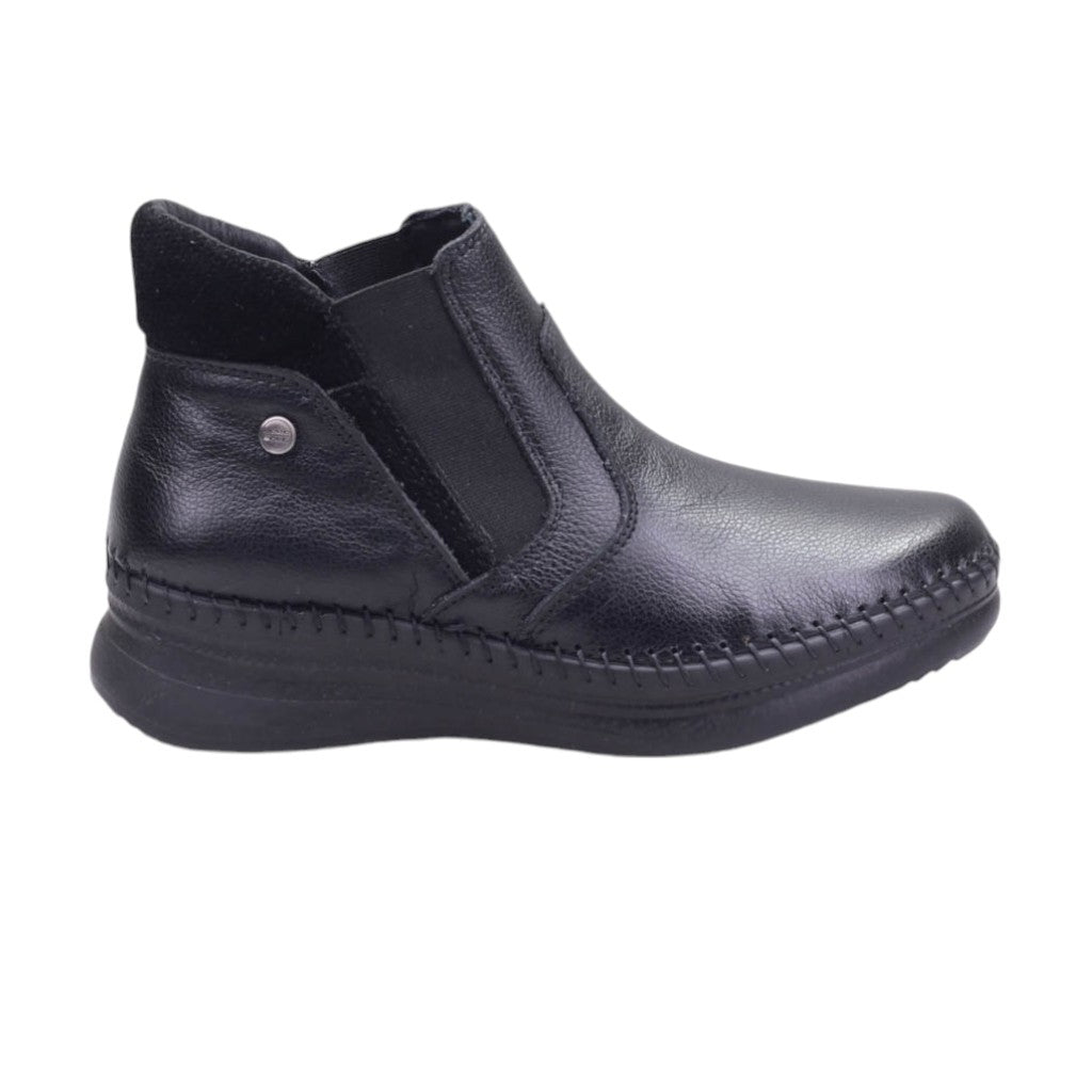 Botín para dama marca Lobo Solo en color negro. Este modelo está elaborado con piel grasa, lo que proporciona durabilidad y resistencia. Además, cuenta con una plataforma de 4.00 cm que brinda comodidad a tus pies. La plantilla acojinada y el elástico lateral aumentan aún más la comodidad de este calzado.