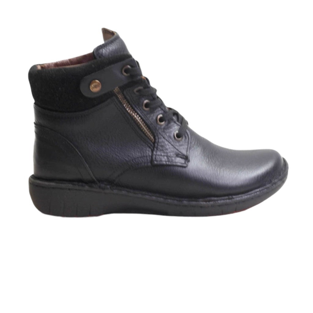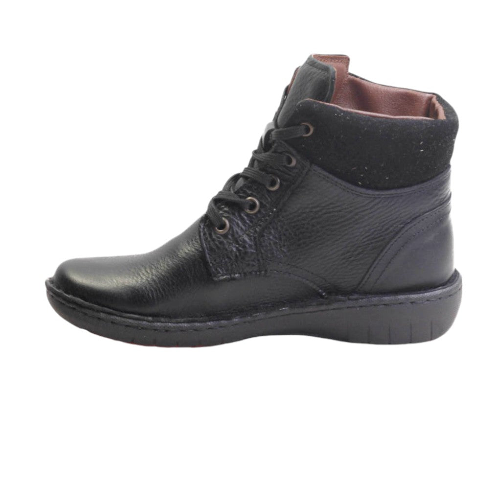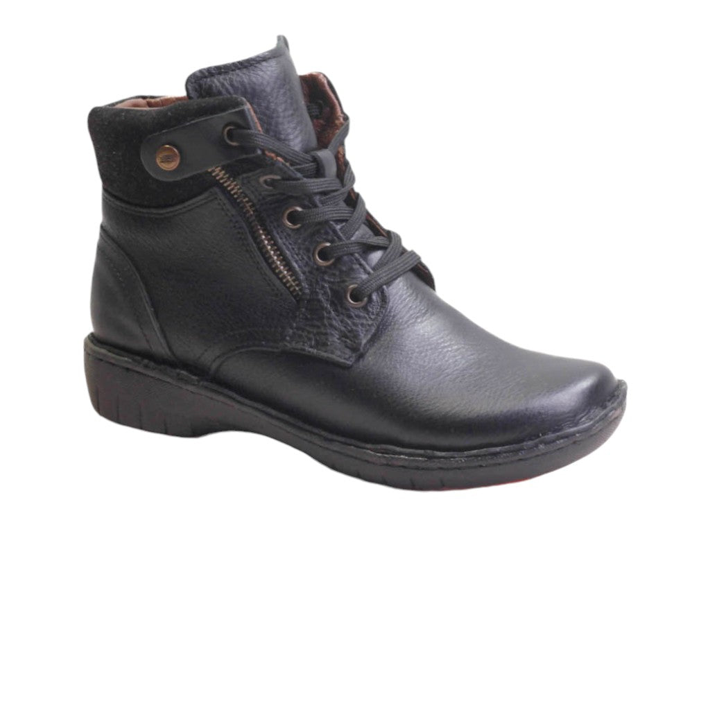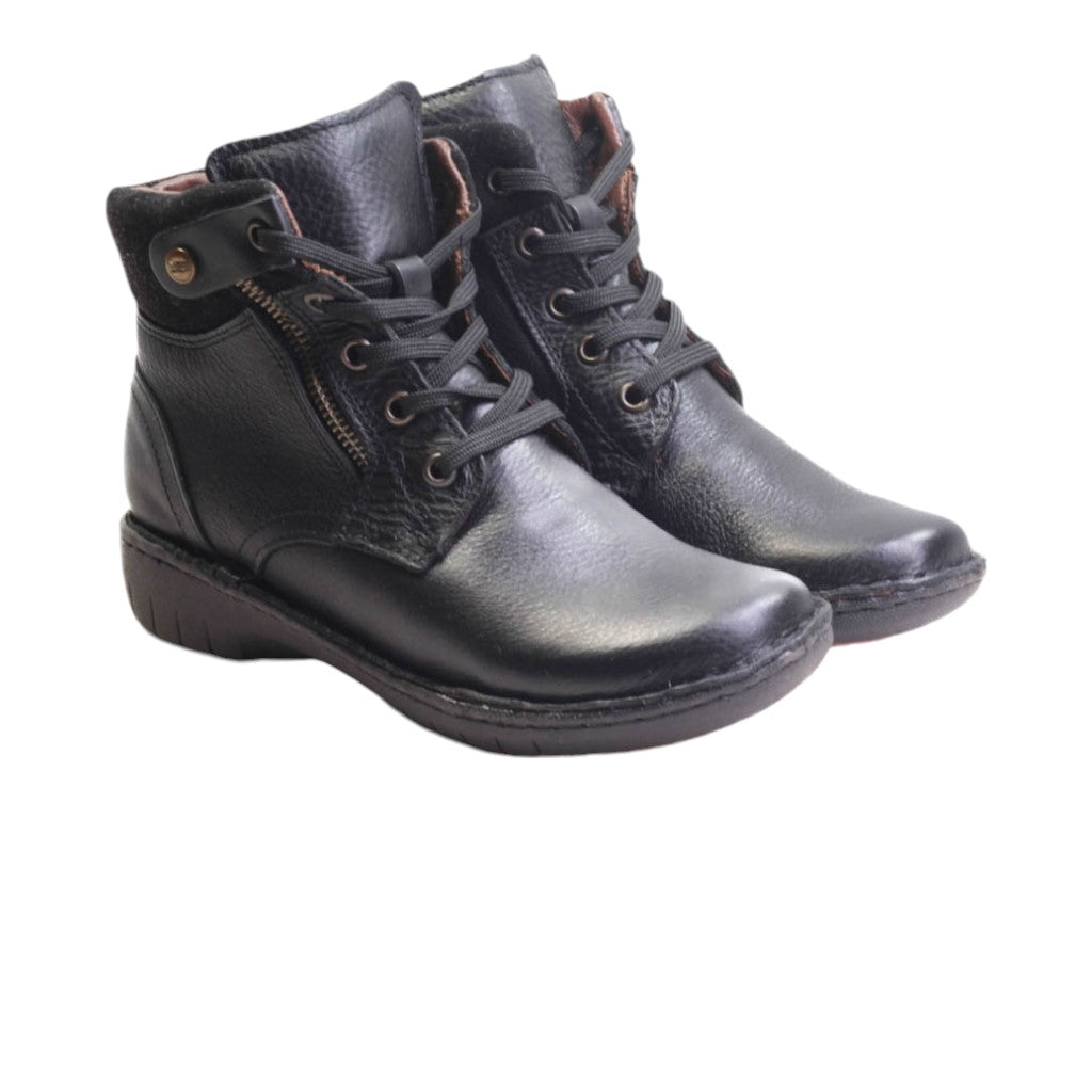 Botín para dama marca Lobo Solo en colores negro y came. Elaborado artesanal mente por manos mexicanas. Línea con un sistema de mejor agarre en su suelo para mayor confiabilidad en el terreno, está confeccionada en pieles grasas con un acabado repelente al agua. Un estilo que combina el rendimiento y la funcionalidad con detalles en un mismo producto. Este calzado cuenta con una suela ligera y una plantilla super cómoda lo cual hará que estés cómoda a cada paso.
