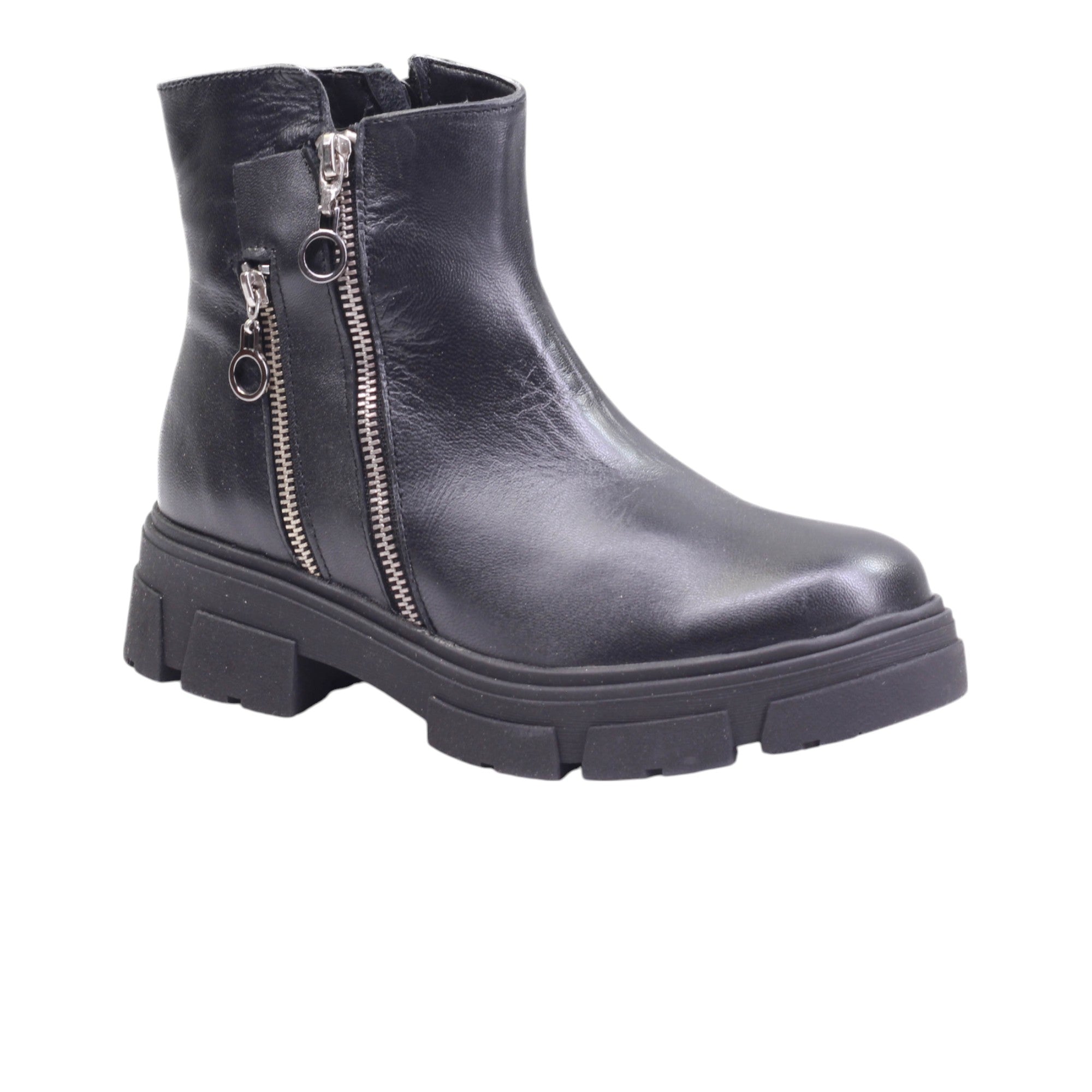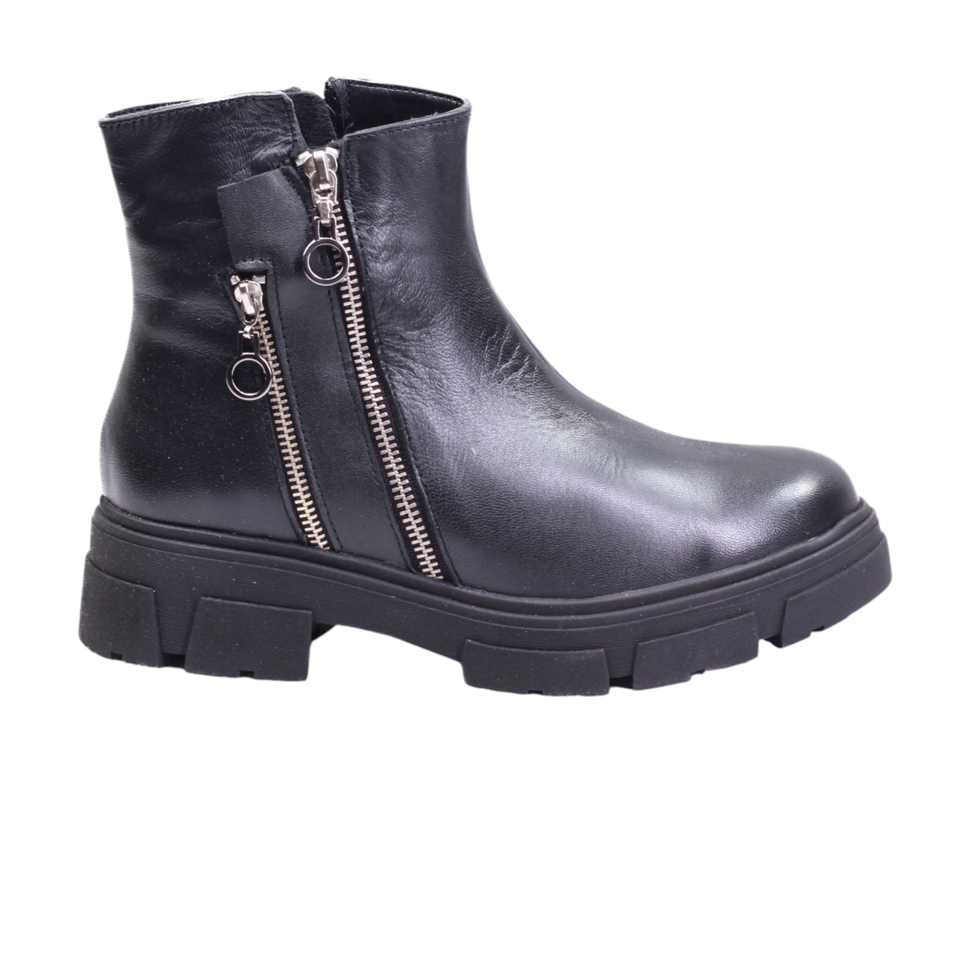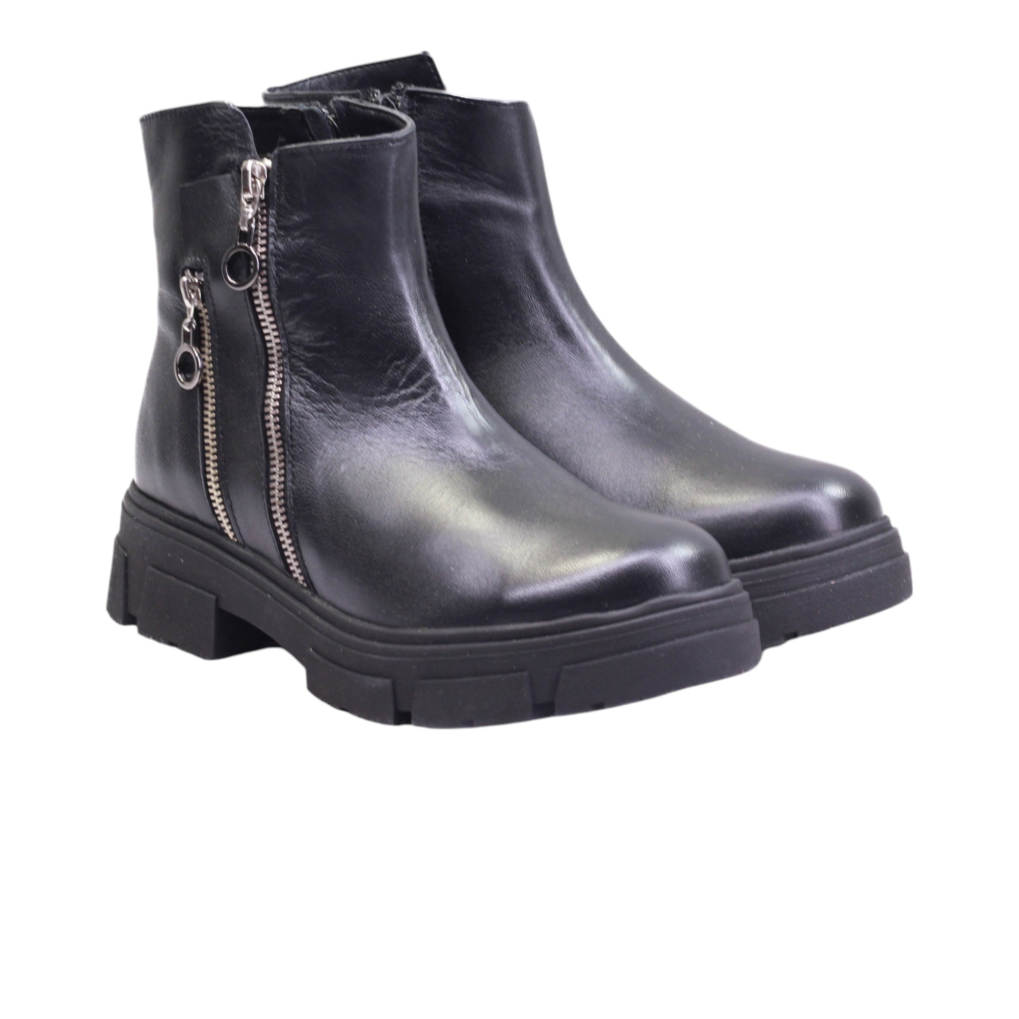 Botín para dama marca Manet Moda en color negro. Elaborado por manos mexicanas. Línea con un sistema de mejor ajuste para mayor confiabilidad en el terreno, está confeccionada en piel lisa con doble cierre lateral. Un estilo que combina el rendimiento y la funcionalidad con detalles en un mismo producto. Este calzado cuenta con plataforma alta y plantilla de confort, lo cual hará que estés cómoda a cada paso.