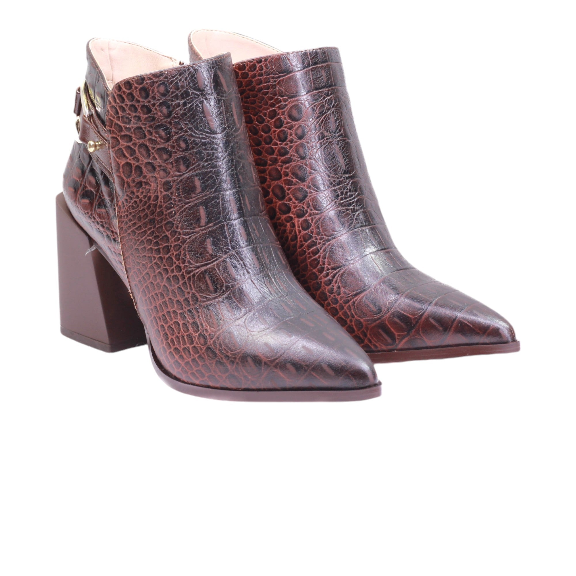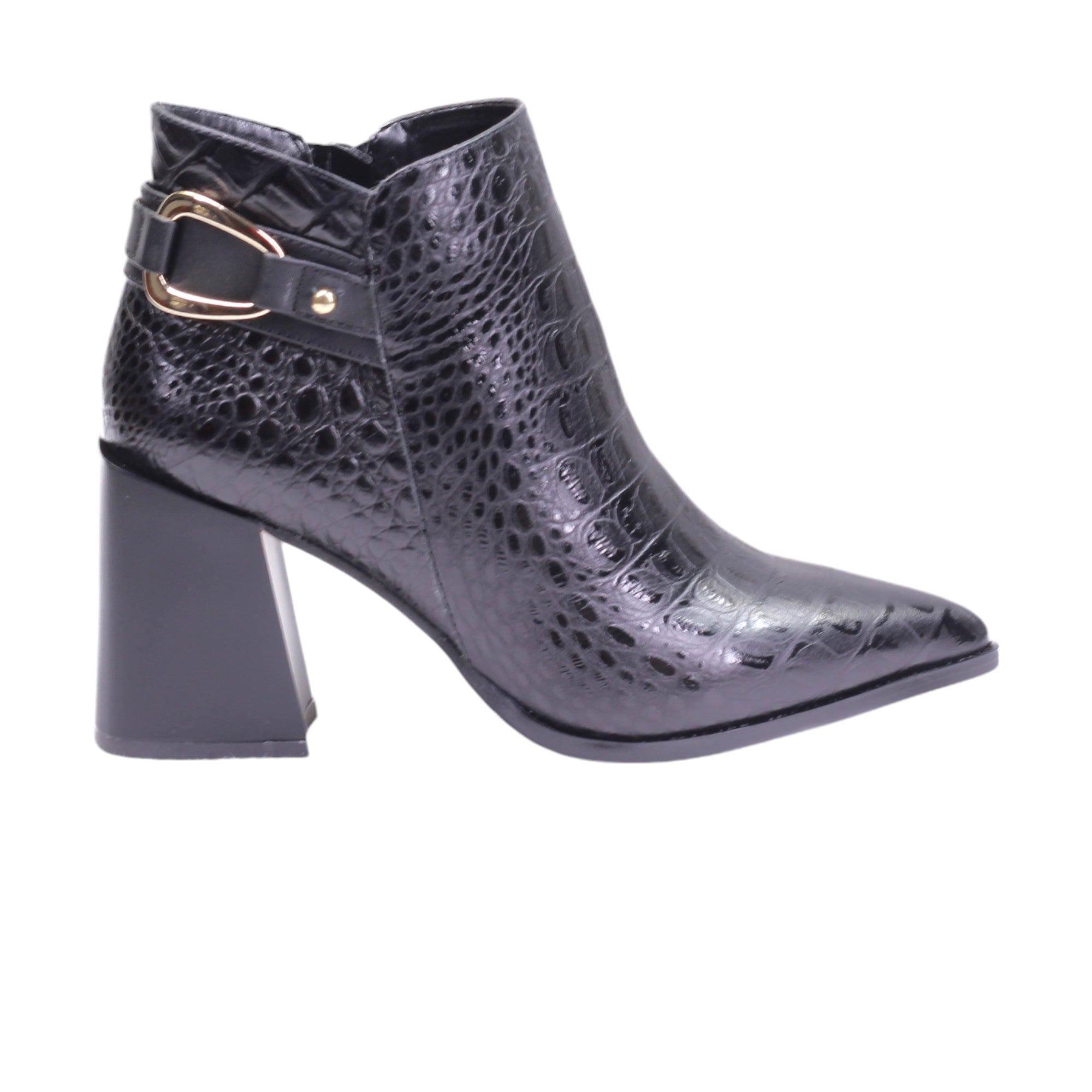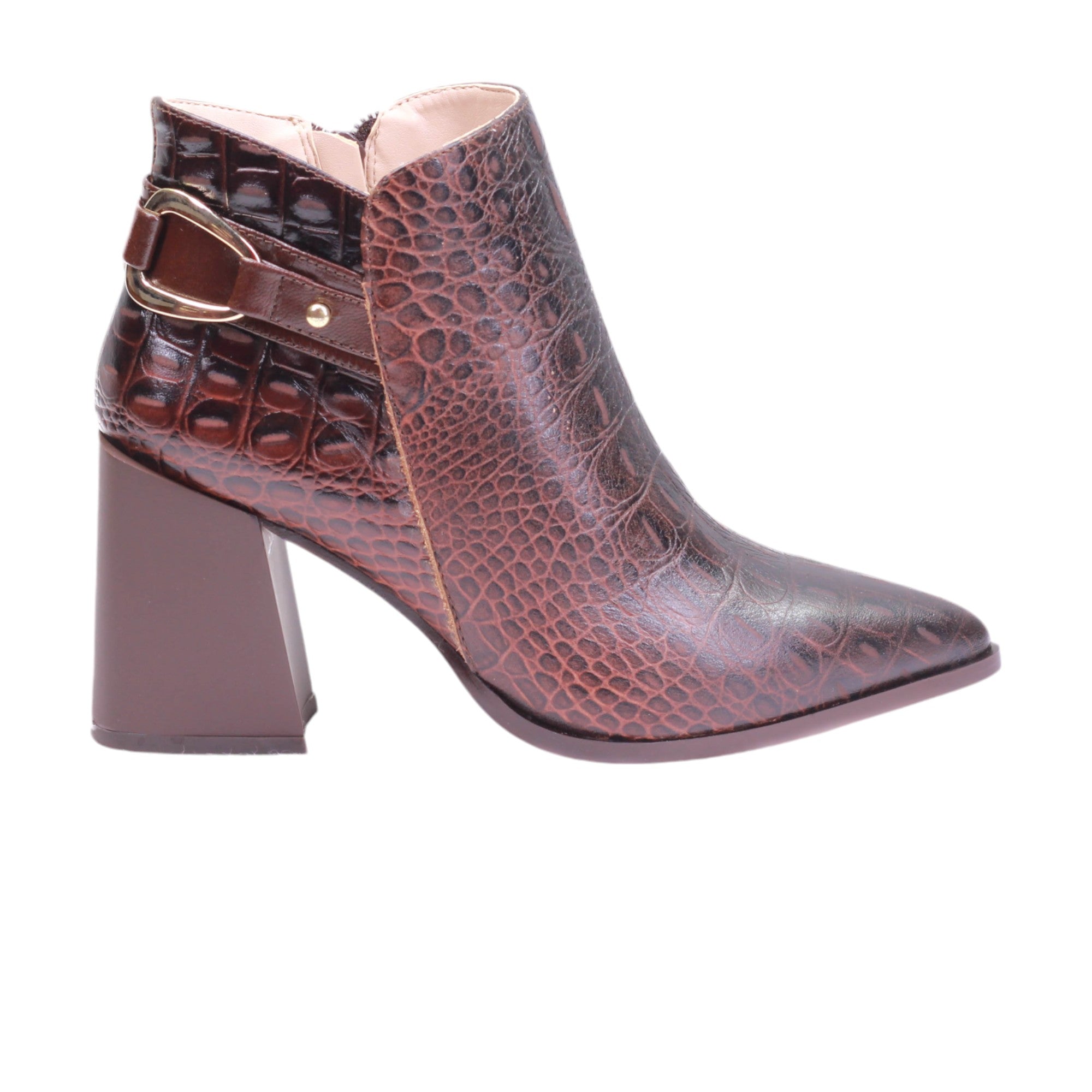 Botín para dama de punta con fajillo trasero y terminado en crocco