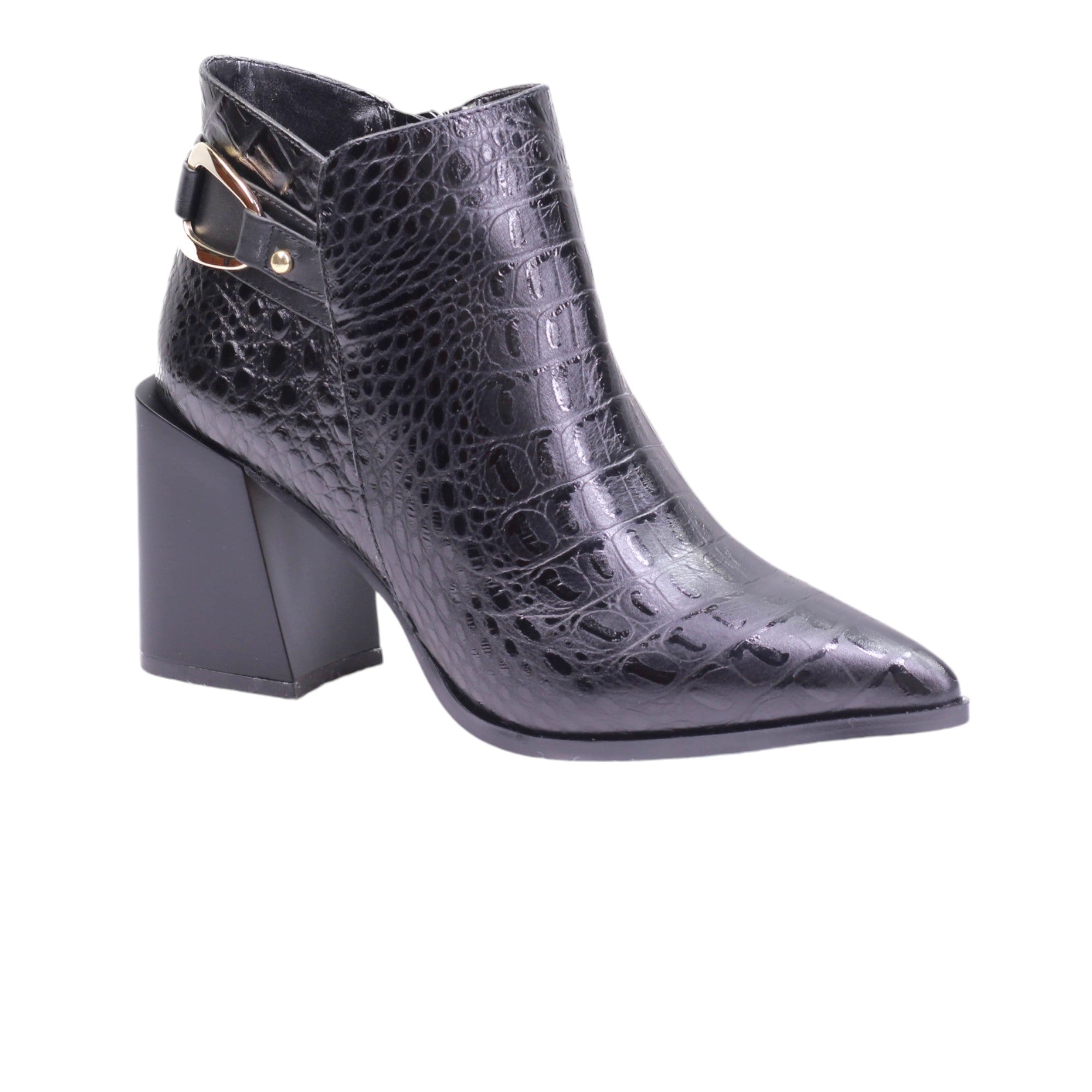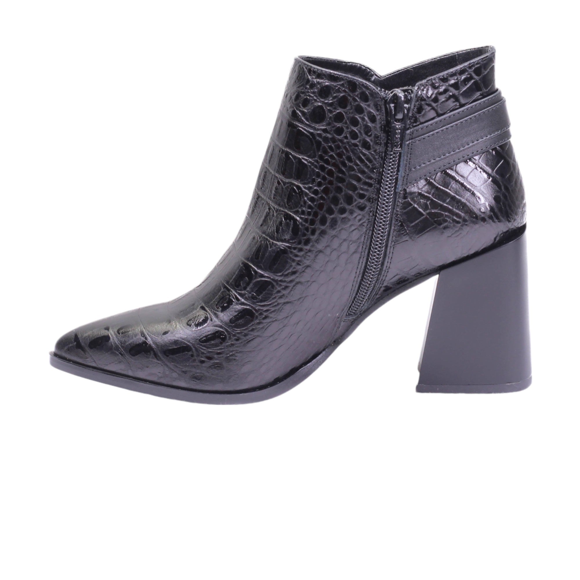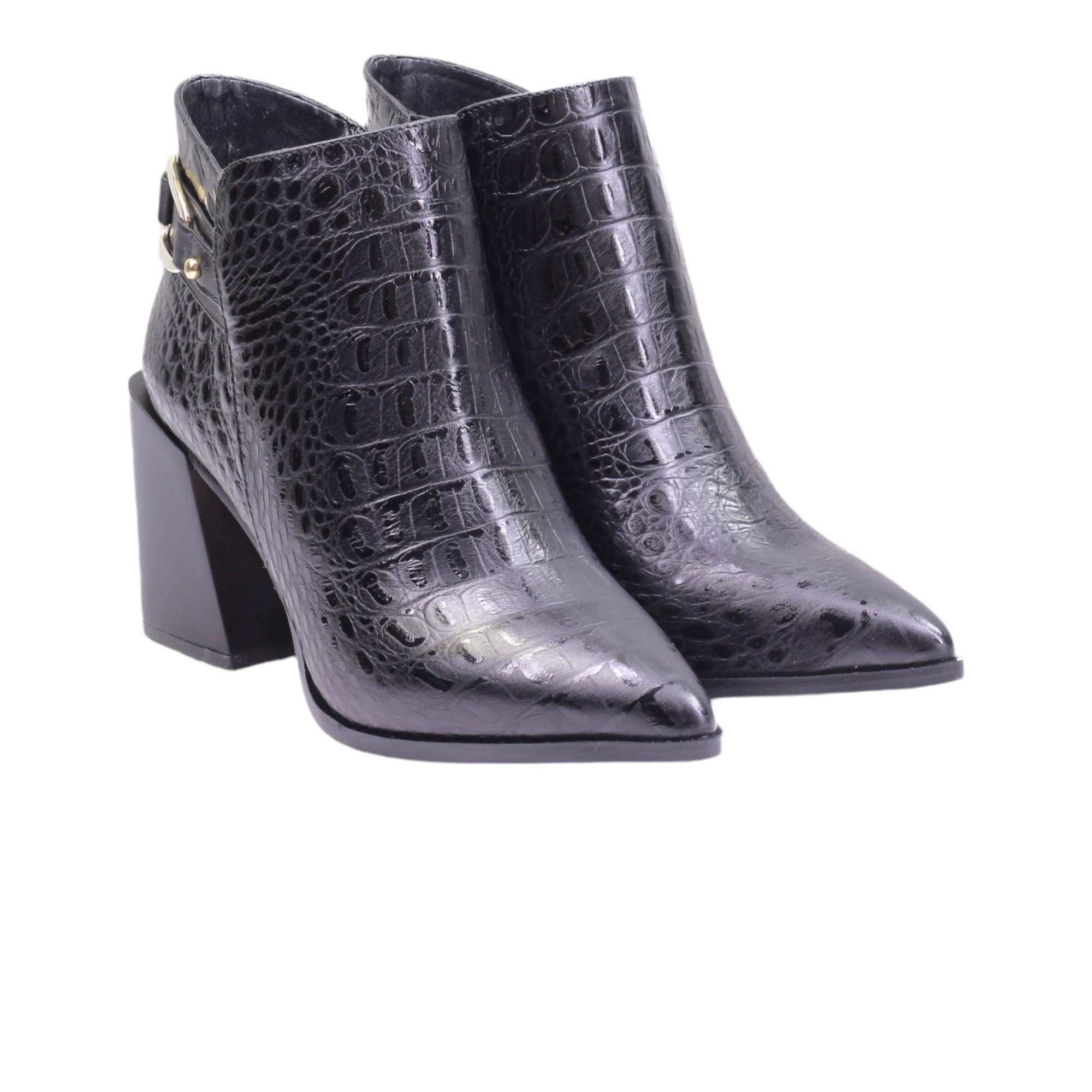 Botín para dama de punta con fajillo trasero y terminado en crocco