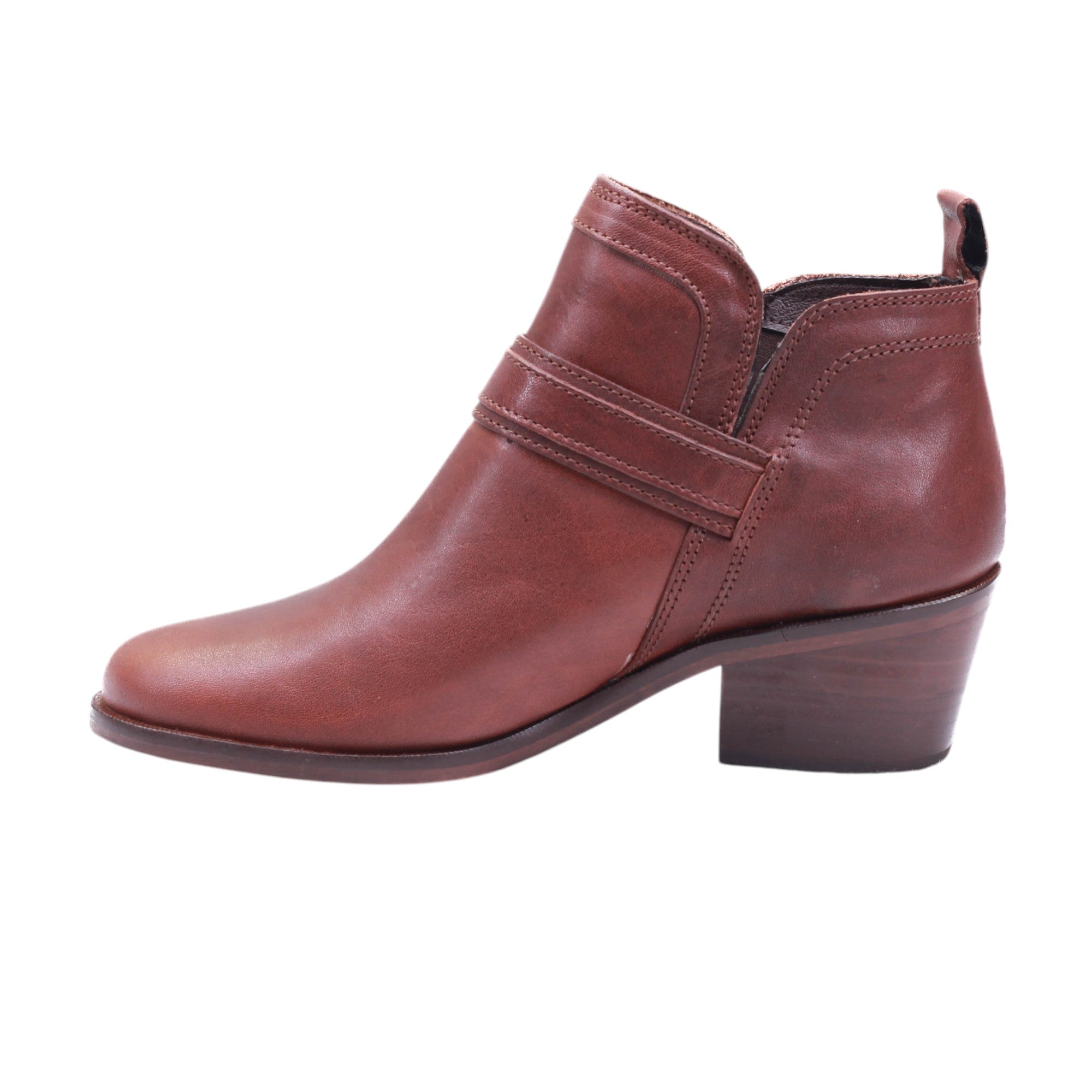 Botín para dama de tubo corto con fajillo de adorno, estilo vaquera