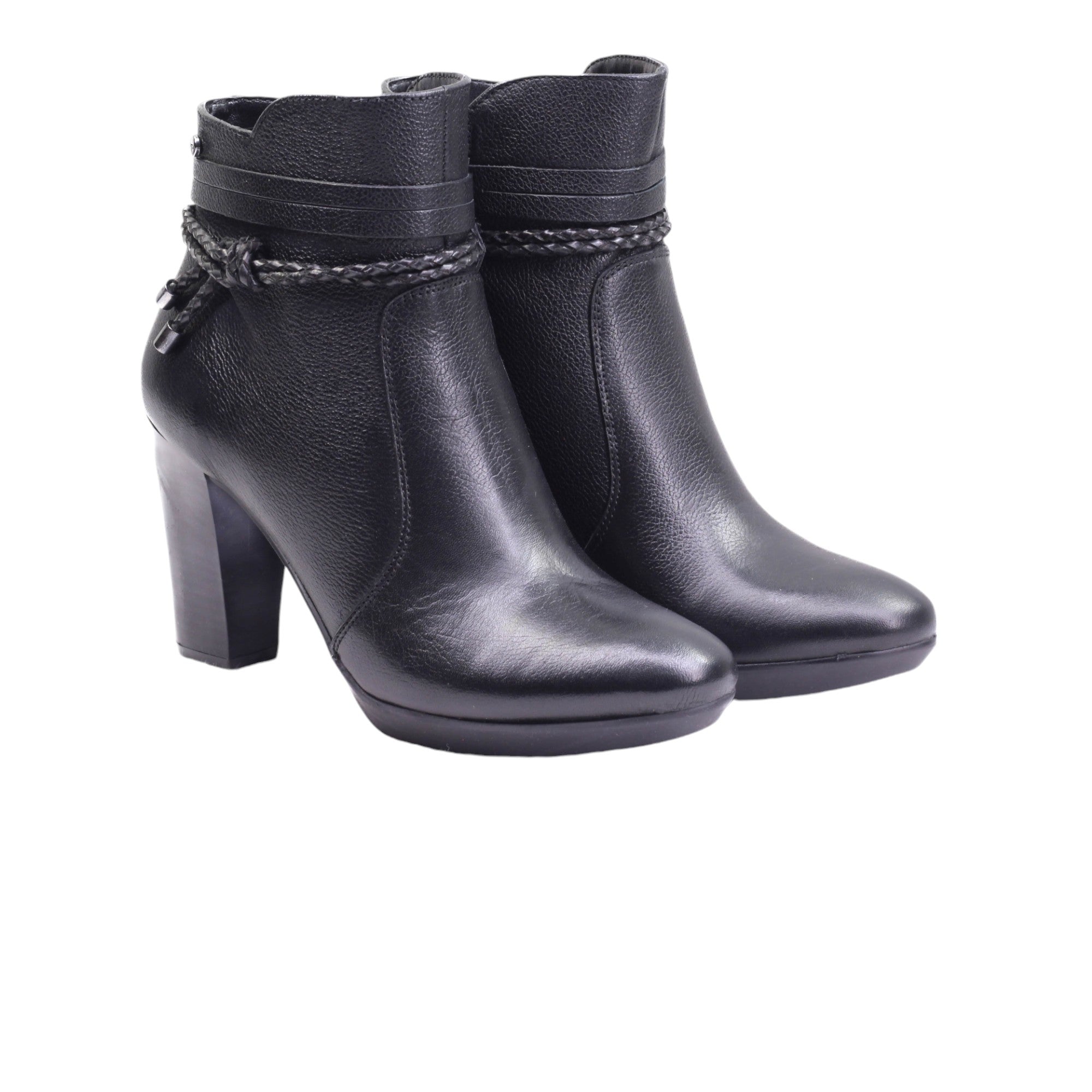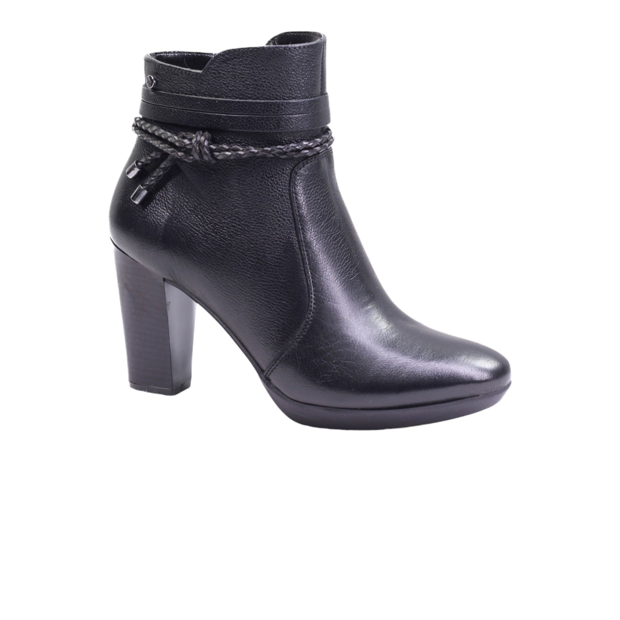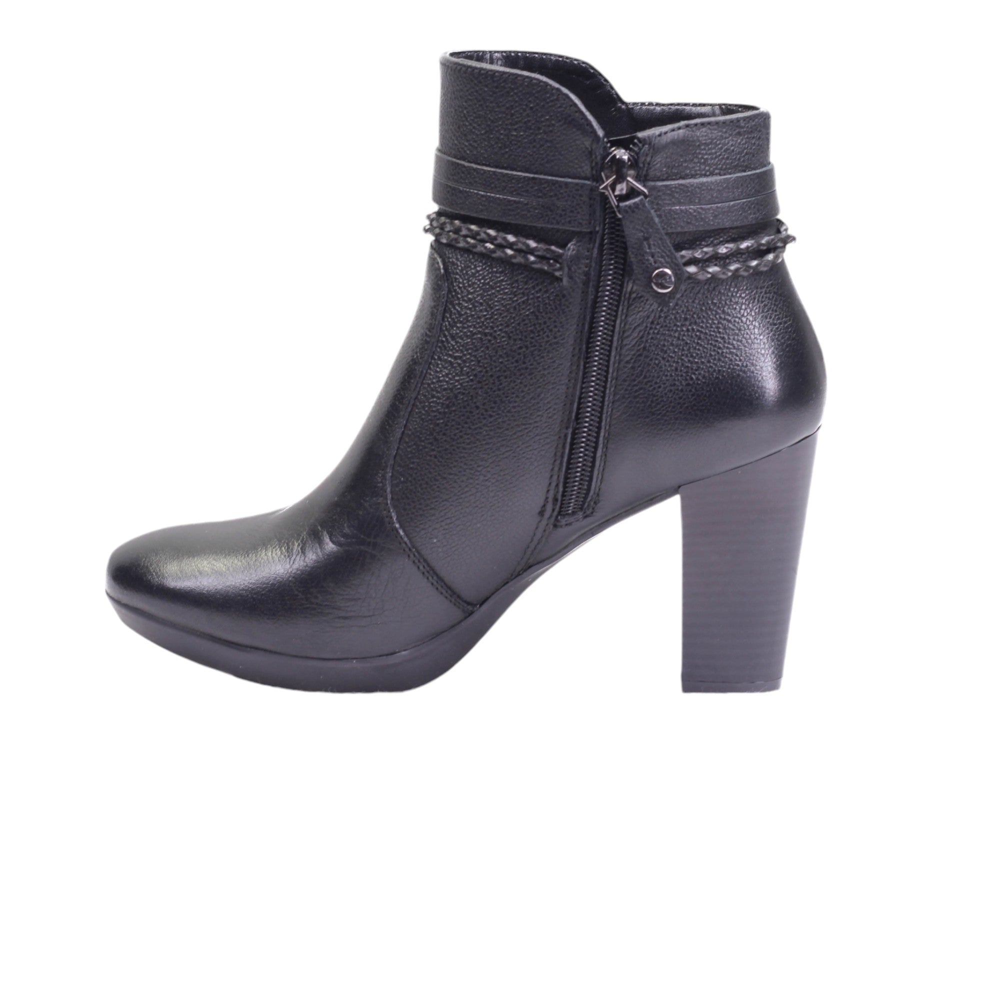 Botin para dama de tubo corto, piel grabada y fajilo lateral