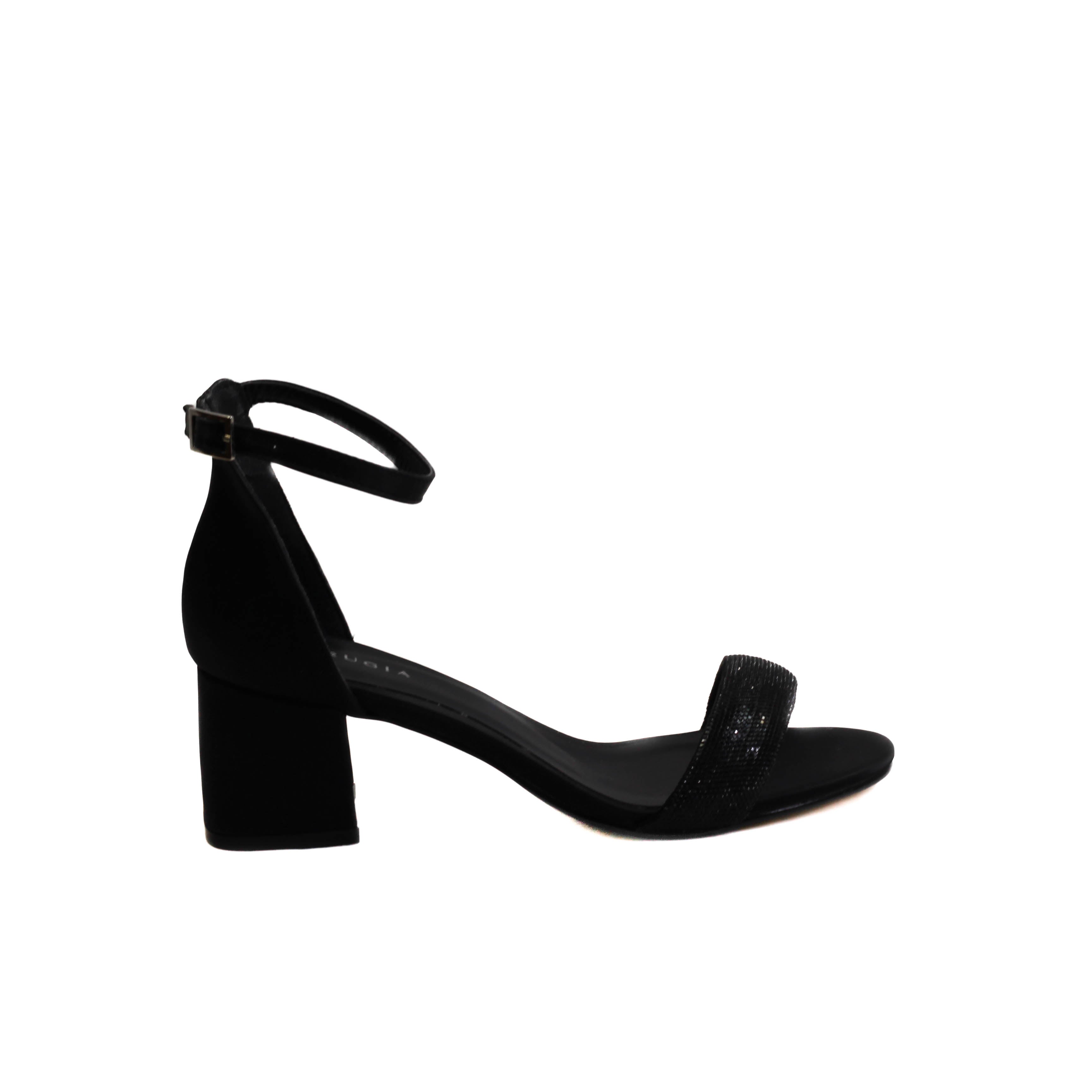 Brillo y glamour para tus pies: Zapatillas con tacón de 5.00 cm y tira delantera de pedrería