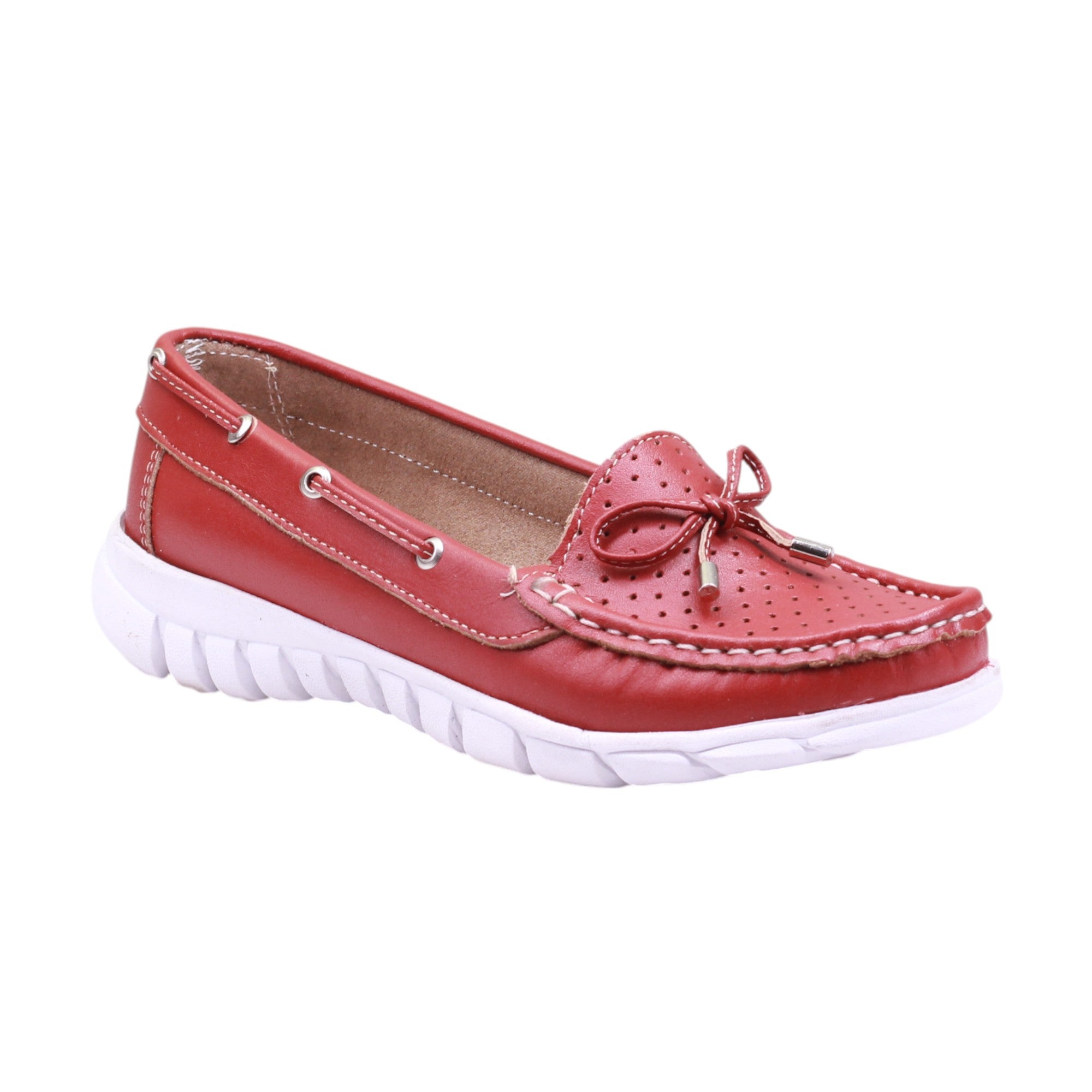 Mocasines de marca Esencia de Mujer en clásicos colores marino, negro y rojo. Encuentra un estilo clásico con el modelo de piel vacuna. Con una altura de 2.5 cm, la suela proporciona comodidad y durabilidad. El moño de tiras delgadas le da un toque elegante y único al corte. Perfecto para cualquier ocasión.