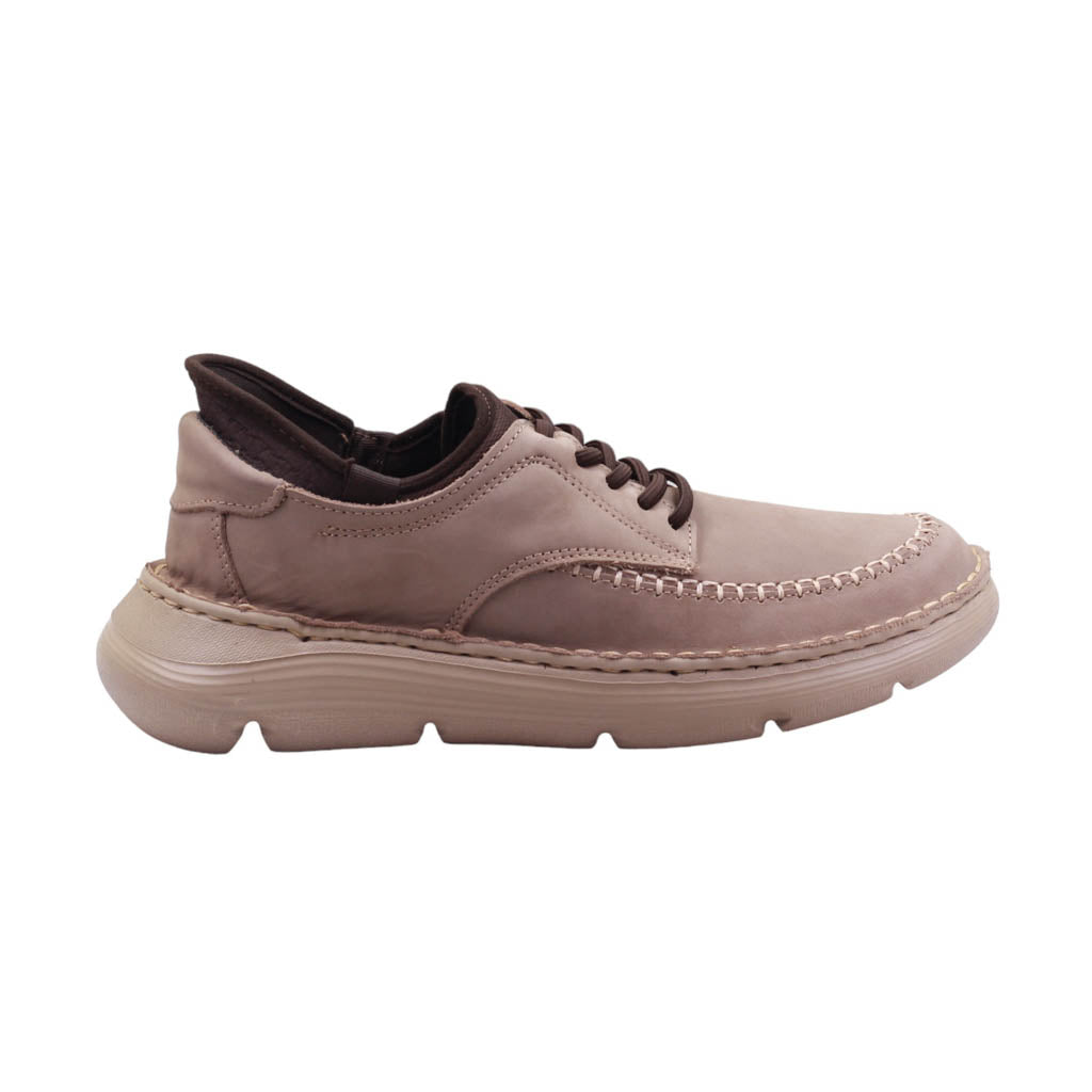 Calzado para caballero marca Lobo Solo en color taupe. Este modelo ofrece un alto nivel de confort gracias a su plantilla acojinada y su ajuste en agujetas. El interior en textil brinda comodidad y la suela con altura de 5.00 cm proporciona un soporte adicional. Ideal para caminatas y uso diario.