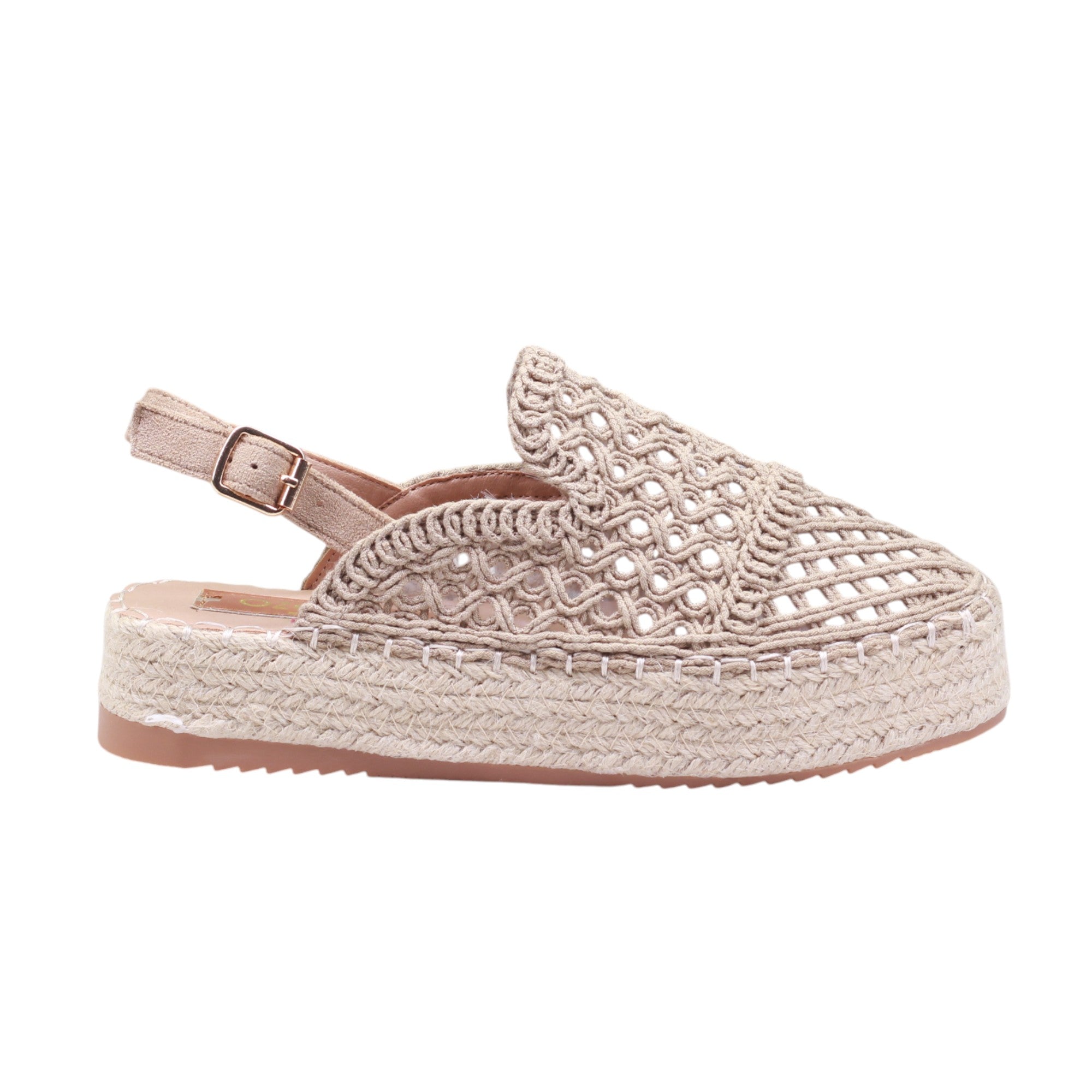 Calzado para dama marca Ozono en color beige y negro. Este modelo cuenta con corte tejido que brinda una sensación liviana y transpirable. La plataforma tejida de la suela ofrece un soporte adicional y una pisada cómoda. La plantilla se adapta a la forma del pie para mayor comodidad. Además, el ajuste al trasero proporciona estabilidad al caminar.