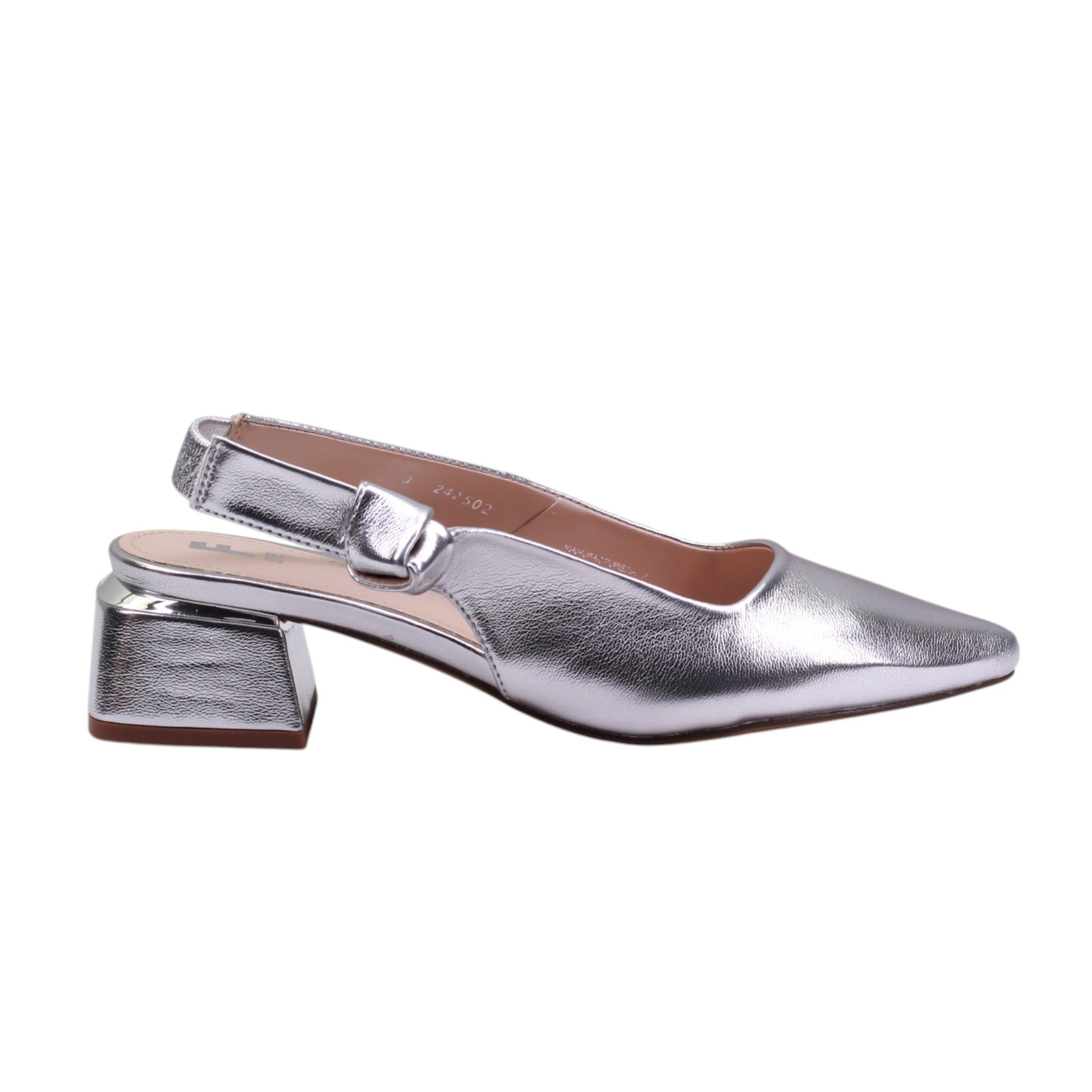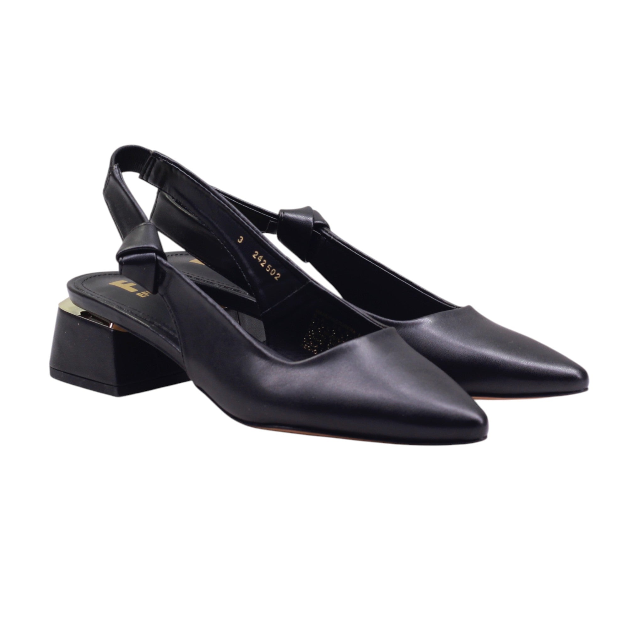 Zapatilla Para Dama marca Efe en colores negro y plata. Con corte y forro artificiales, este modelo presenta diseño destalonado con tira trasera elástica para ajuste cómodo. La punta cerrada estiliza el pie, mientras el tacón cuadrado de 3.00 cm aporta estabilidad sin perder elegancia. Ideal para ocasiones formales o looks sofisticados con toque moderno.