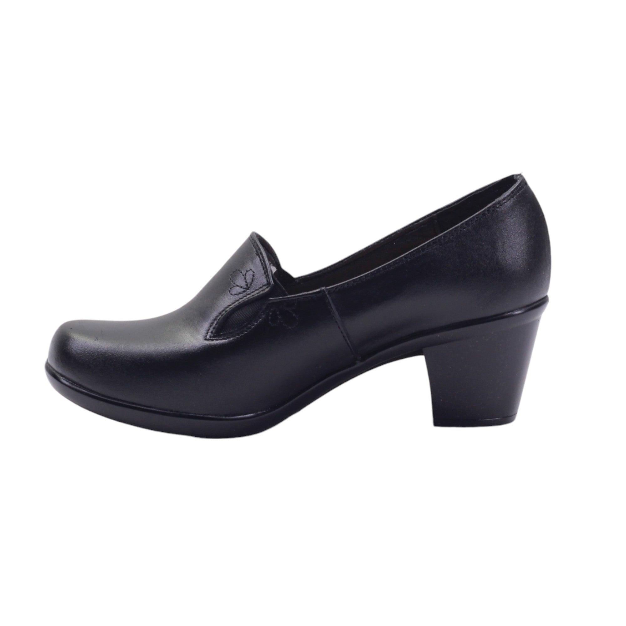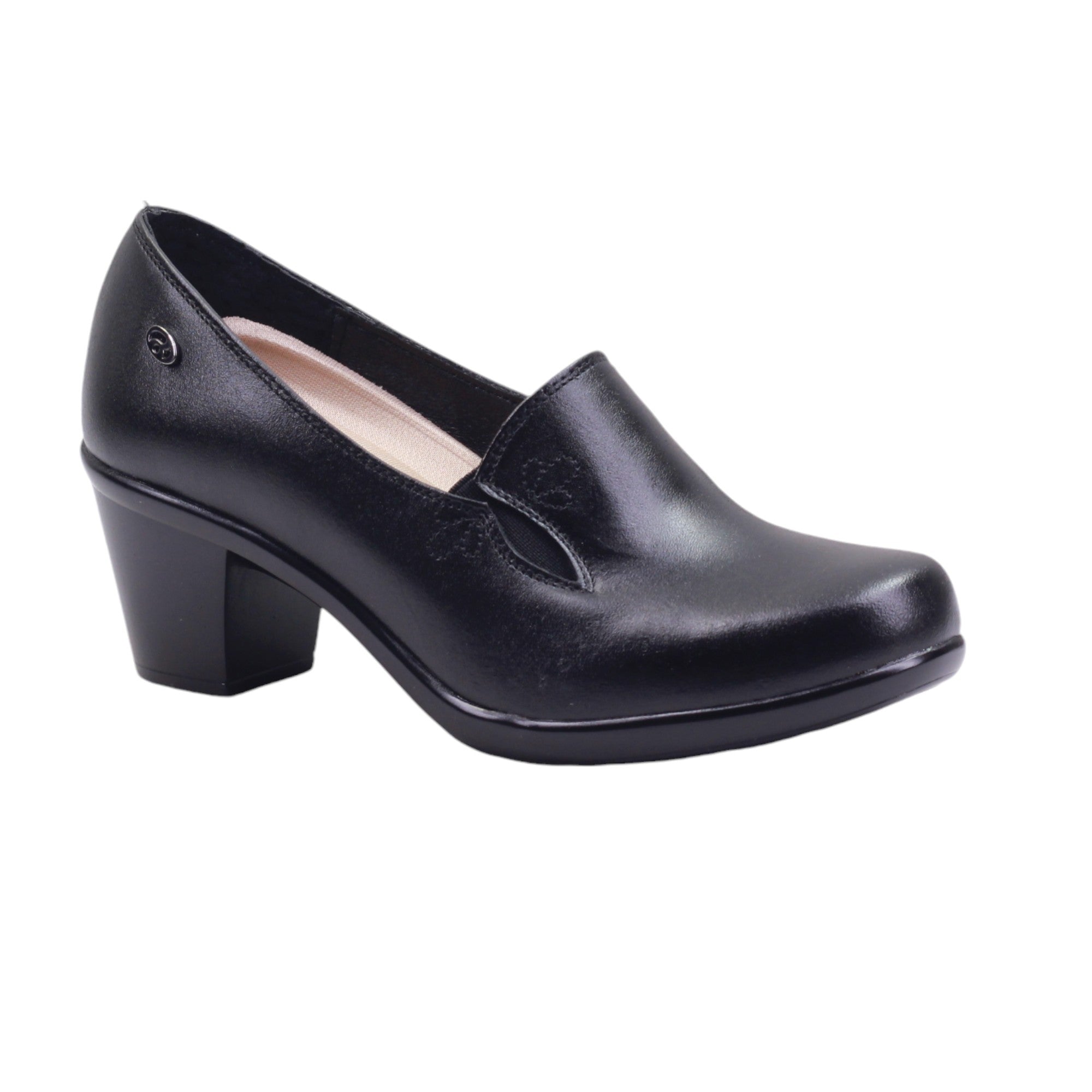 Calzado de tacón ancho casual para dama con terminado en piel vacuna