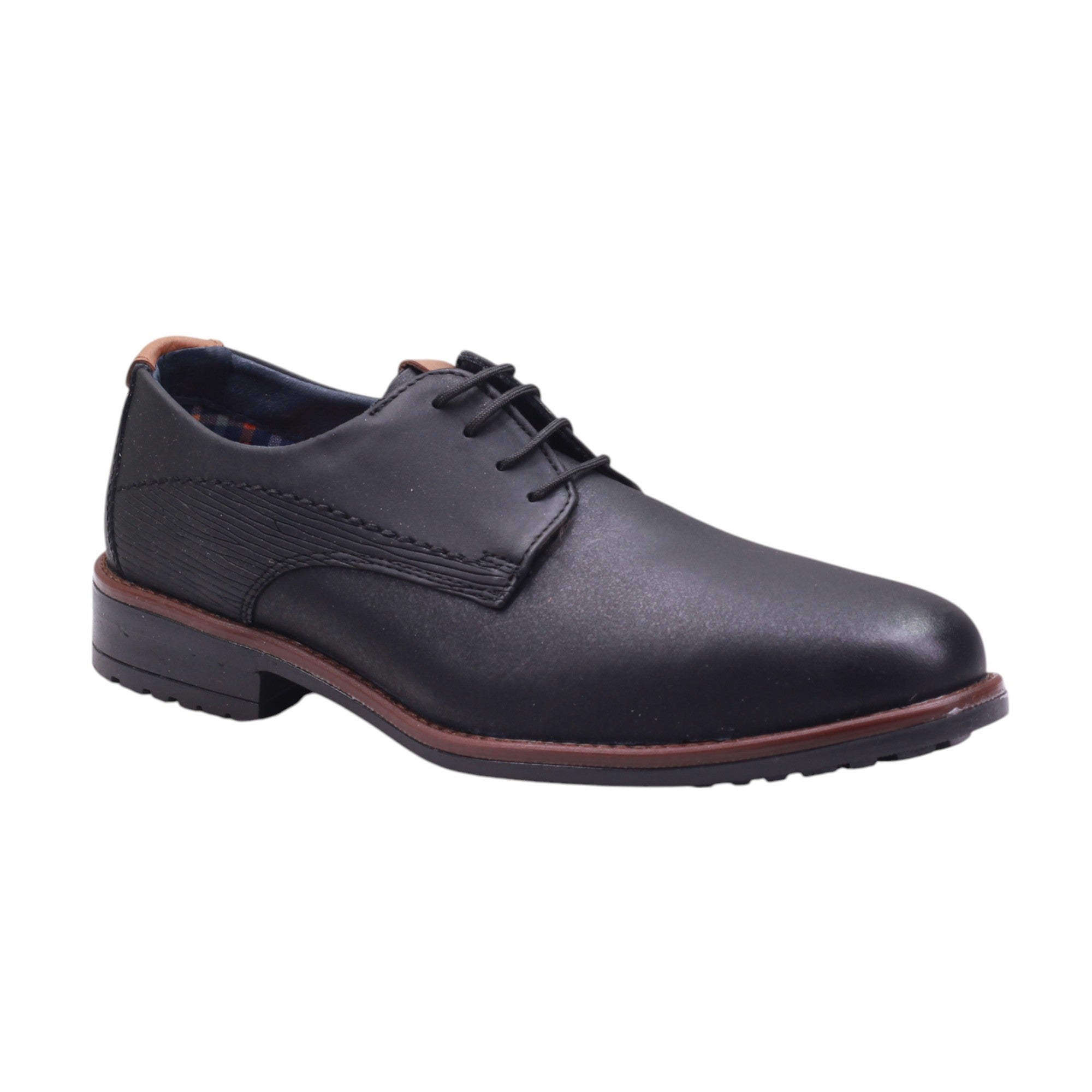 Calzado para caballero marca Lugo Conti en color negro. Este modelo ofrece un estilo casual ideal para el día a día, con su corte ajustado con agujetas. Con un tacón de 2.5 cm, brinda una altura adecuada para mayor comodidad. Además, su interior amplio permite una pisada cómoda durante todo el día.