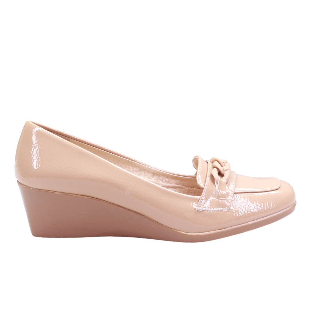 Calzado para dama marca Clinton en color maquillaje. Este modelo cuenta con un elegante eslabón de adorno que agrega un toque de sofisticación. La plataforma presenta una altura de 4.5 centímetros, lo que brinda comodidad y un aspecto más estilizado. Además, su plantilla de confort proporciona una sensación de suavidad y apoyo para tus pies.