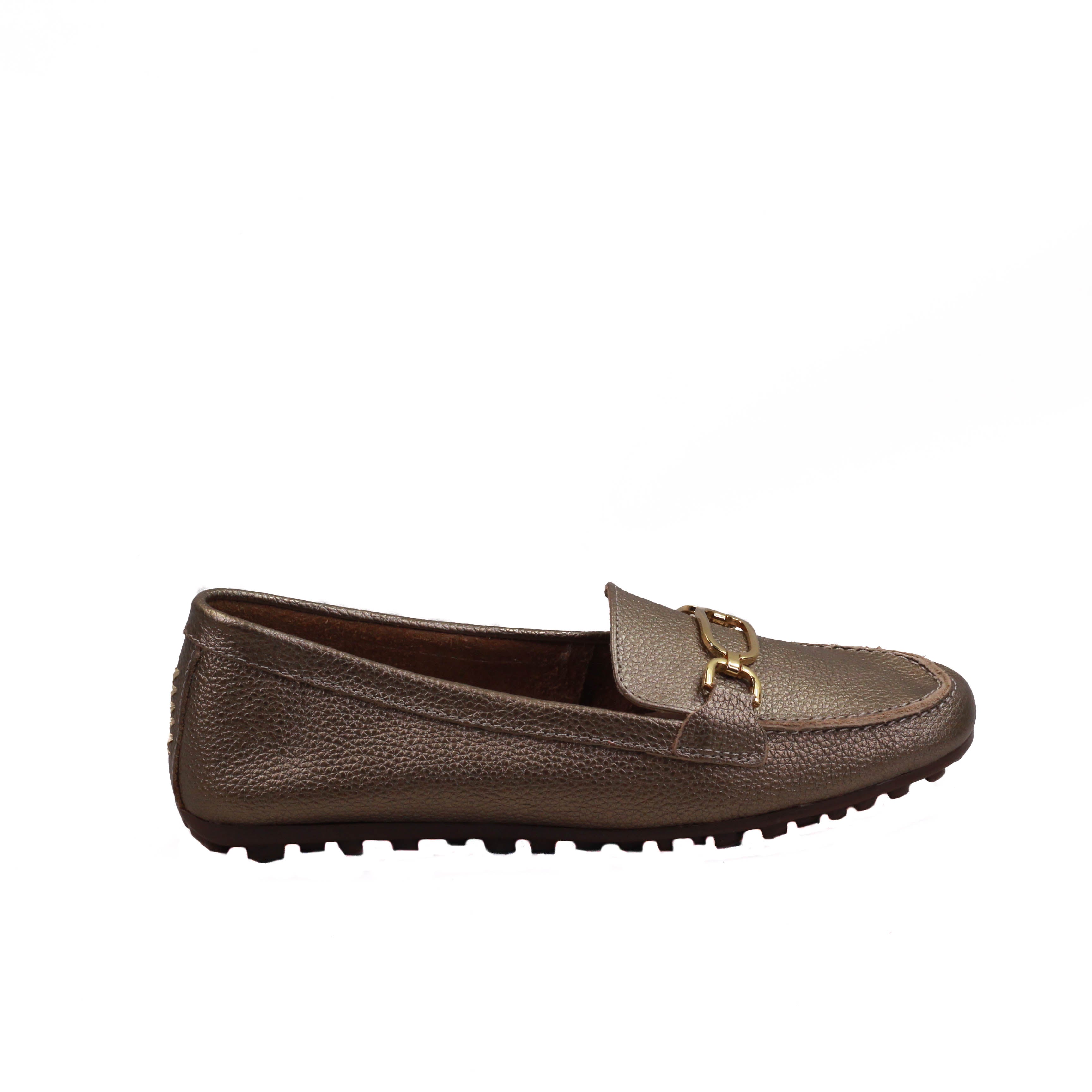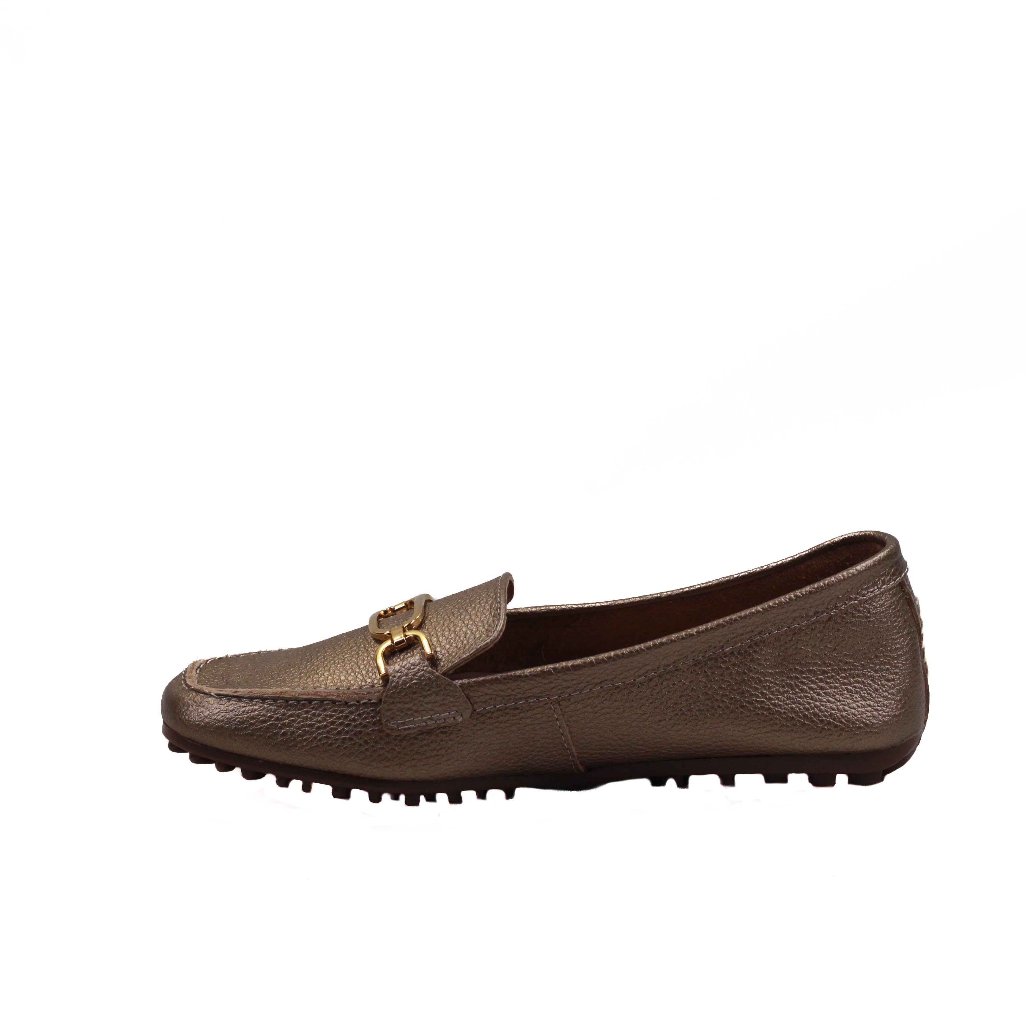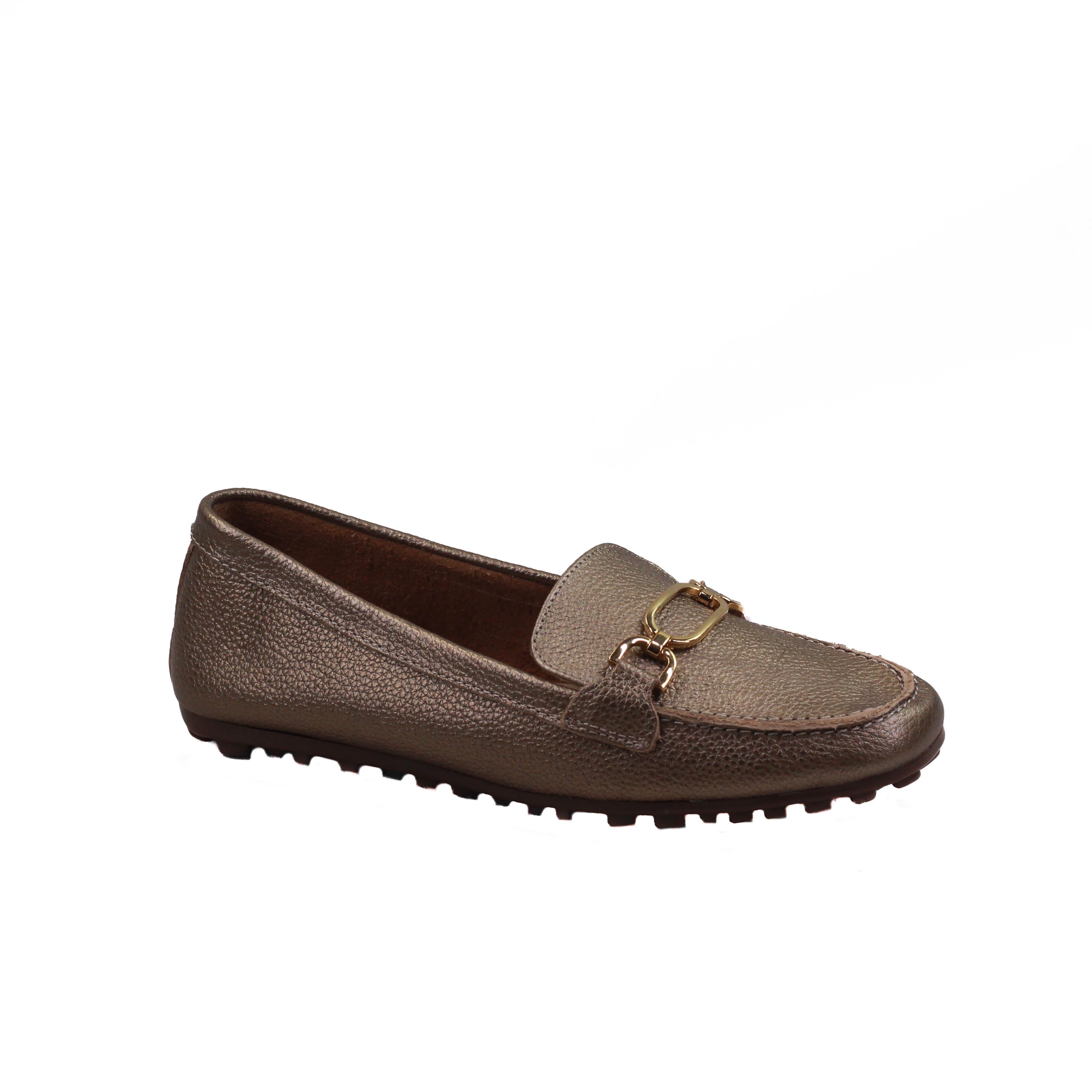 Zapato para dama marca Hispana en colores Metálico. Cuenta con suela corrida de 1.00 cm la cual te da la comodidad que necesitas en un calzado, además tiene una plantilla de confort para más comodidad.