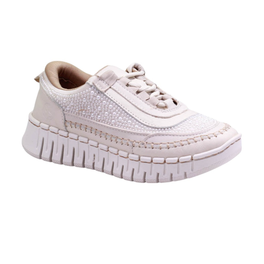 Calzado para caballero marca Lobo solo en color marfil. Este modelo cuenta con perlas adornando el corte. Además, proporciona una gran comodidad gracias a su plantilla acojinada y su ajuste con agujetas. Su plataforma de 4.00 cm de altura le da un toque elegante y a la vez cómodo.