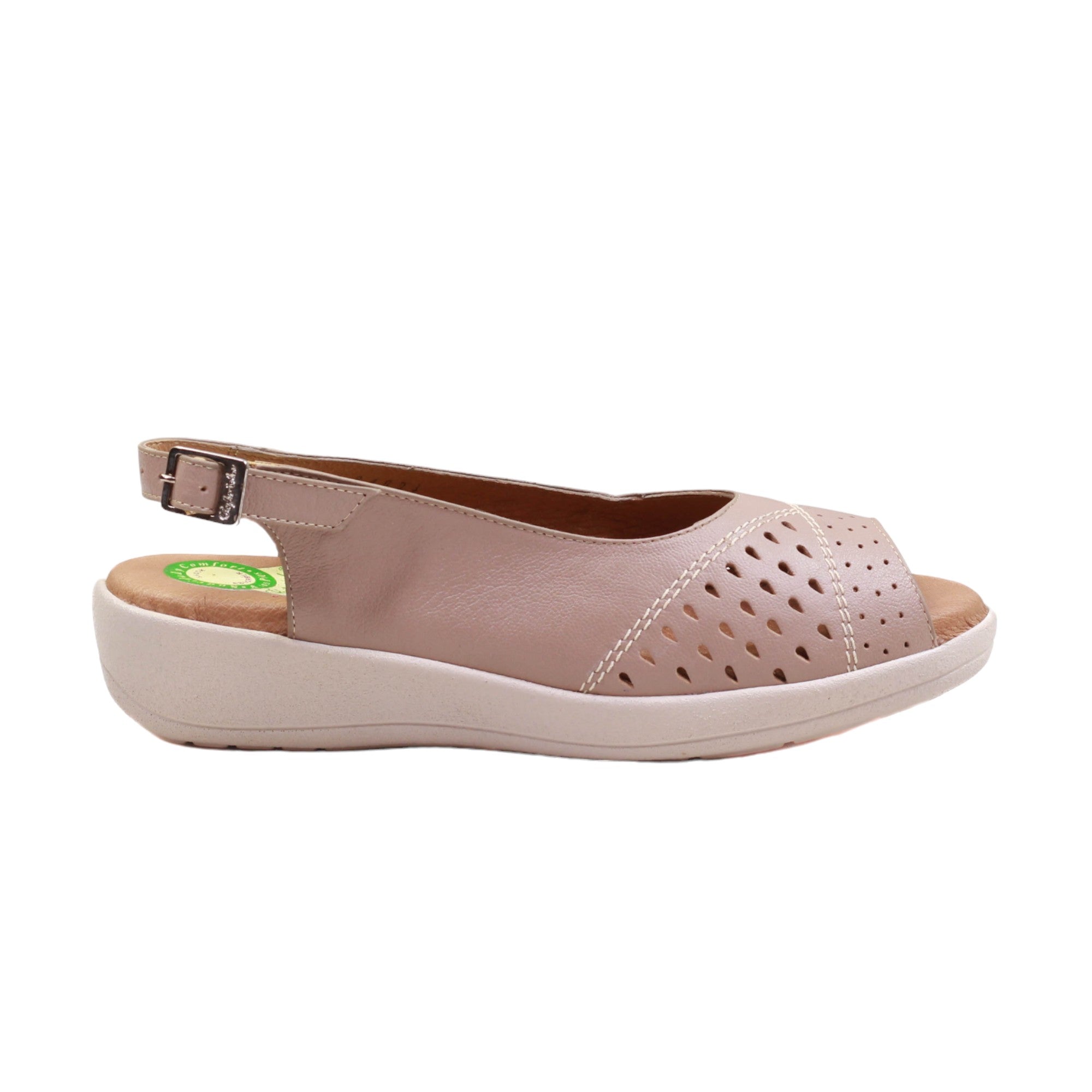 Sandalias cómodas, se ven muy bien. El color es como un beige muy sutil casi blanco, pero no es blanco.