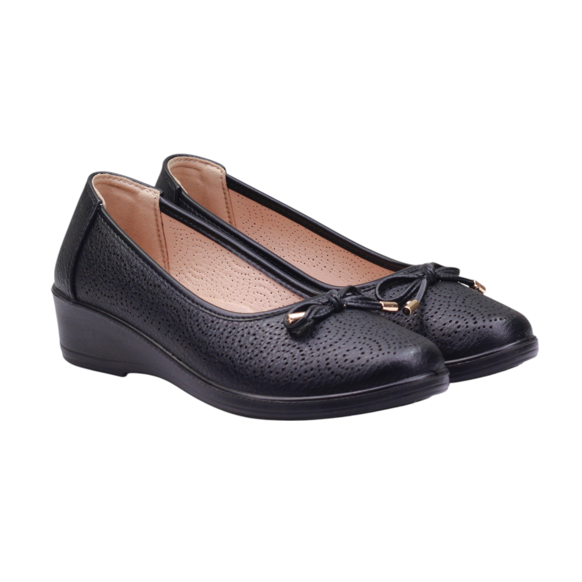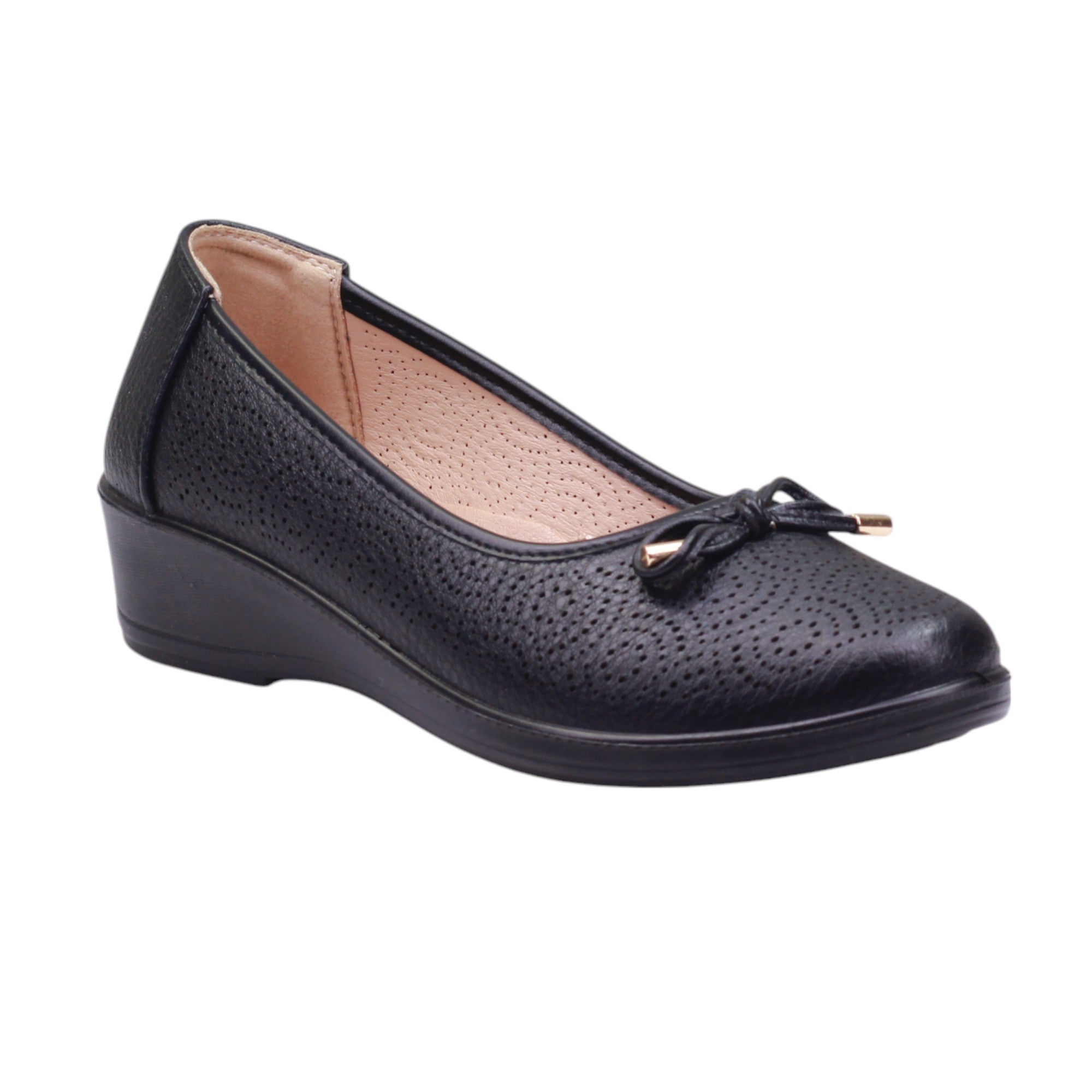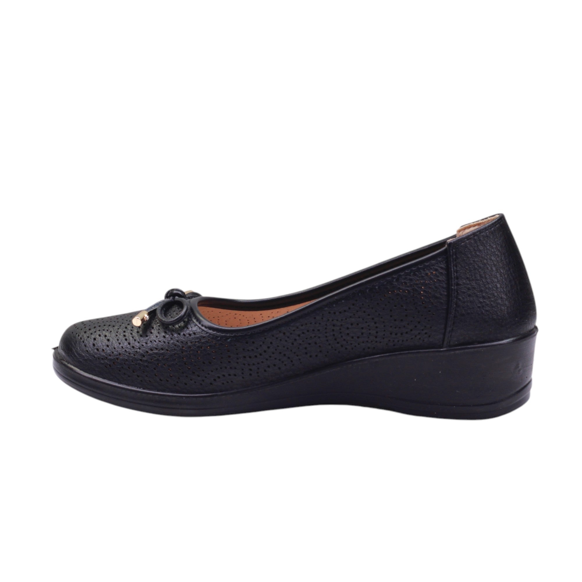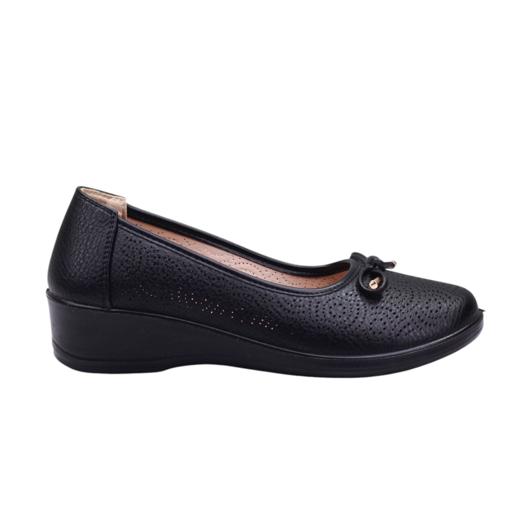 Calzado para dama con puntos en el corte y adorno en moño