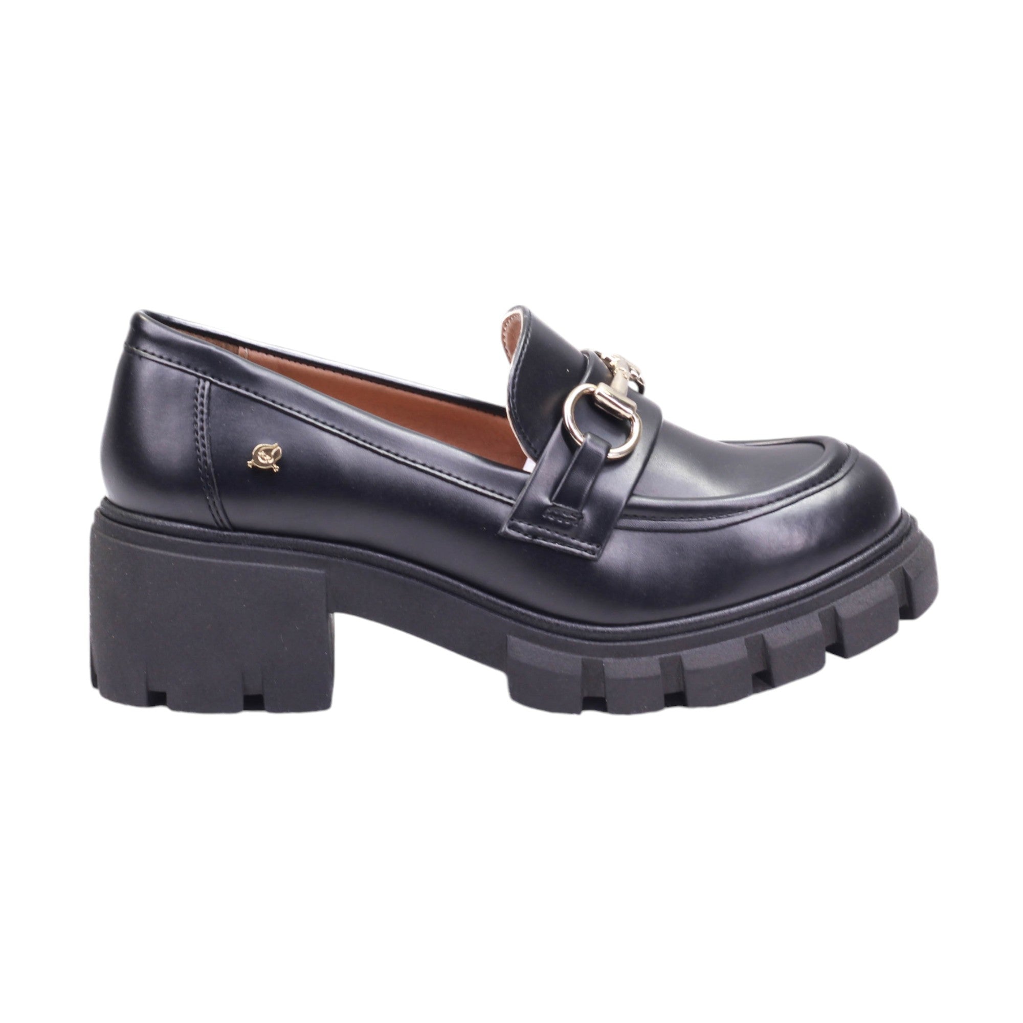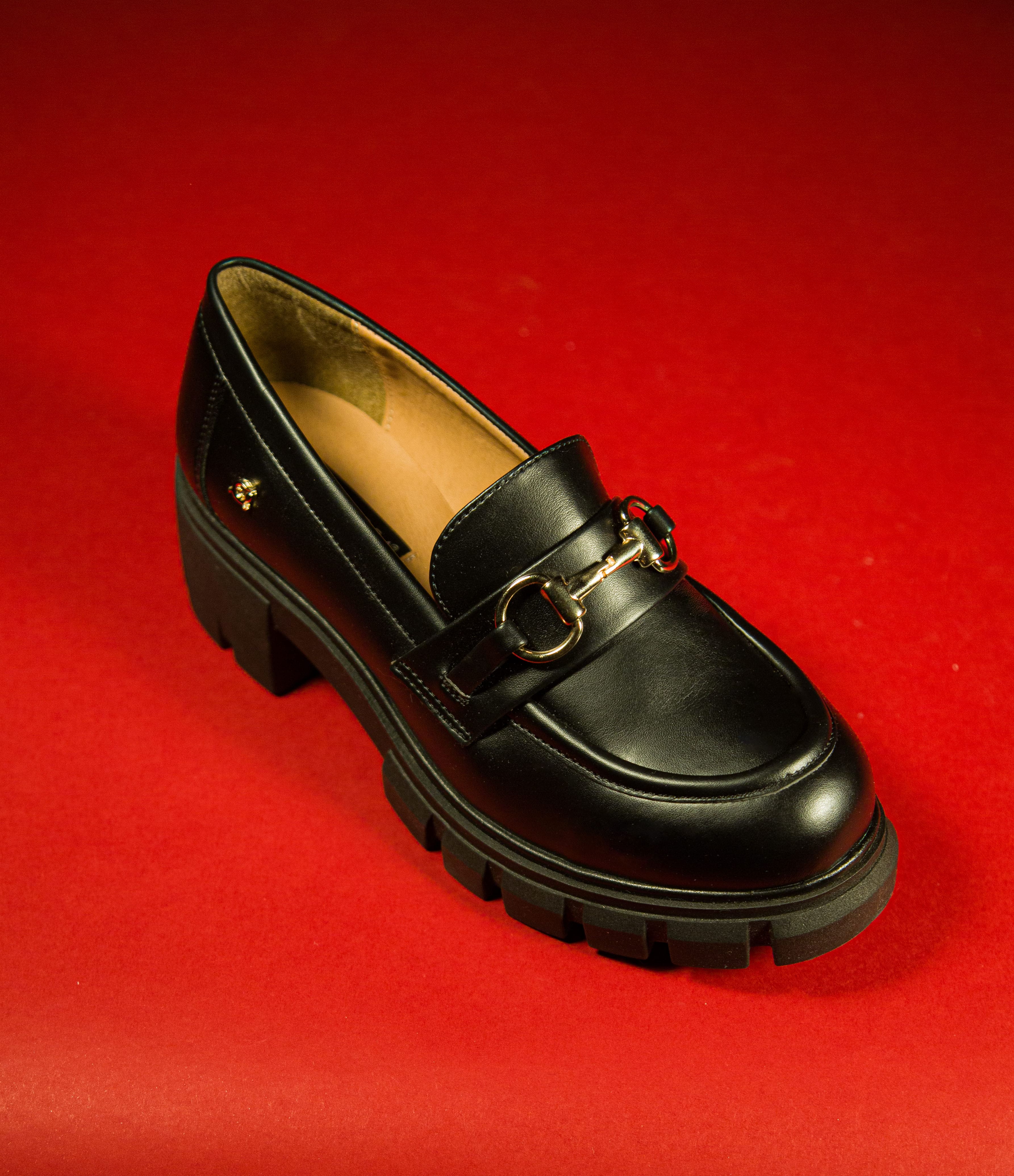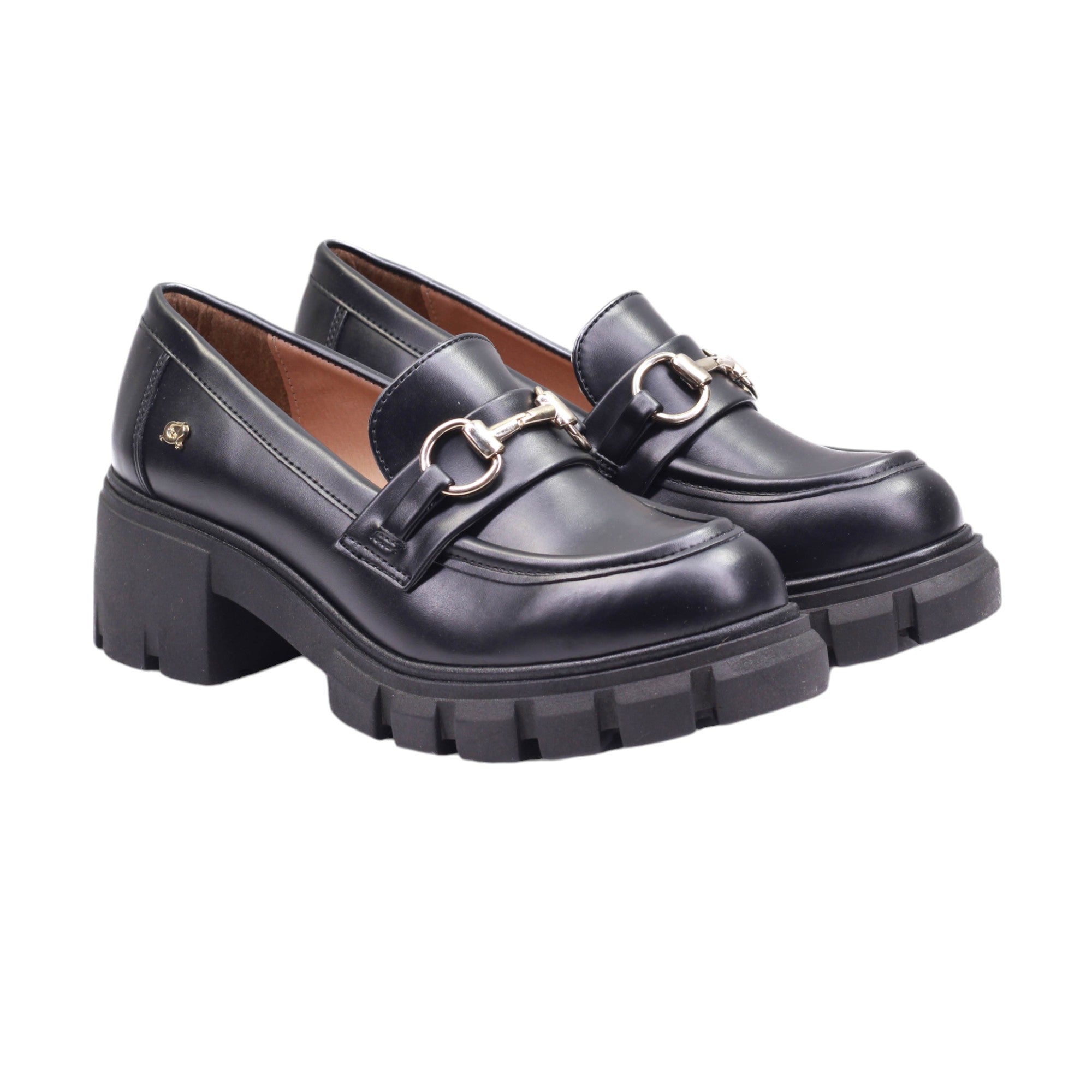 Plataforma para dama marca Salamandra en color negro. Originalidad y estilo para tu atuendo. Modelo super atractivo de suela ancha, consigue el look que te hará ver genial esta temporada. Se trata de un modelo atractivo a la vista con adorno de broche frontal. Además de fácil de combinar con tu guardarropa actual.