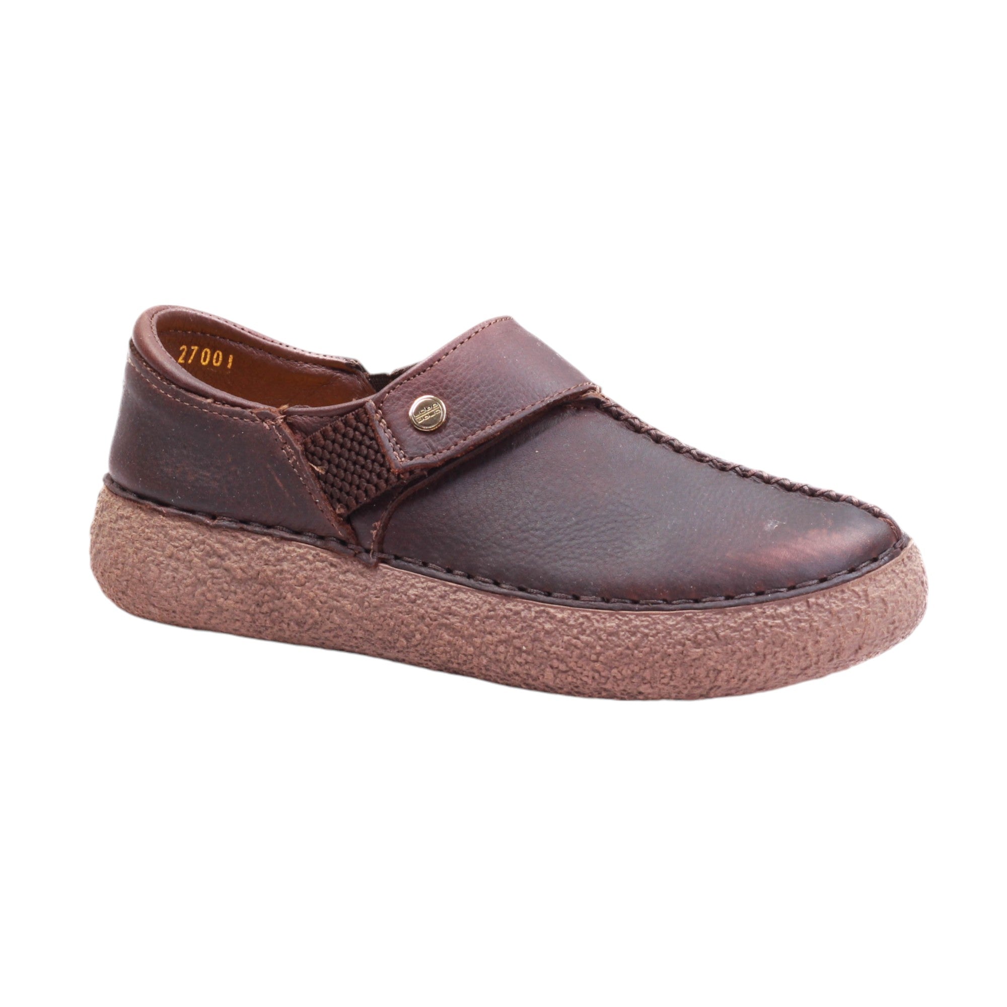 Calzado para dama marca Lobo Solo en color brown. Es un modelo de SUPER CONFORT. Terminado de piel suave 100% natural, tejido a mano por artesanos mexicanos, con suela extra ligera. Plantilla acojinada, cubierta de piel, no pierde su espesor, no guarda olores. Este calzado se caracteriza por su piel adaptable y comodidad para todo tipo de pies.