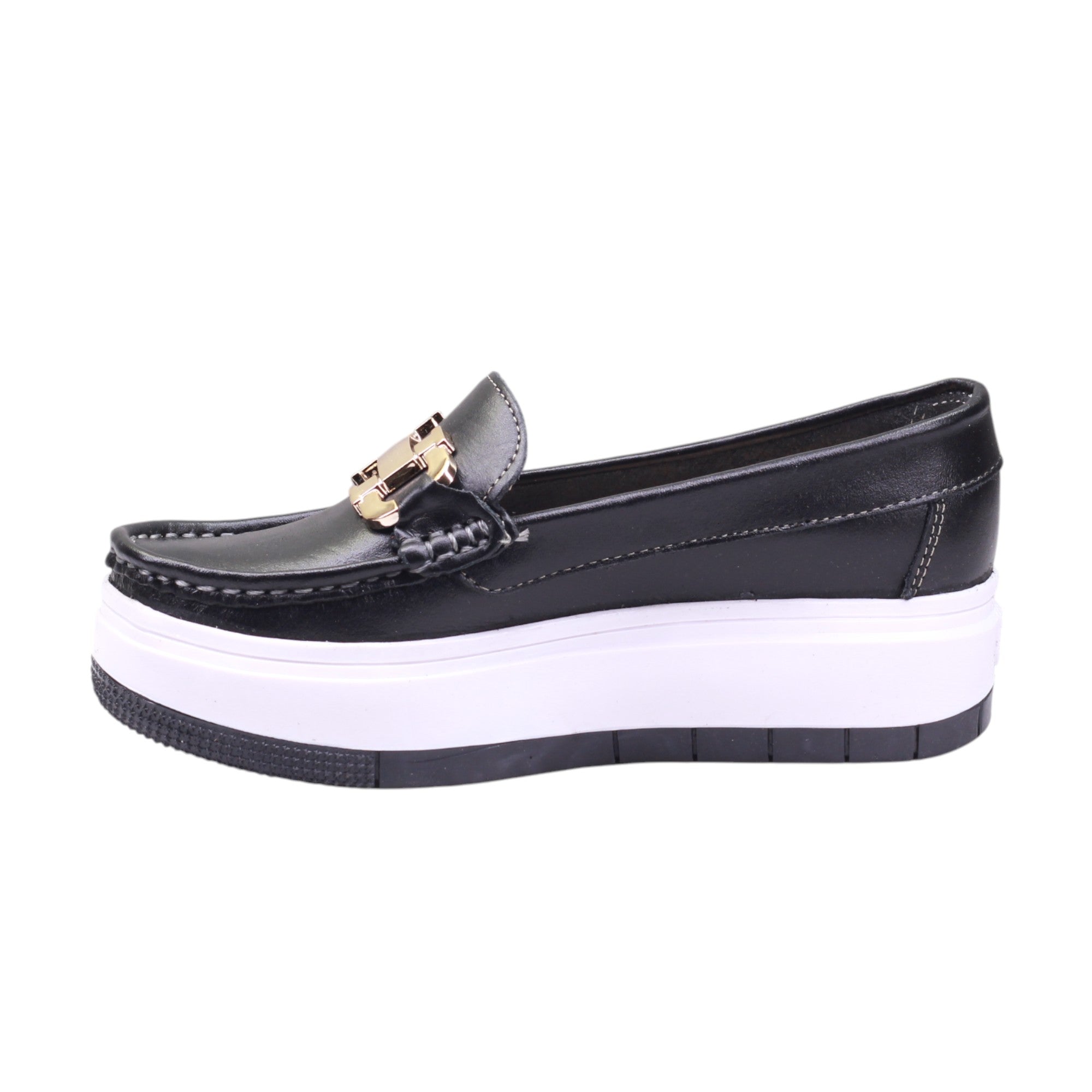 Calzado para dama marca Esencia de Mujer en clásicos color negro. Esta plataforma blanca con altura de 4.00 cm cuenta con un elegante adorno metálico en el corte. Además, su interior cómodo la hace perfecta para cualquier ocasión. Disfruta de una apariencia moderna y eleva tu estilo con este modelo.