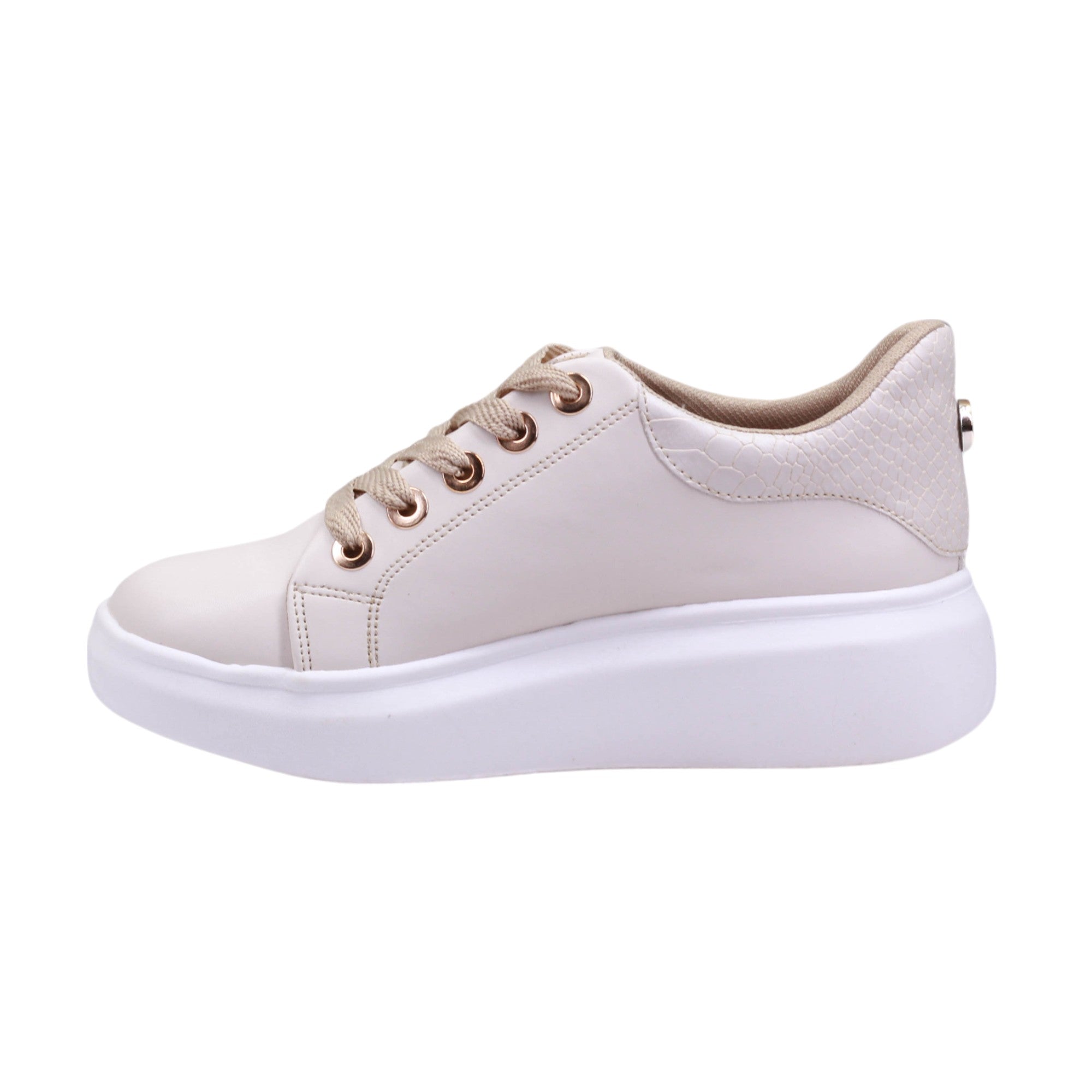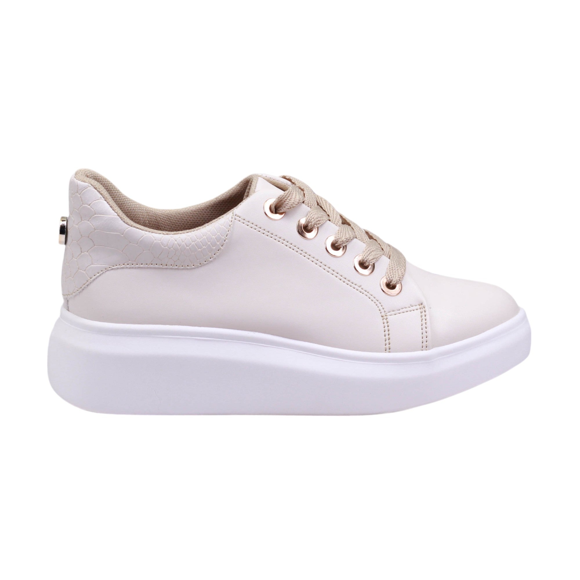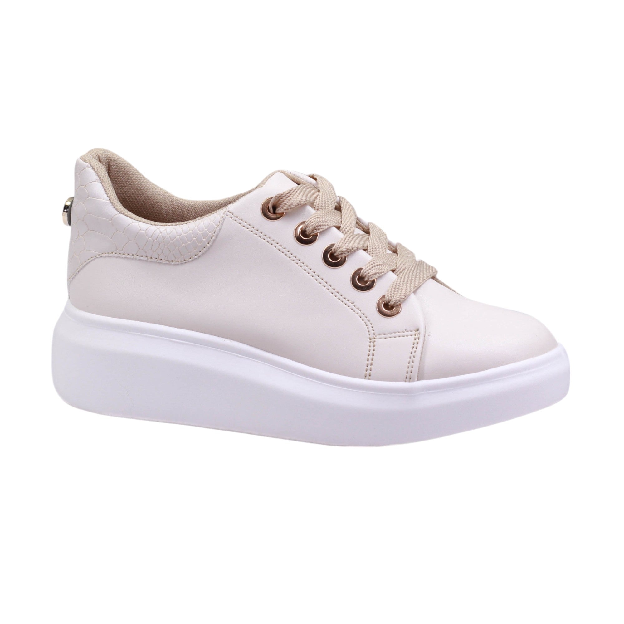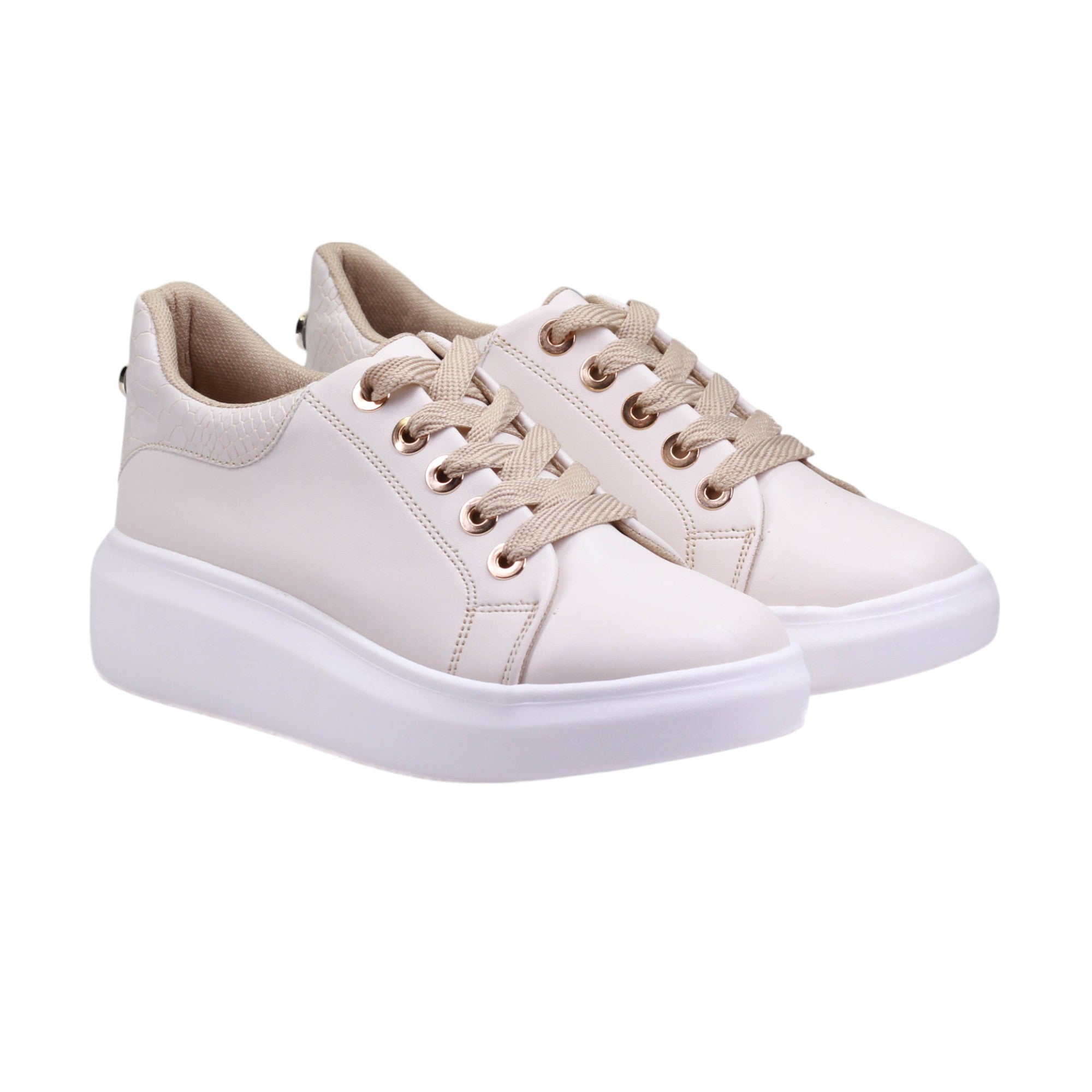 Calzado para dama de plataforma corrida blanca con ajuste en agujetas