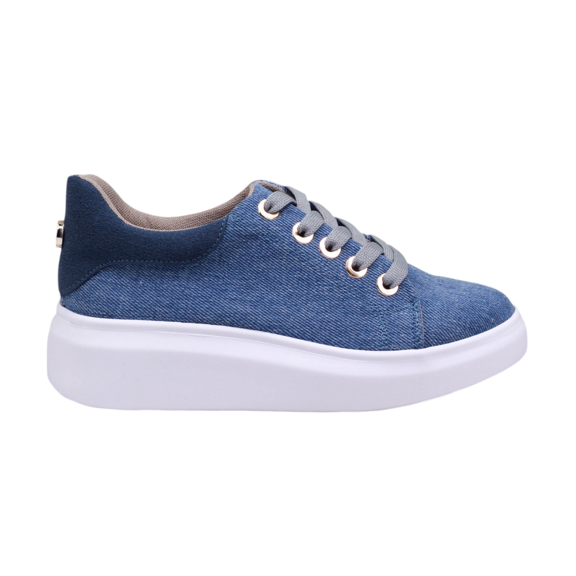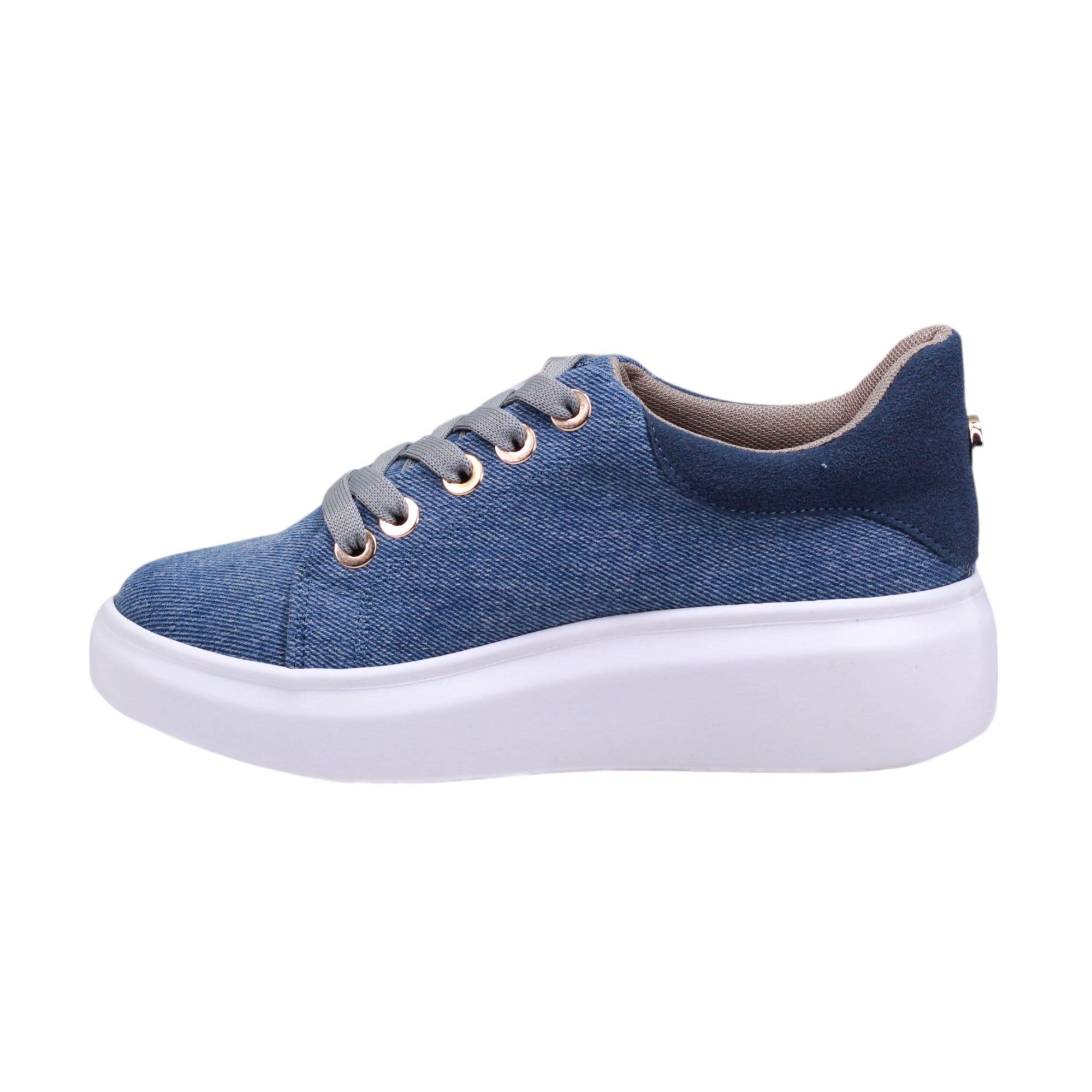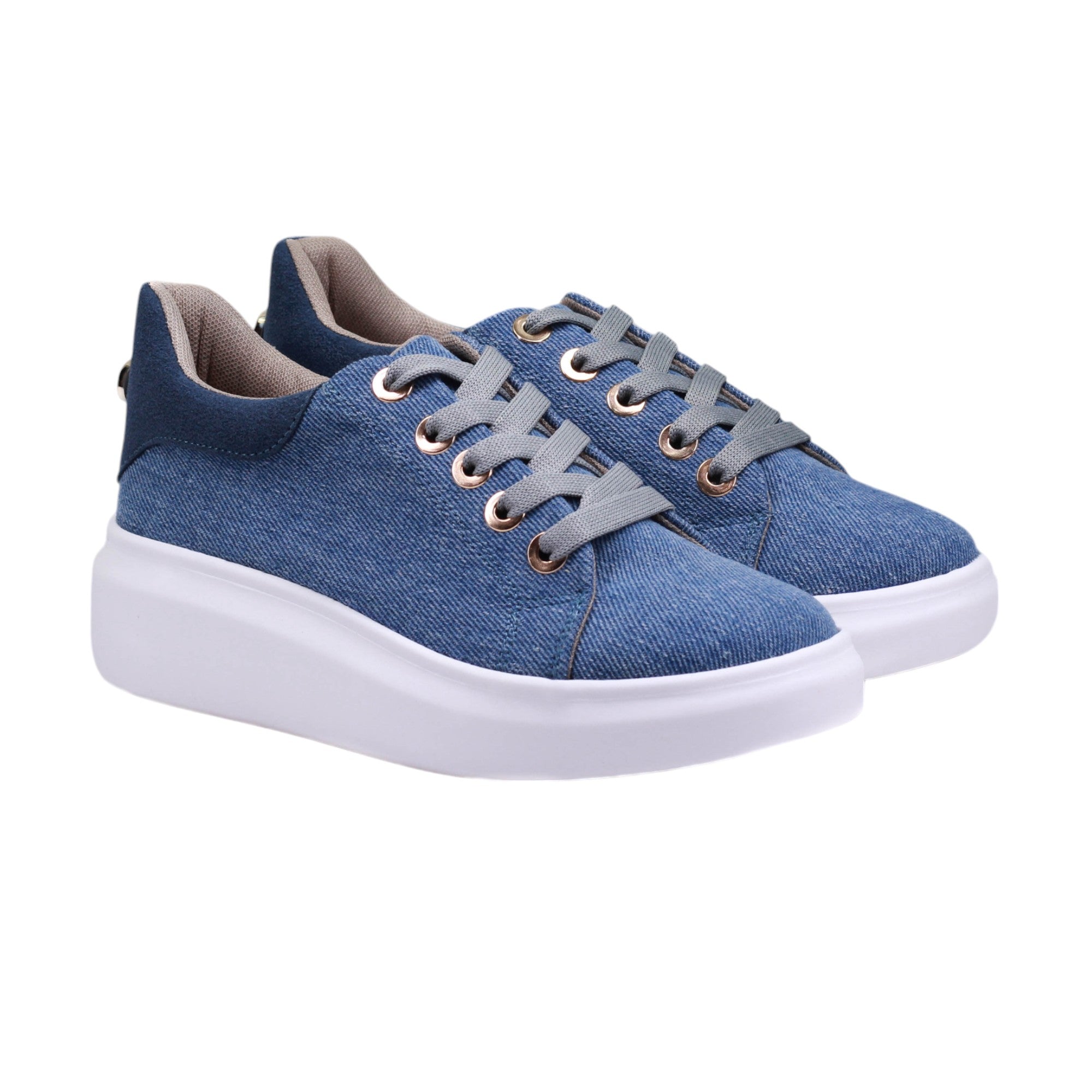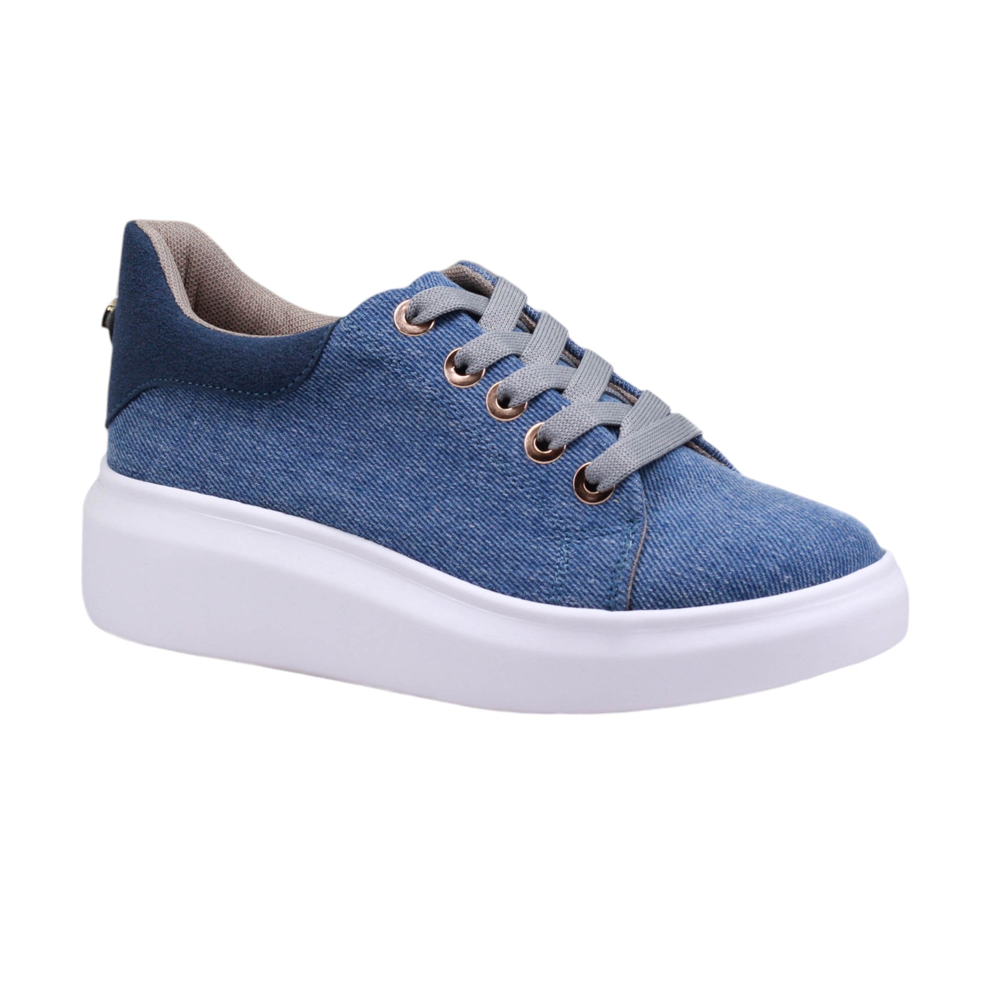 Calzado para dama de plataforma corrida blanca con ajuste en agujetas