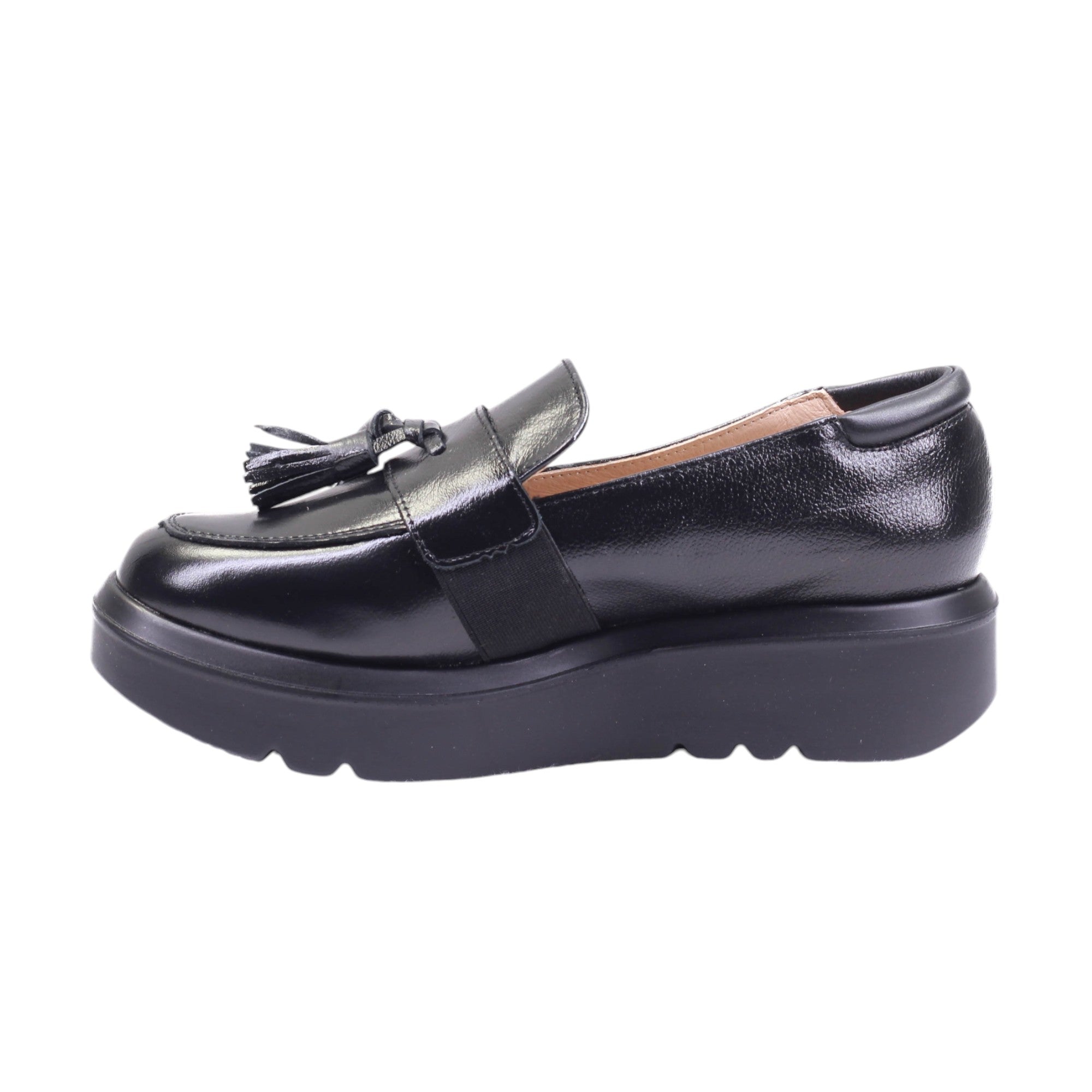 Calzado para dama de plataforma corrida de altura media con adornos frontales