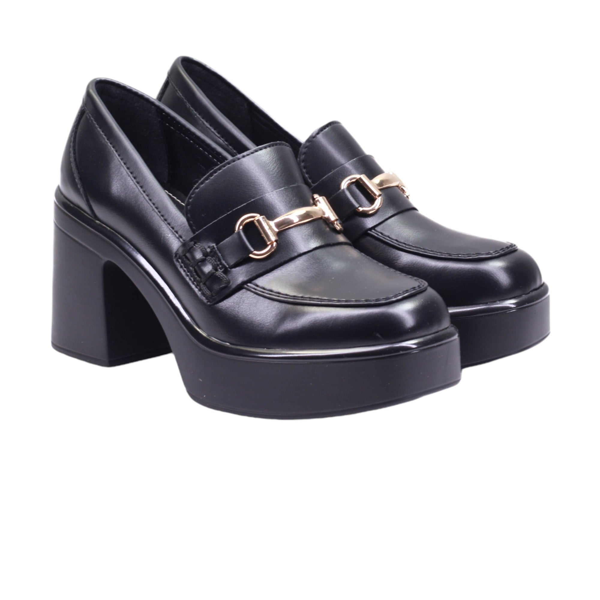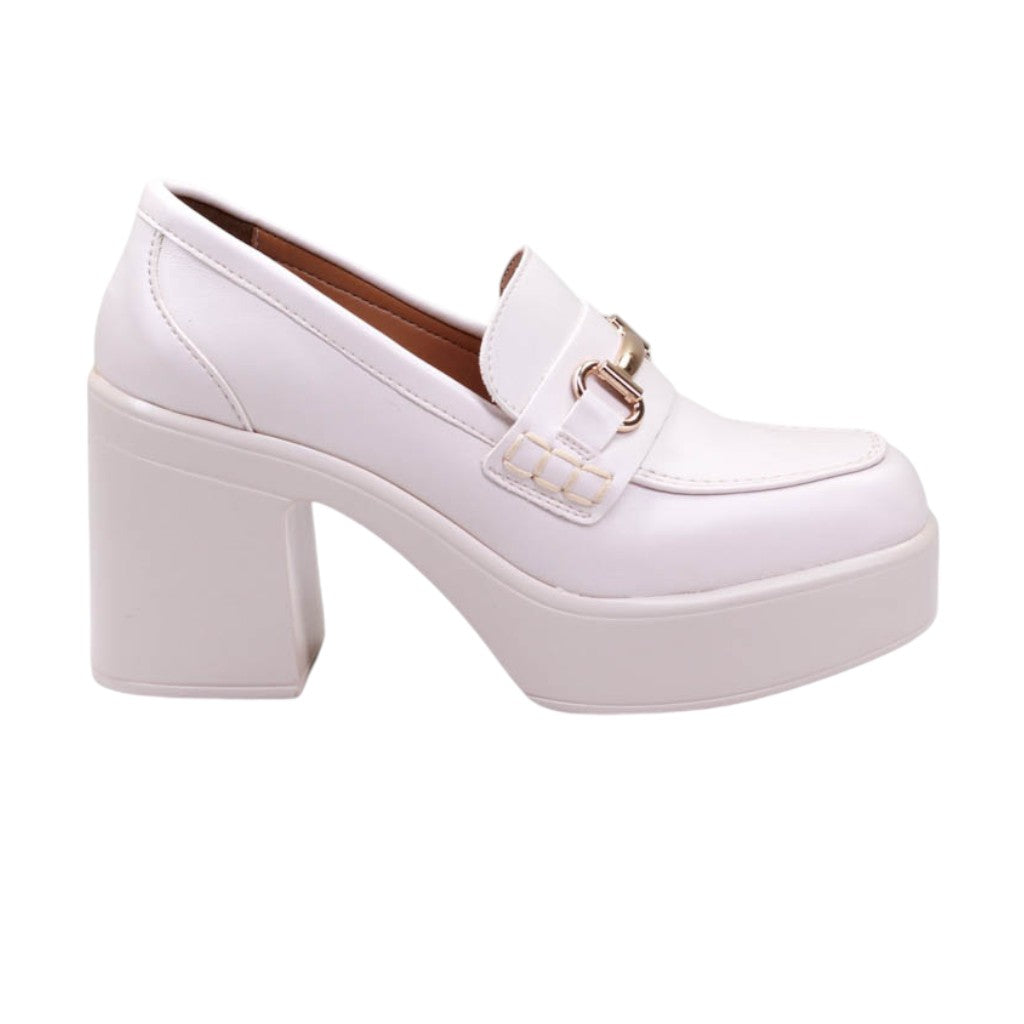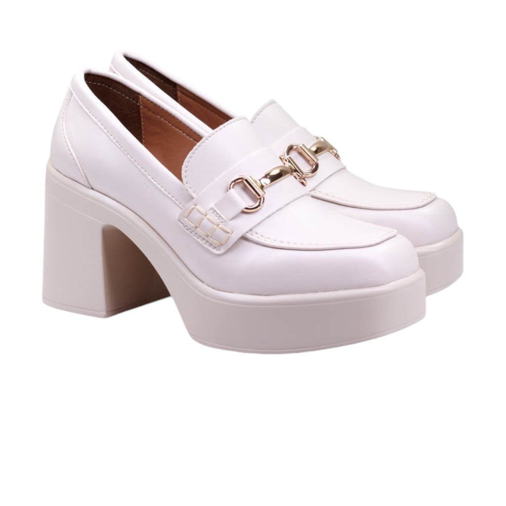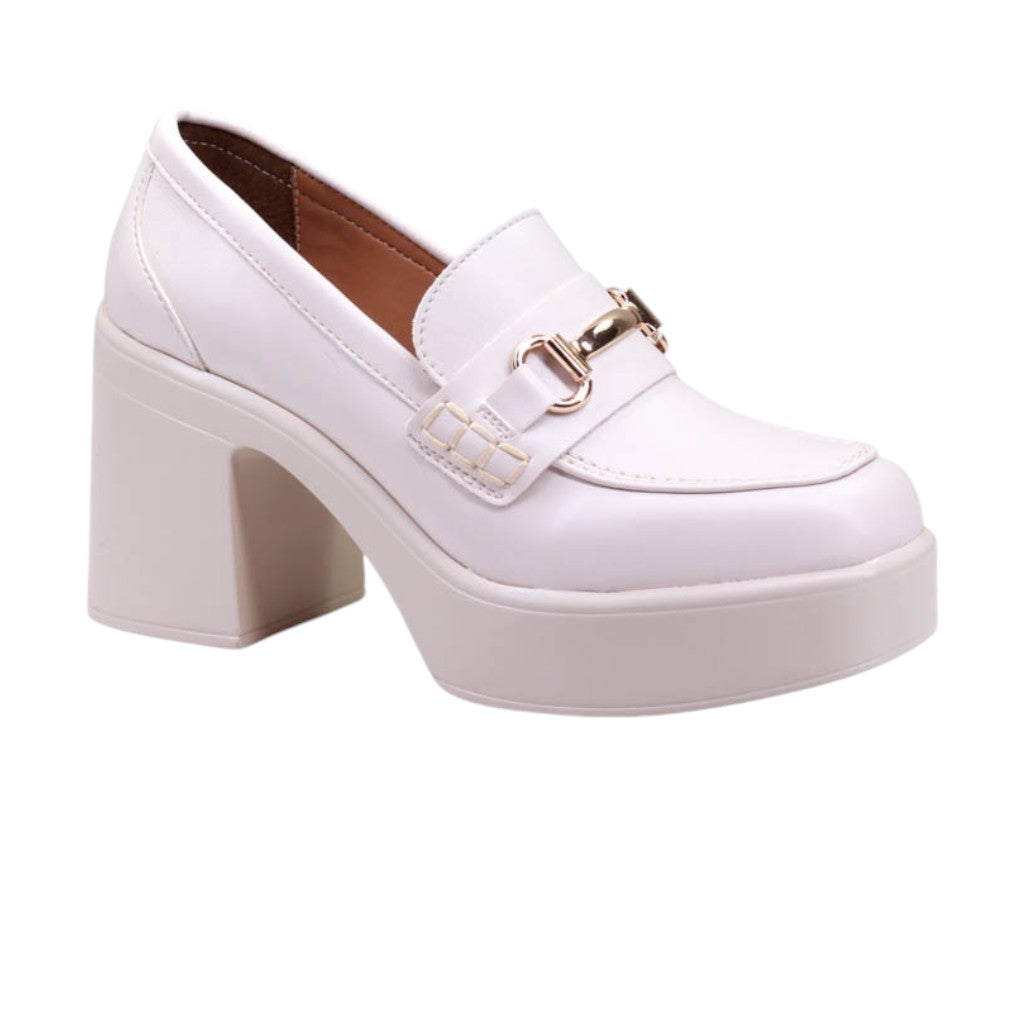 Calzado para dama de tacon y plataforma ancha con herraje frontal