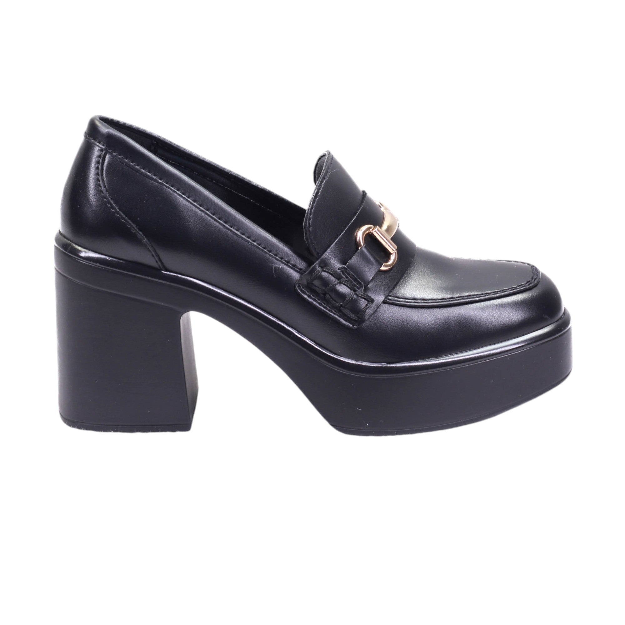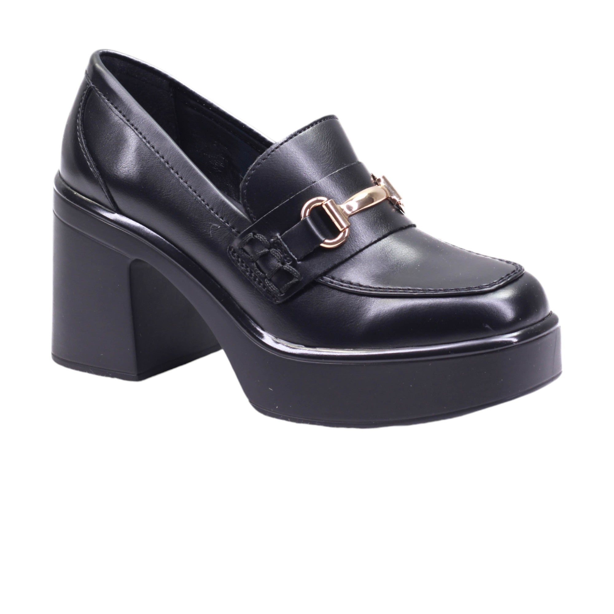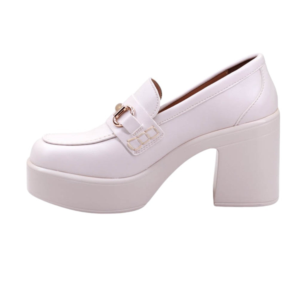 Calzado para dama de tacon y plataforma ancha con herraje frontal