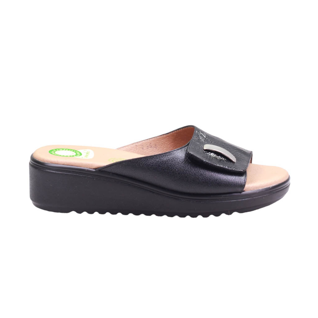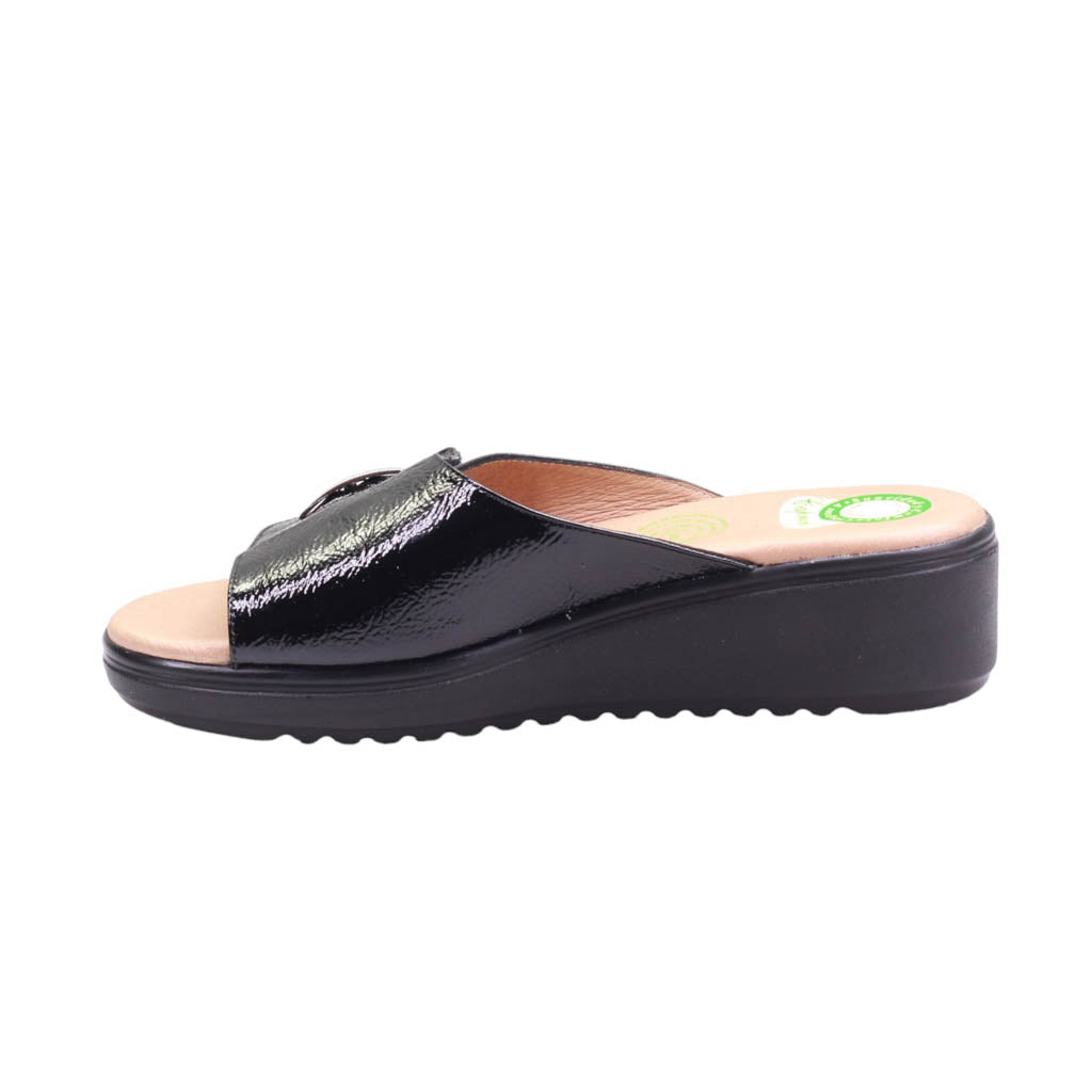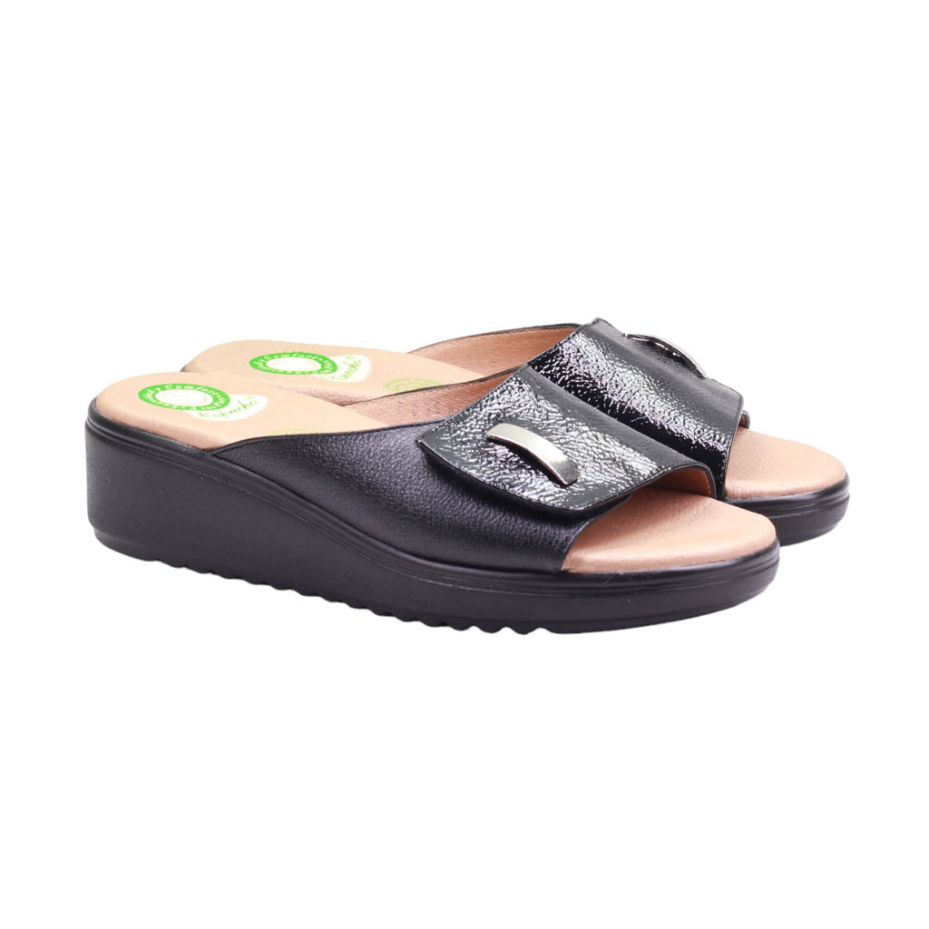 Calzado para dama de tira con charol y plantilla acojinada
