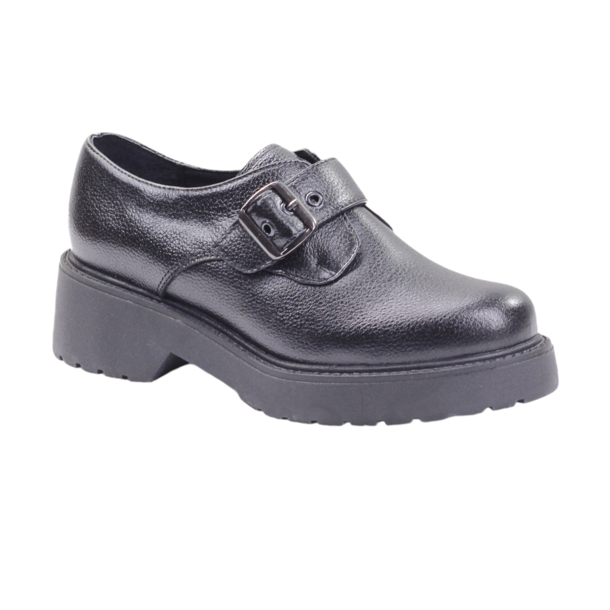 Calzado para dama de tira con hebilla frontal, plataforma medio-alta