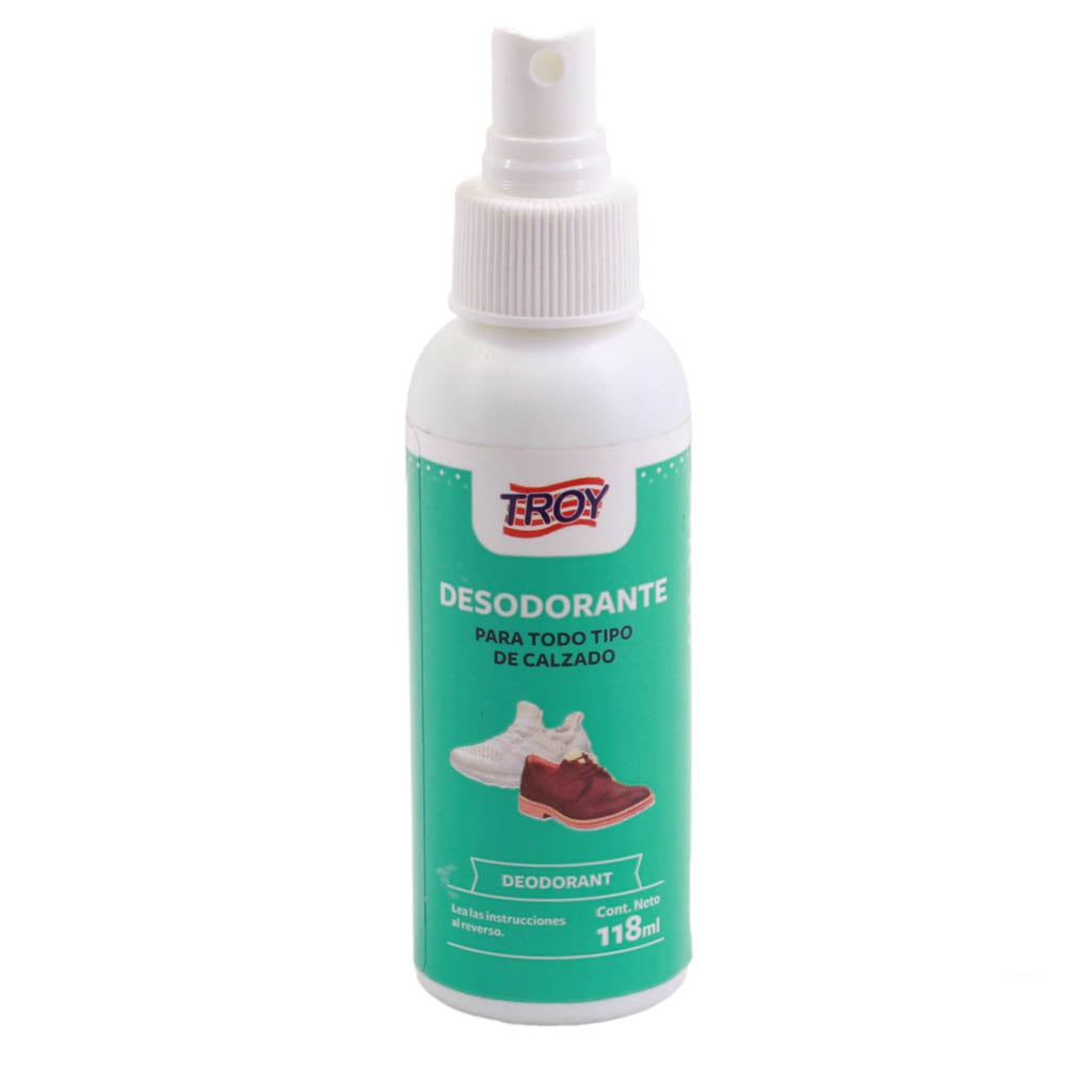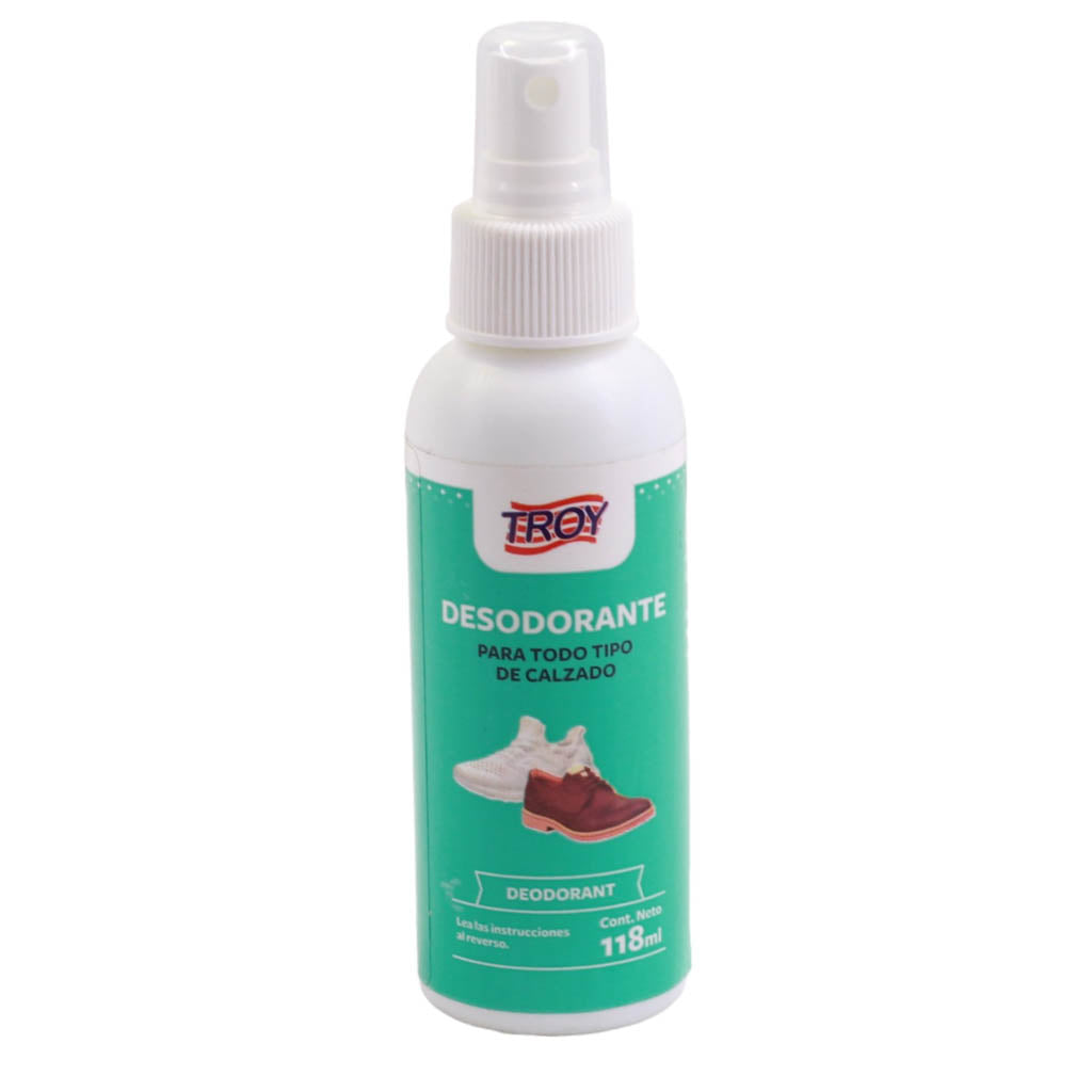 Desodorante para calzado marca Troy. Ideal para mantener tus calzados con un aroma fresco y agradable. No solo perfuma, sino que también ayuda a neutralizar los malos olores, evita el exceso de sudor.