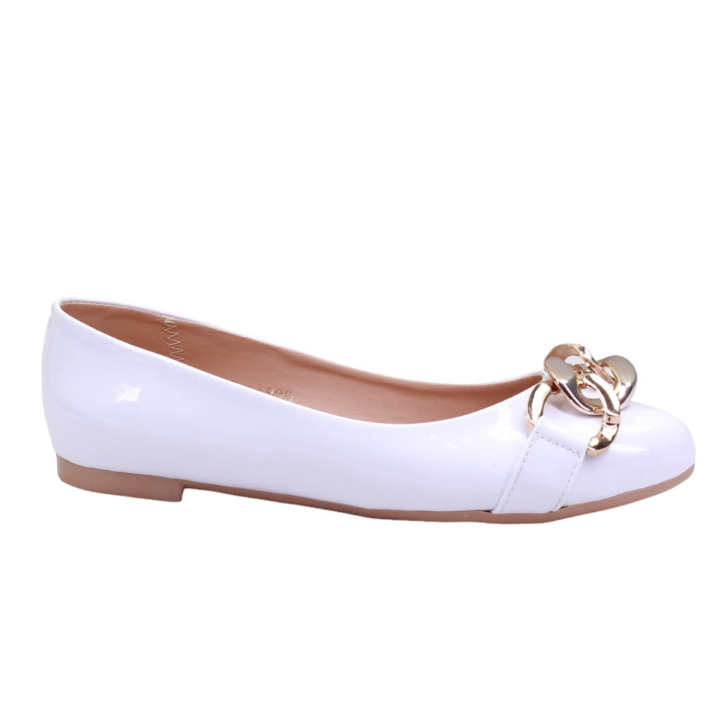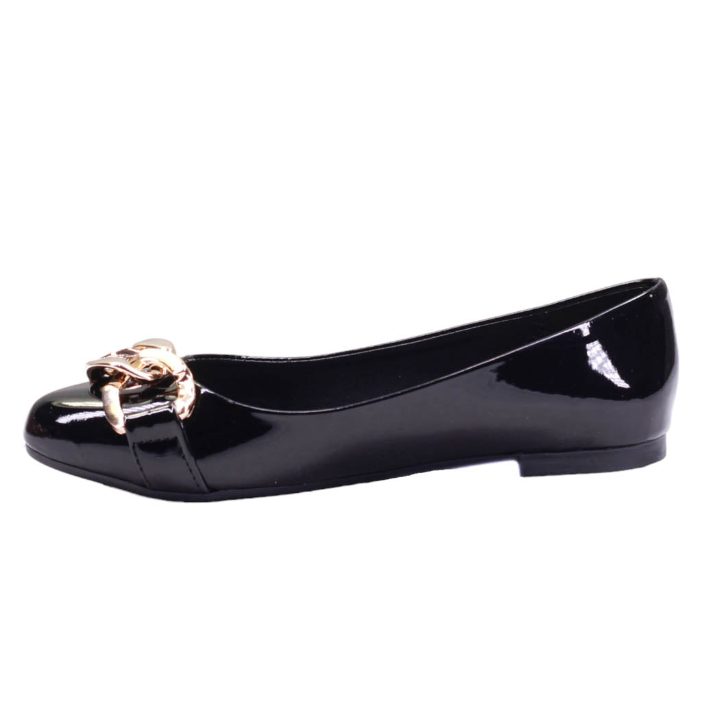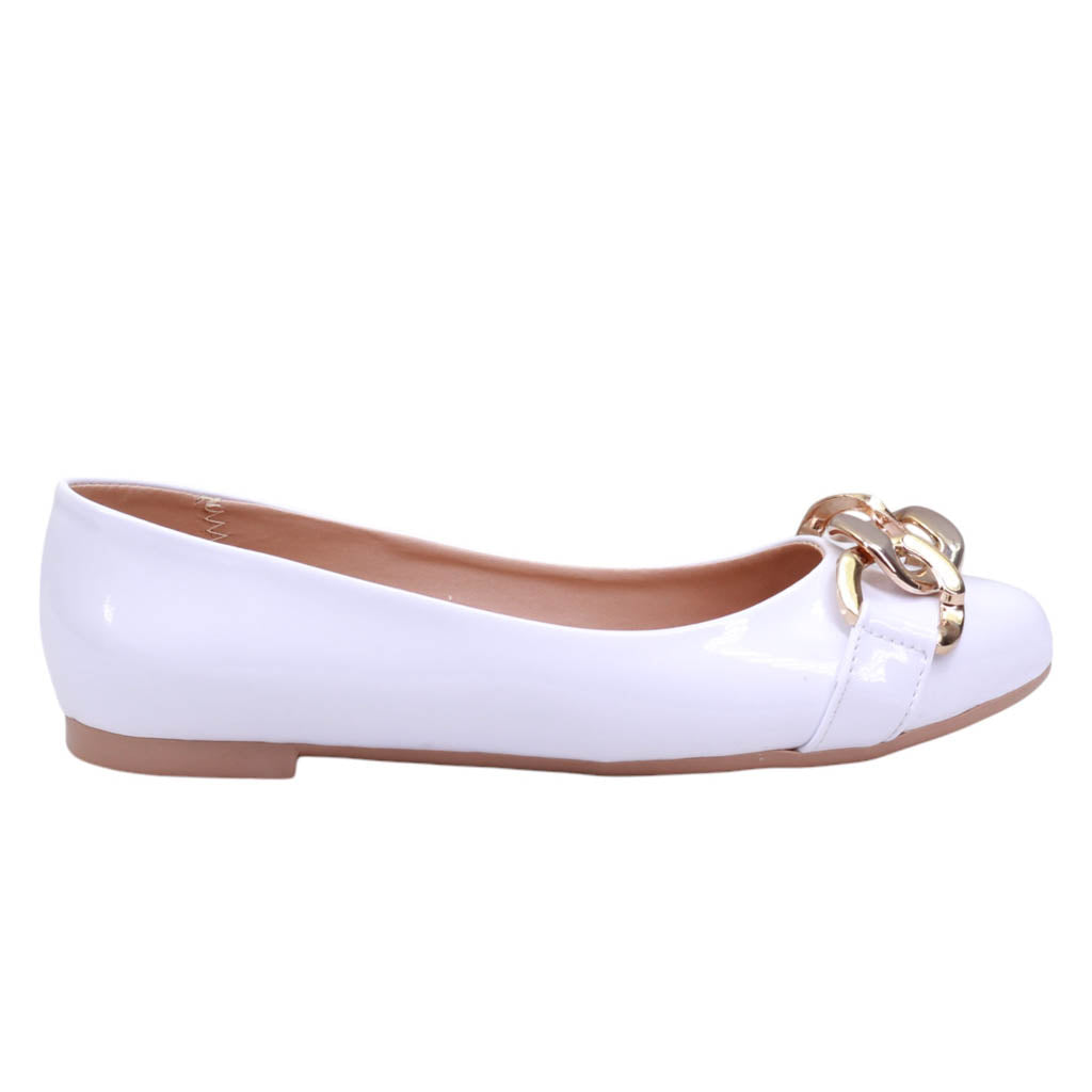 Flats para dama marca Zócalo en colores Blanco, negro y venado. Este modelo tiene un elegante punta redonda con eslabones dorados. Con un cómodo tacón bajo y una plantilla de confort, te brindan un estilo sofisticado y al mismo tiempo una gran comodidad. Perfectos para lucir elegante en cualquier ocasión.