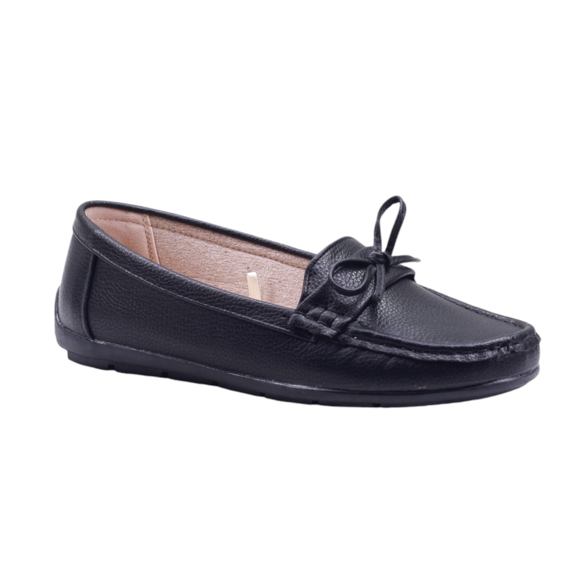 Mocasín casual para dama marca Furor en color negro. Este modelo presenta un elegante terminado en piel lisa, con un adorno de moño que complementa cualquier atuendo. Además, su suela ligera proporciona comodidad y estilo para tus pies. Una opción versátil y sofisticada para cualquier ocasión.